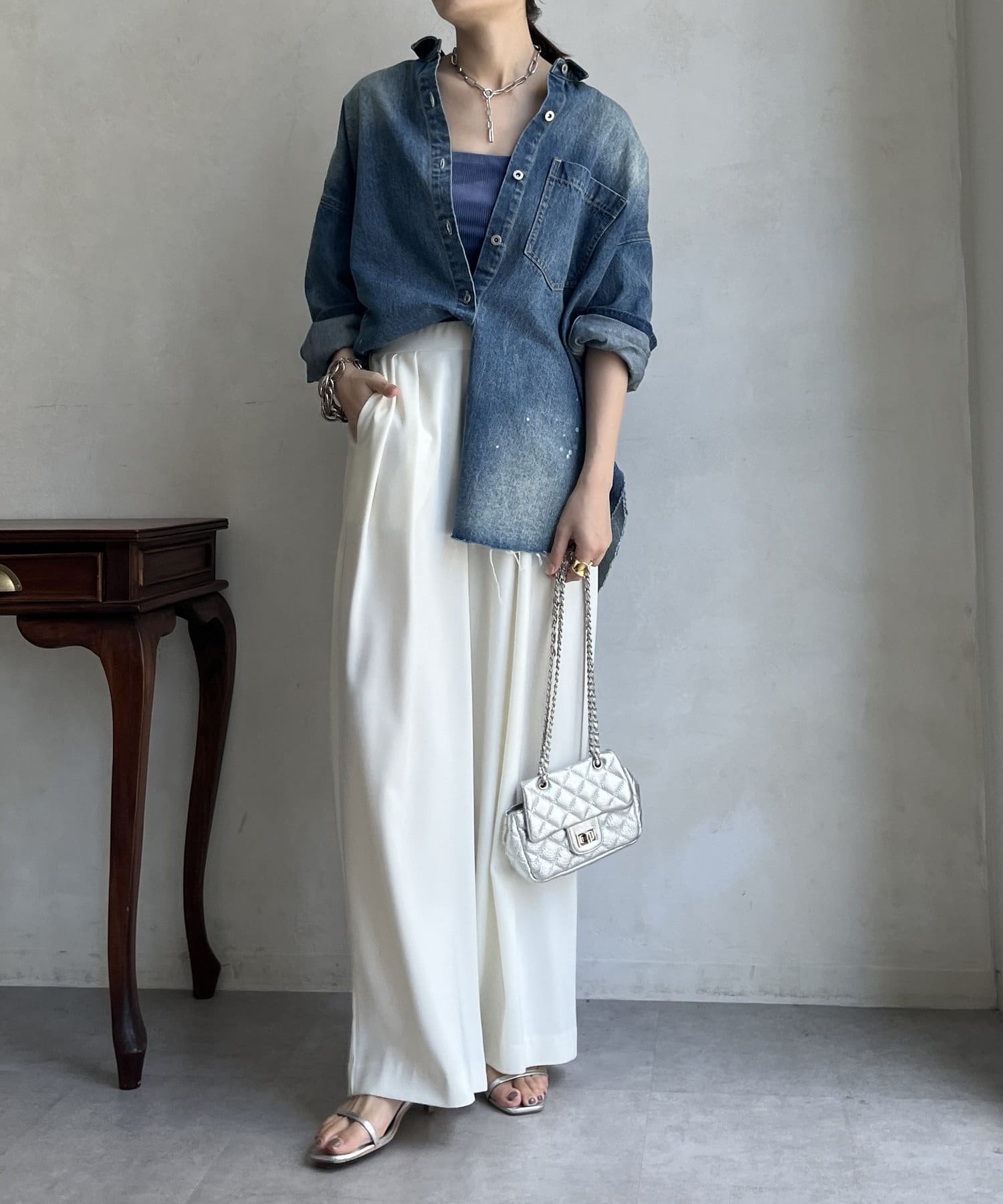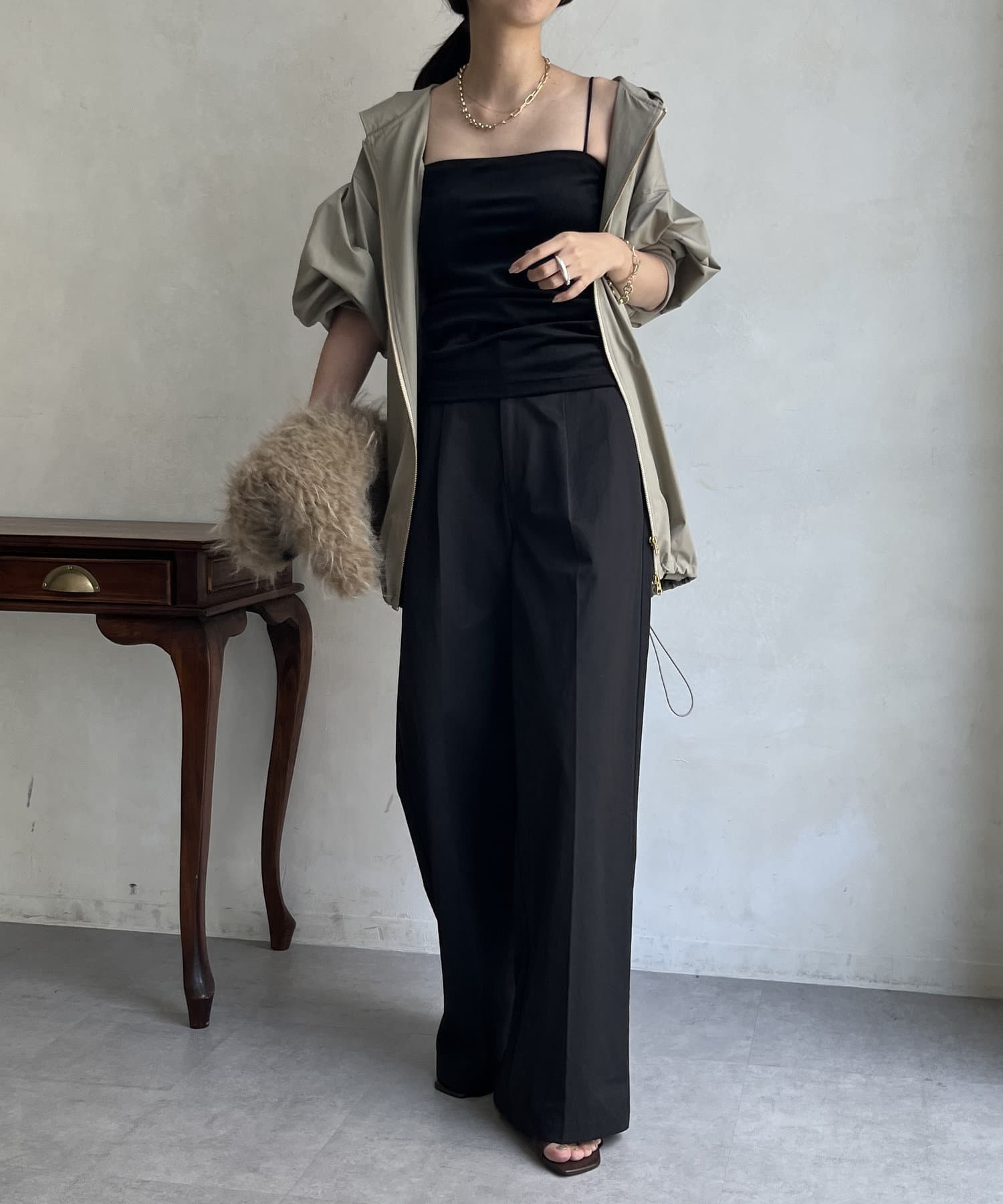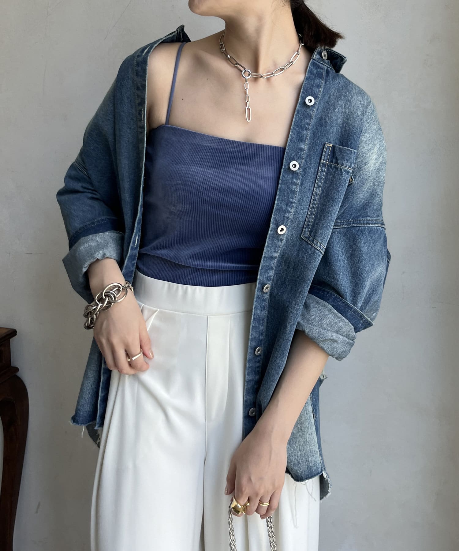 華奢な肩紐やフィットしたサイズ感でカジュアルな中にも女性らしさがしっかりあるデザインになってます。