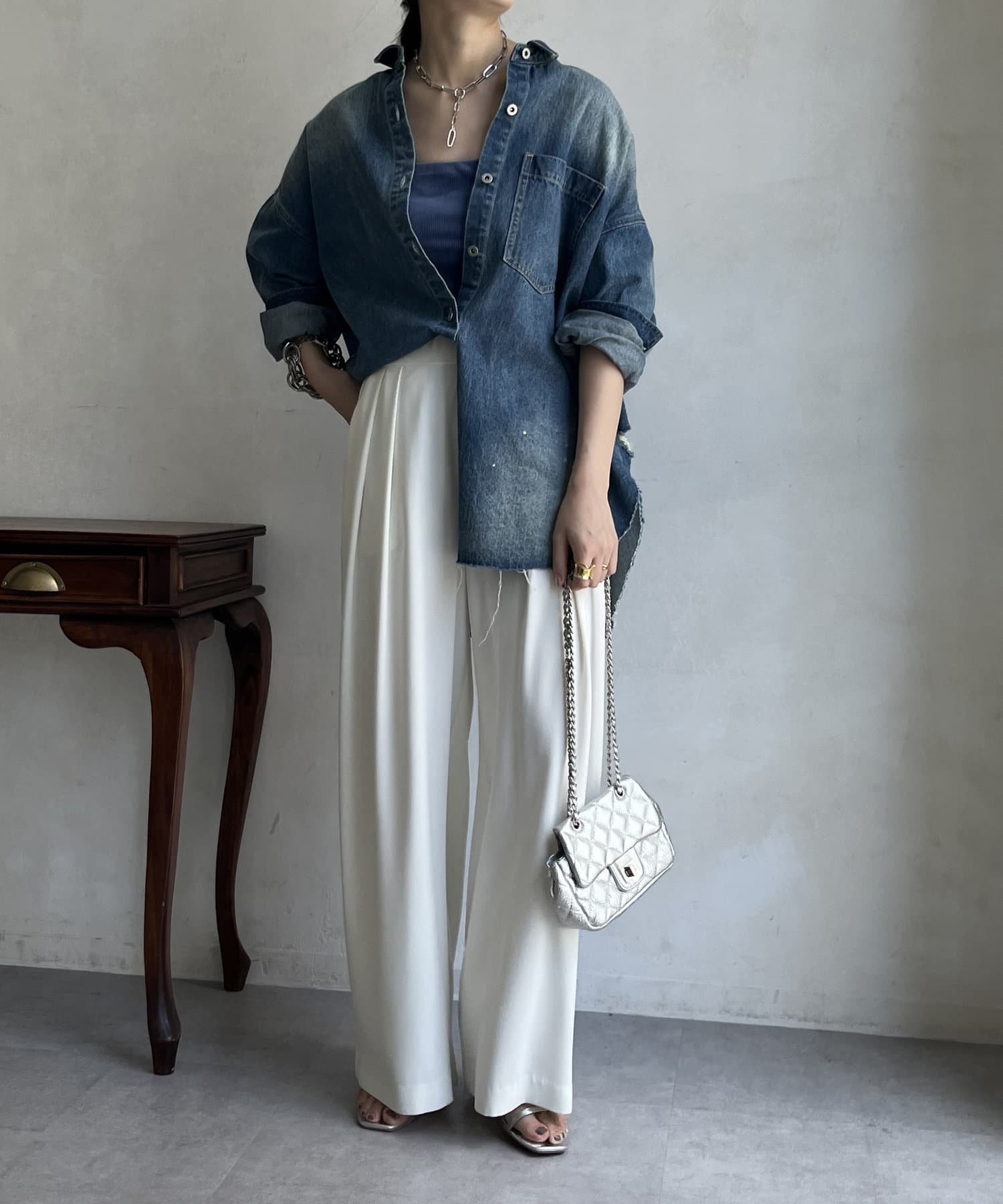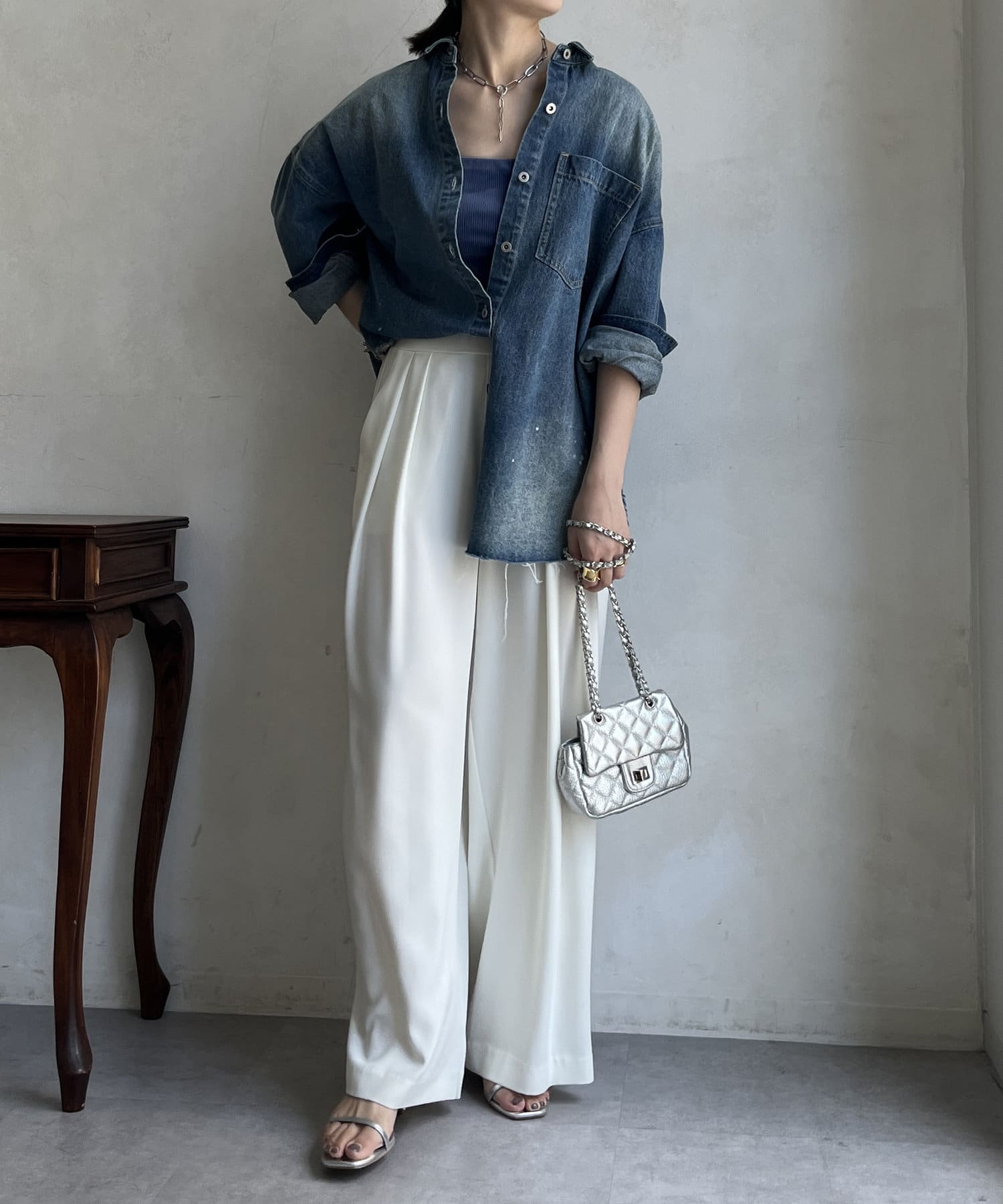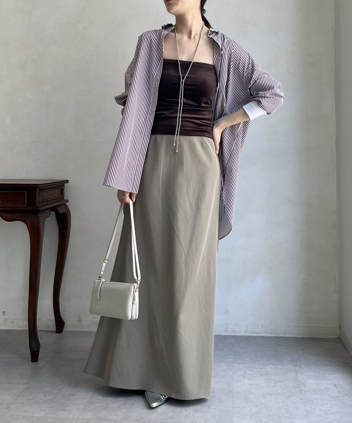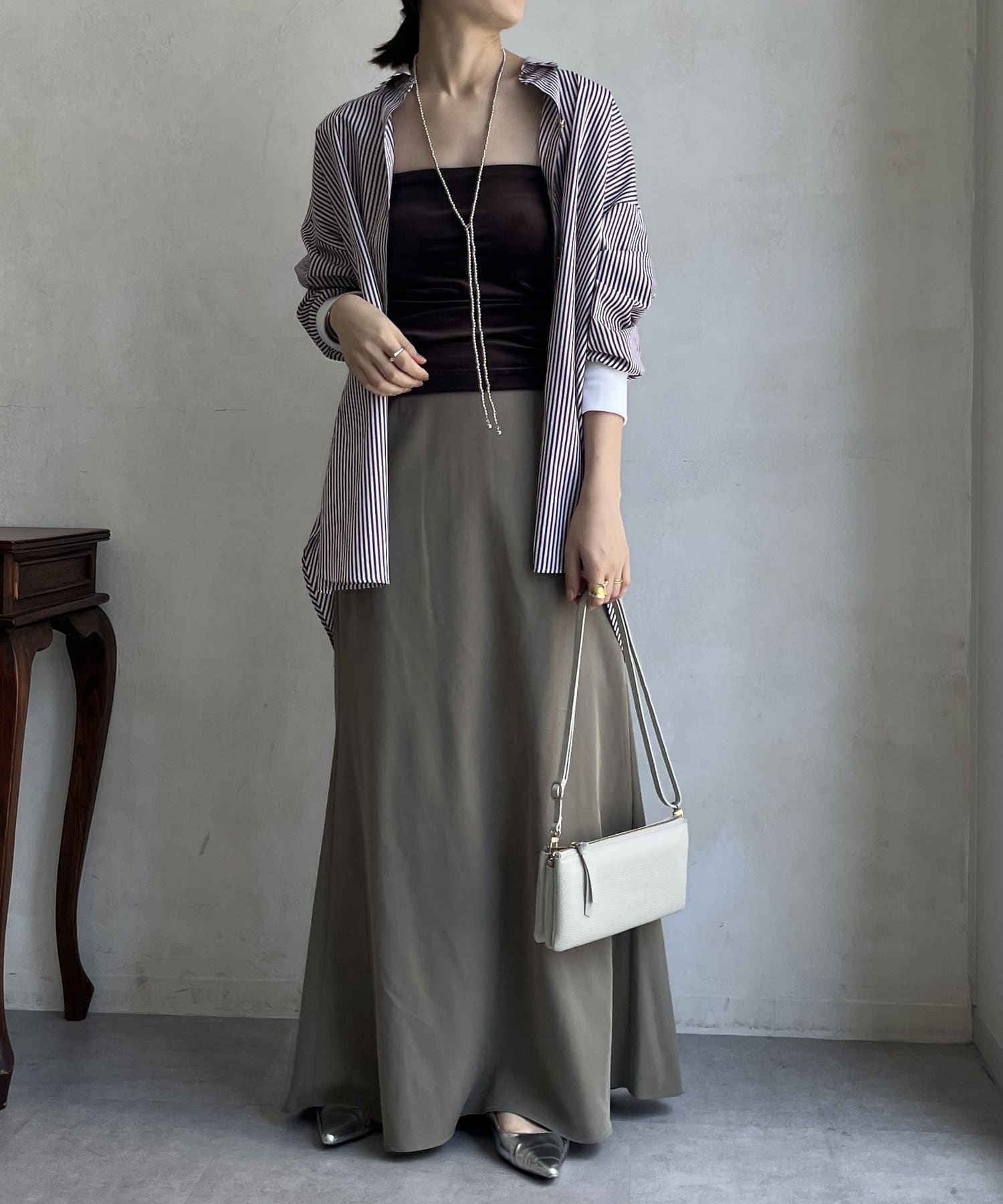 華奢な肩紐やフィットしたサイズ感でカジュアルな中にも女性らしさがしっかりあるデザインになってます。