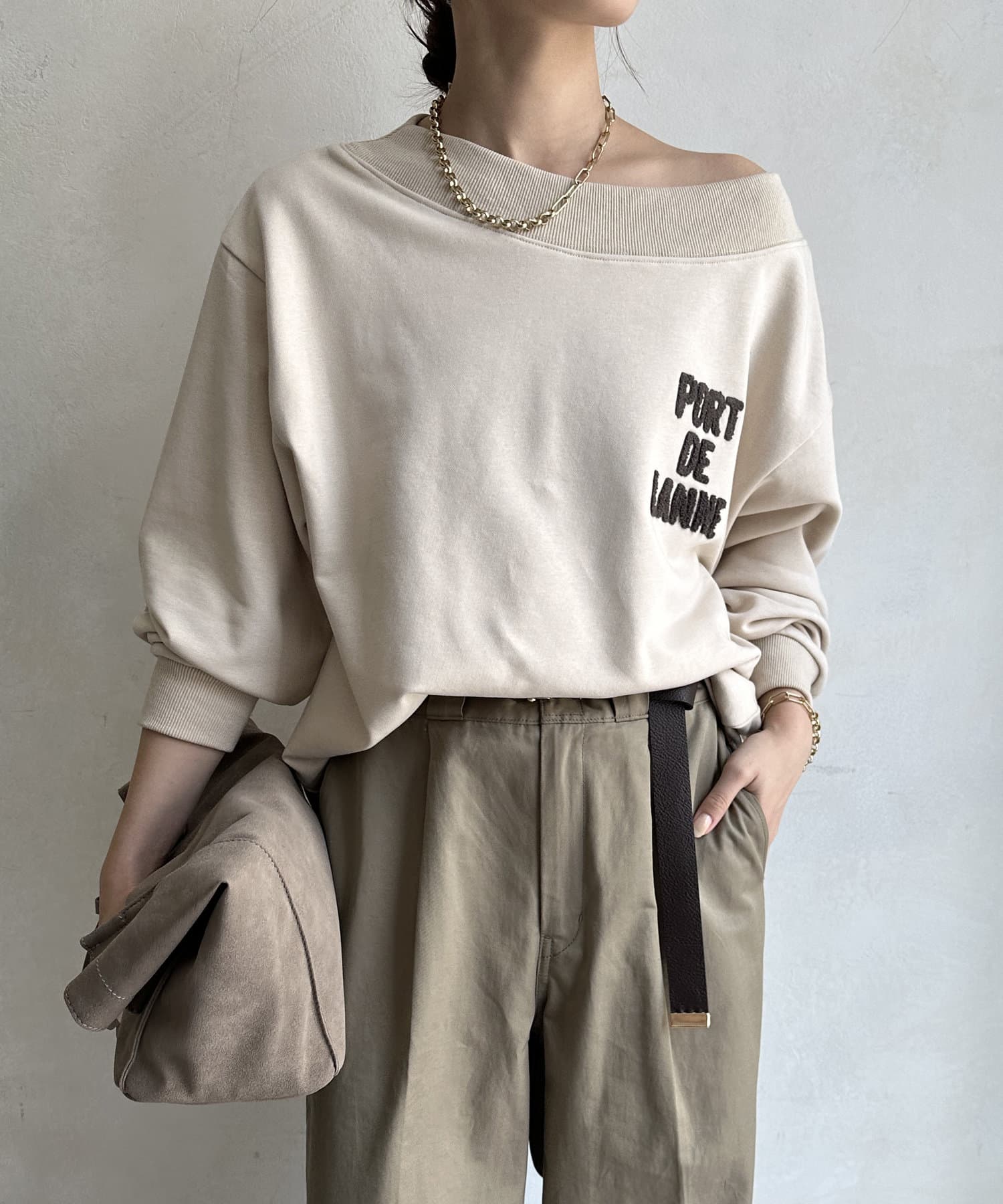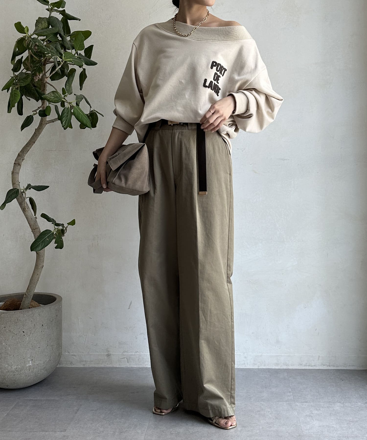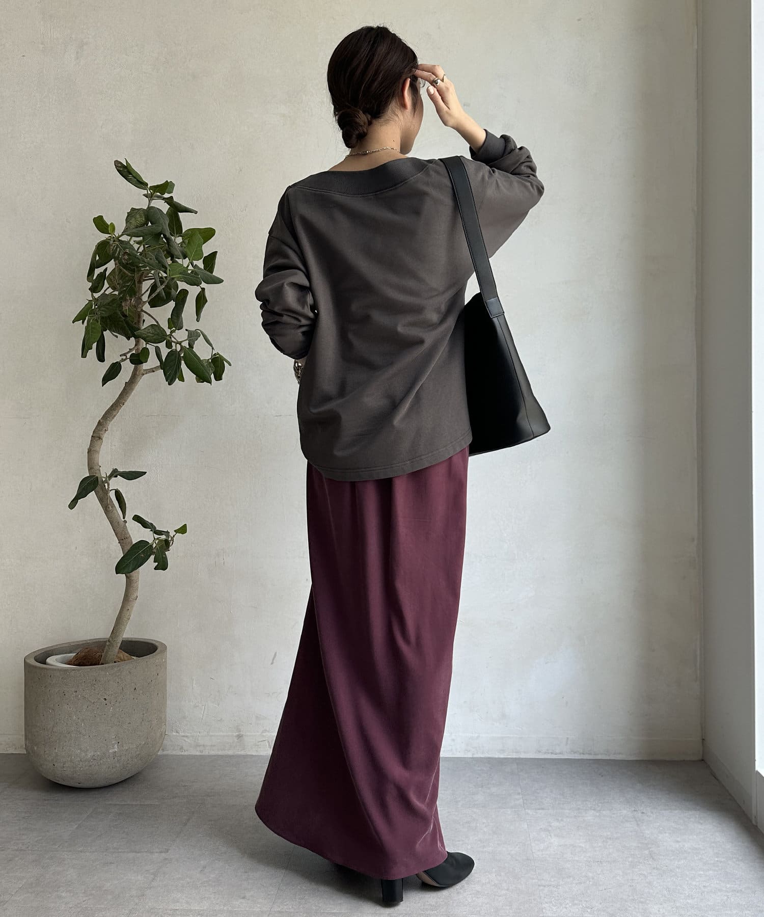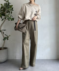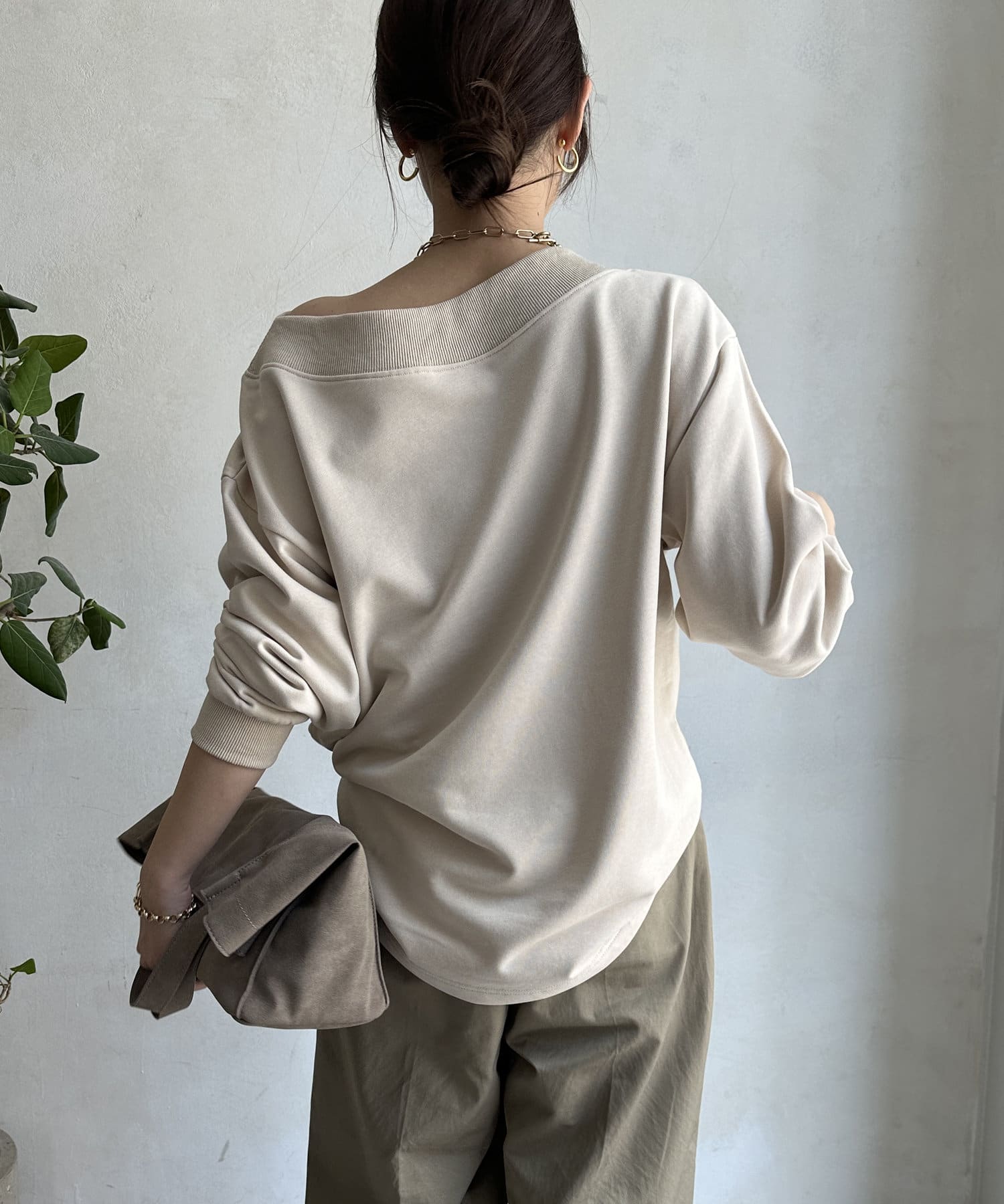 緩やかなネックが首元をすっきりと見せてくれて、女性らしいスタイリングに
