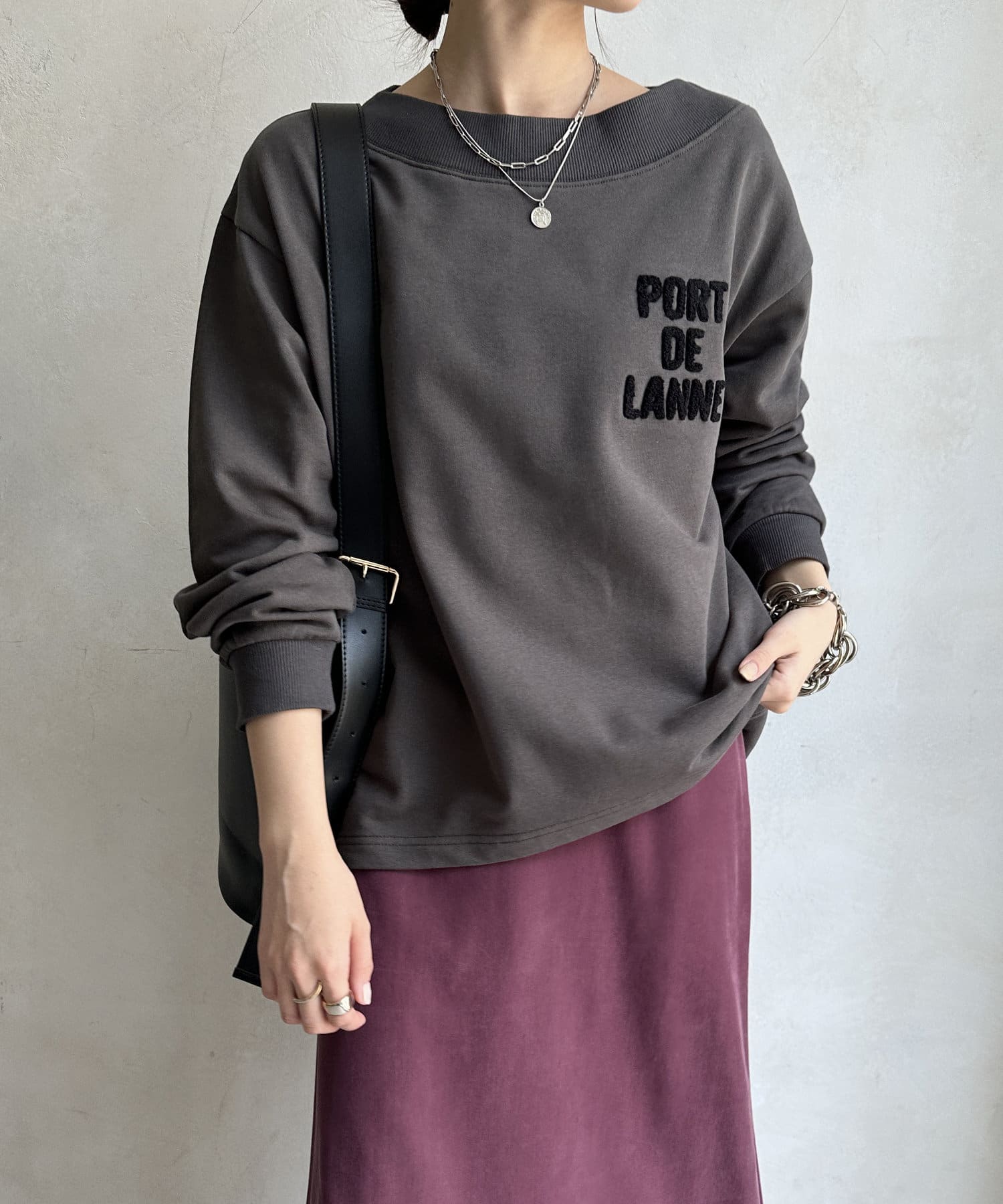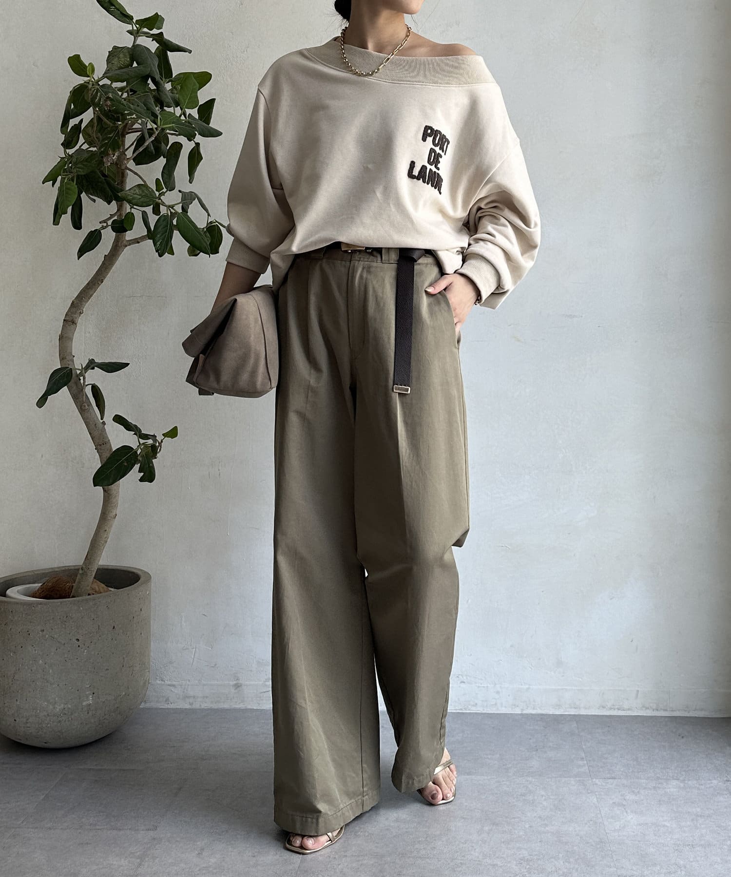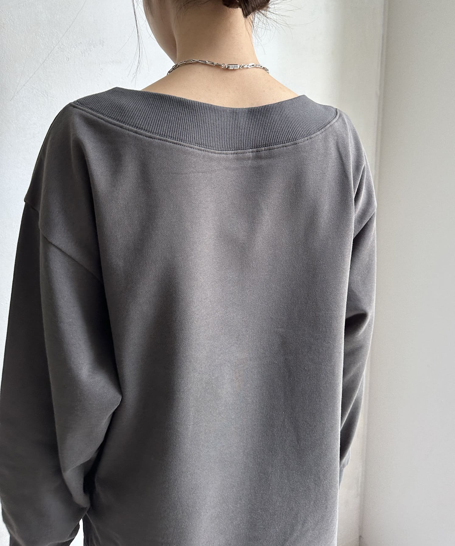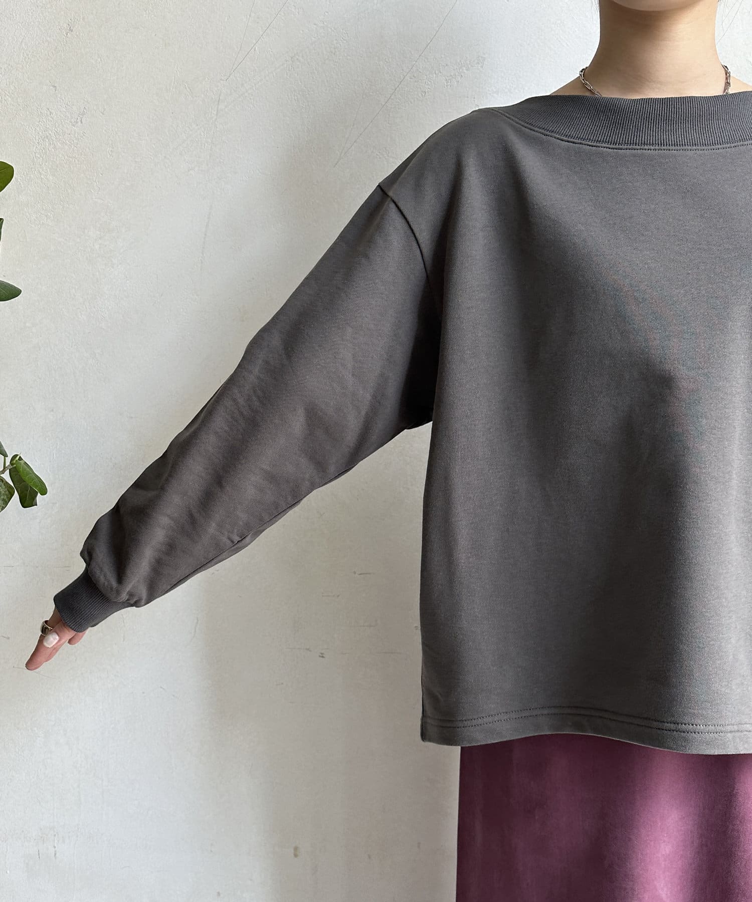 緩やかなネックが首元をすっきりと見せてくれて、女性らしいスタイリングに