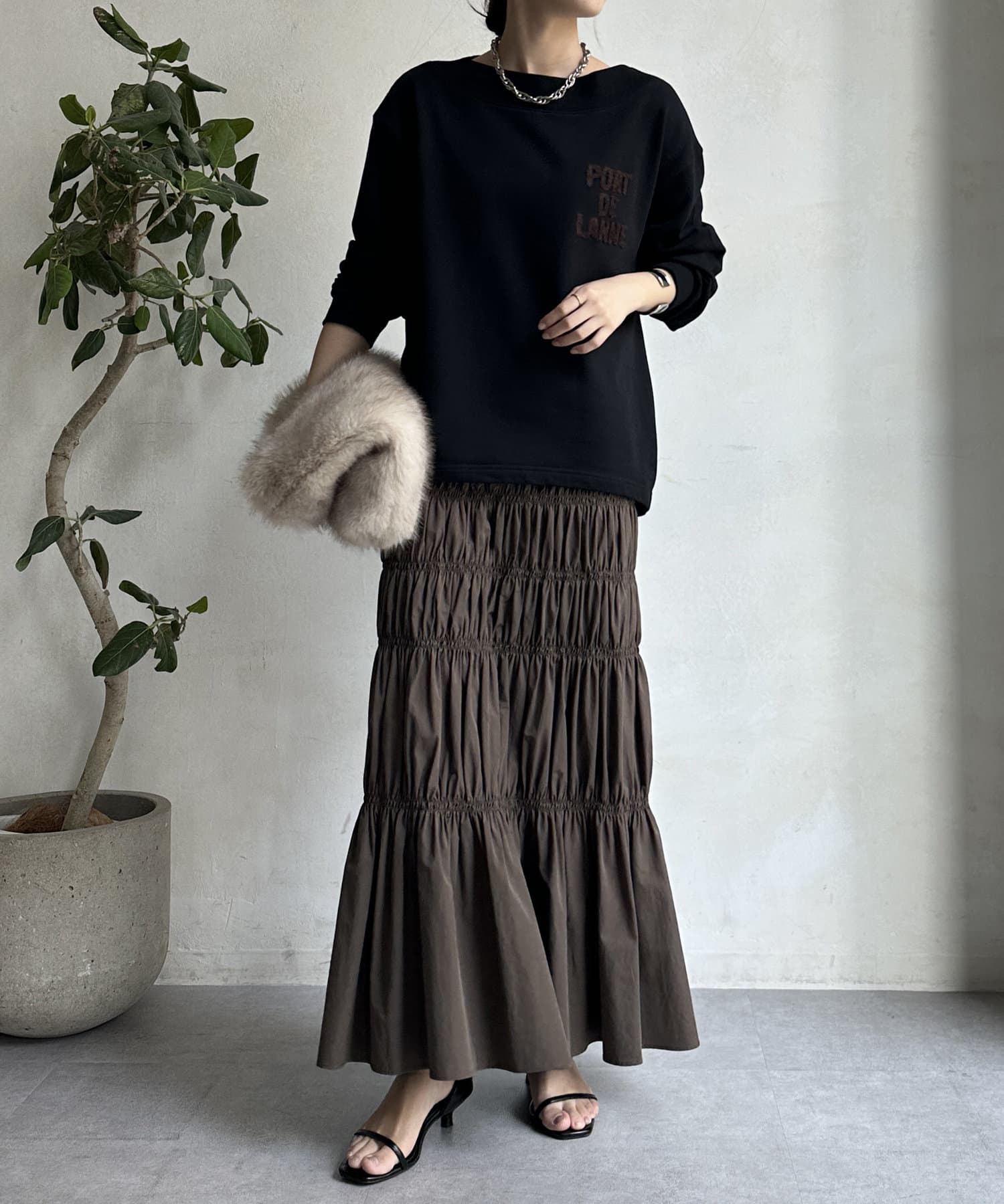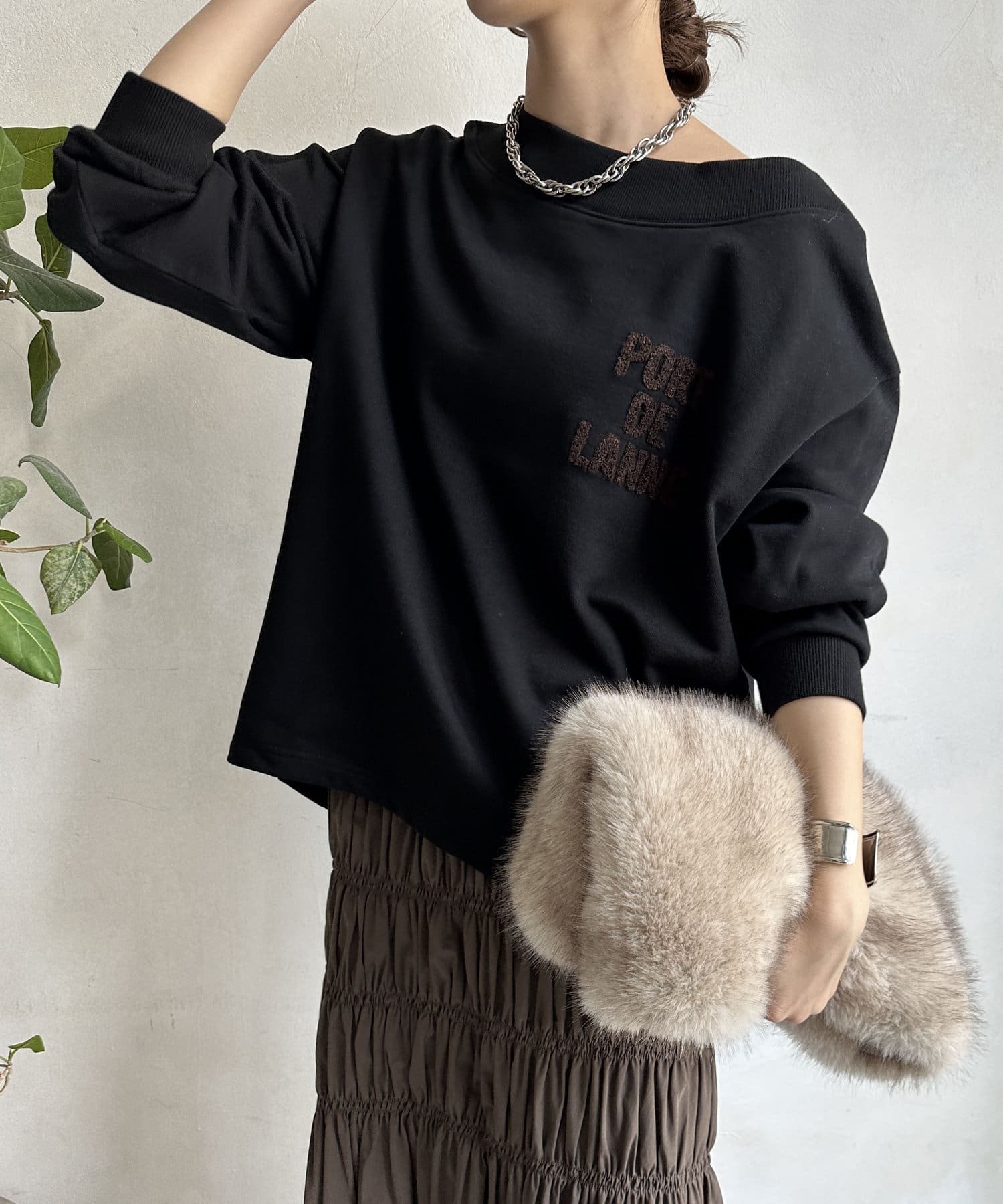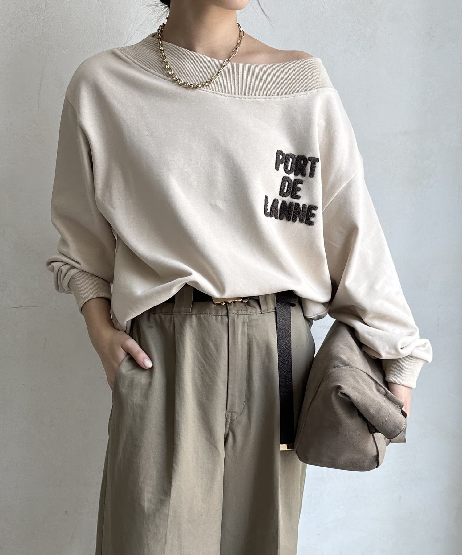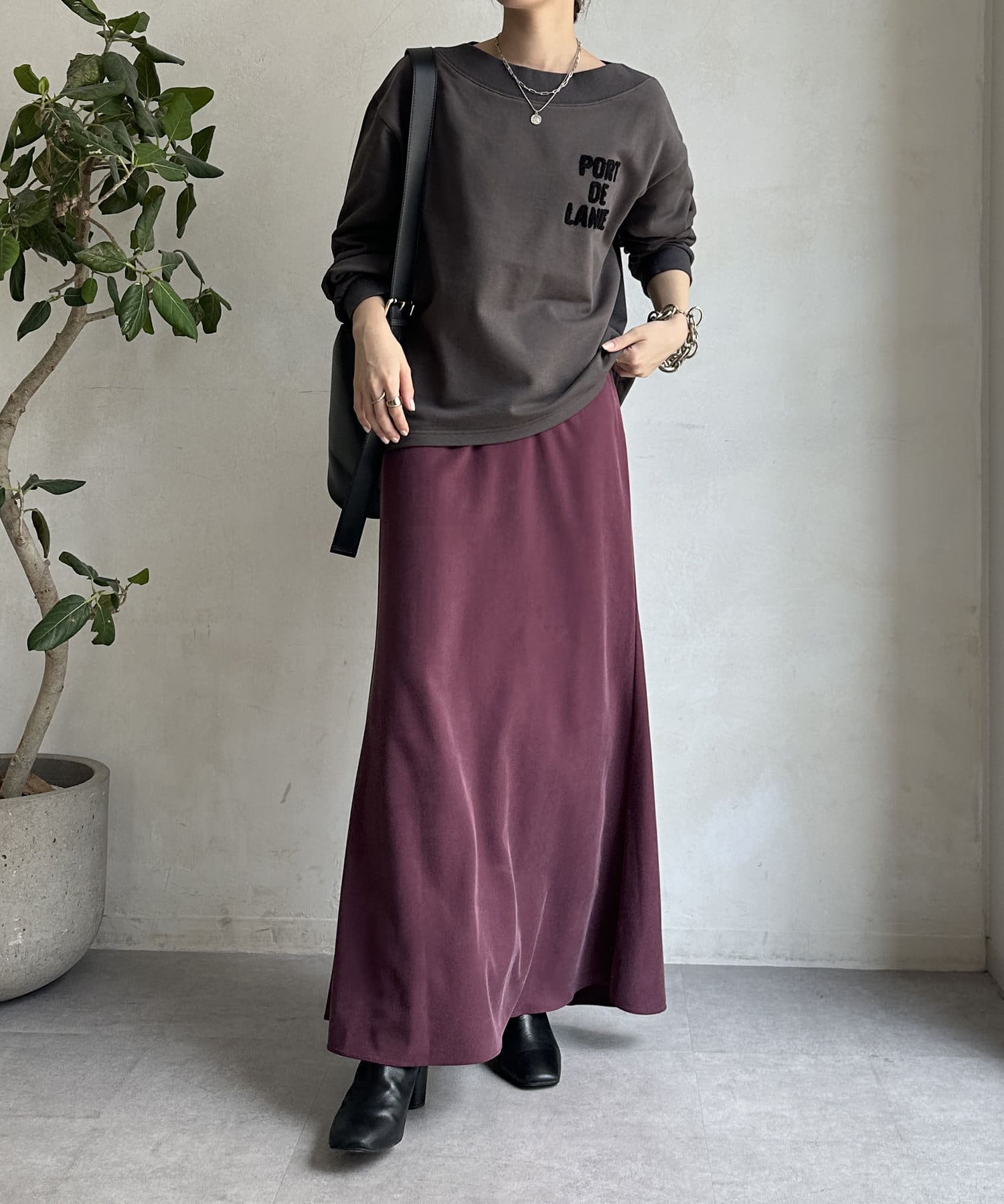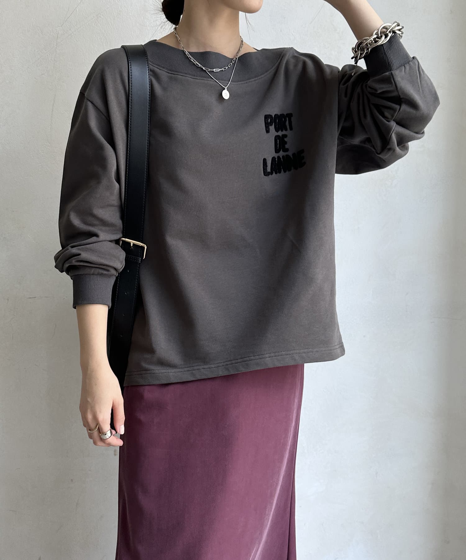 緩やかなネックが首元をすっきりと見せてくれて、女性らしいスタイリングに