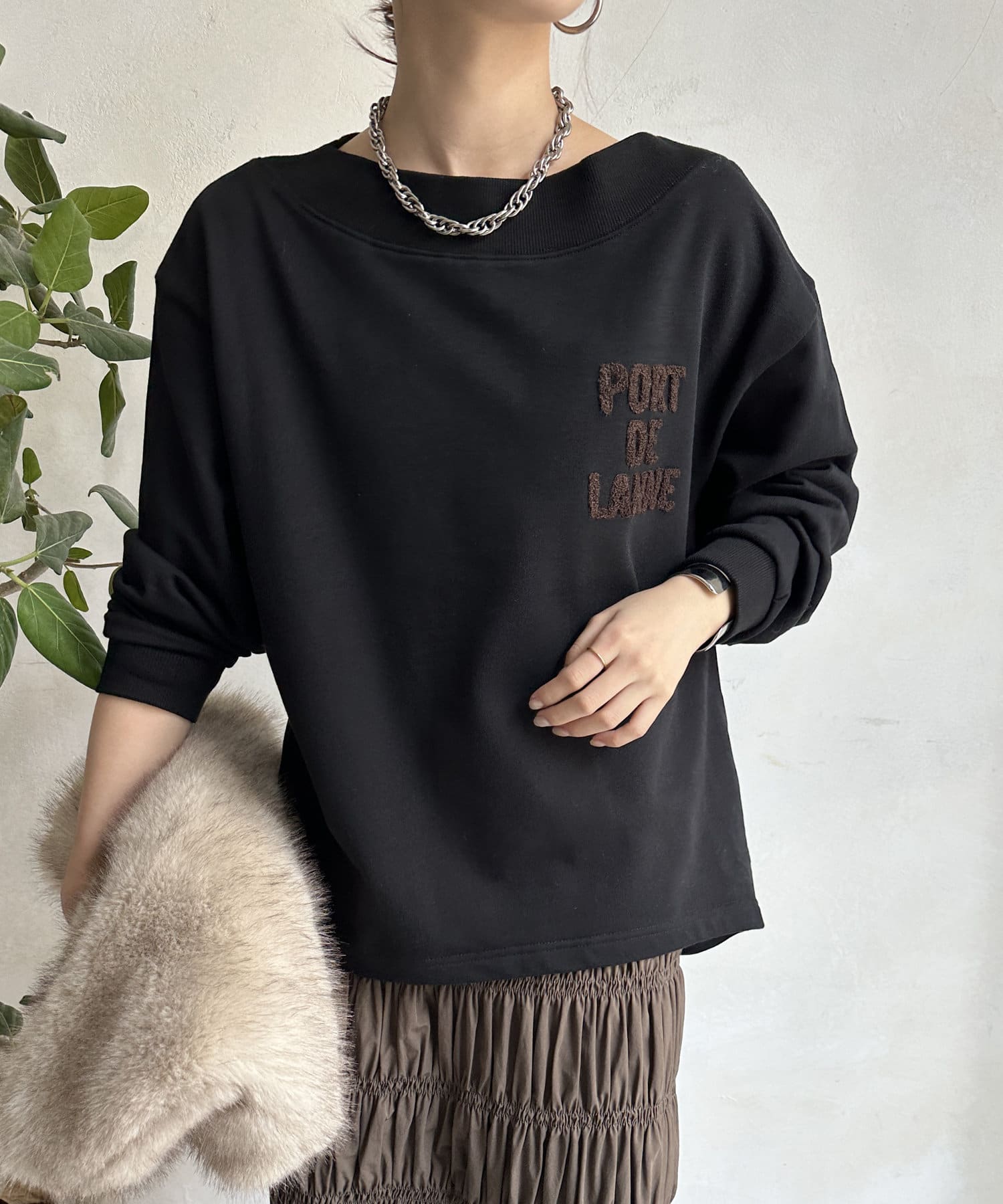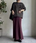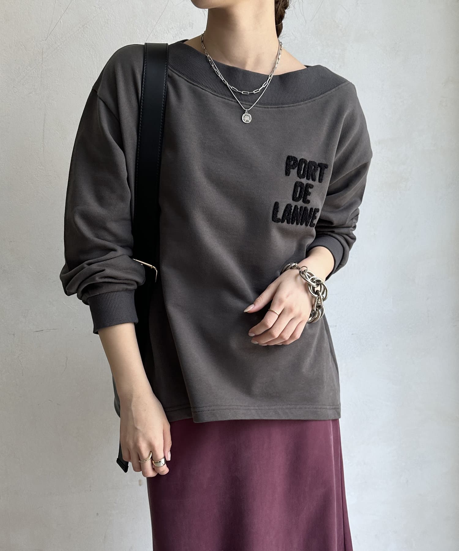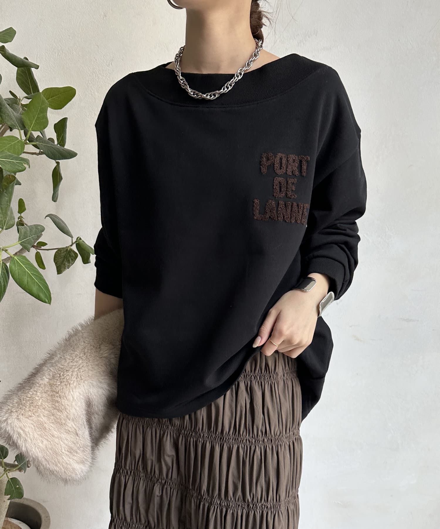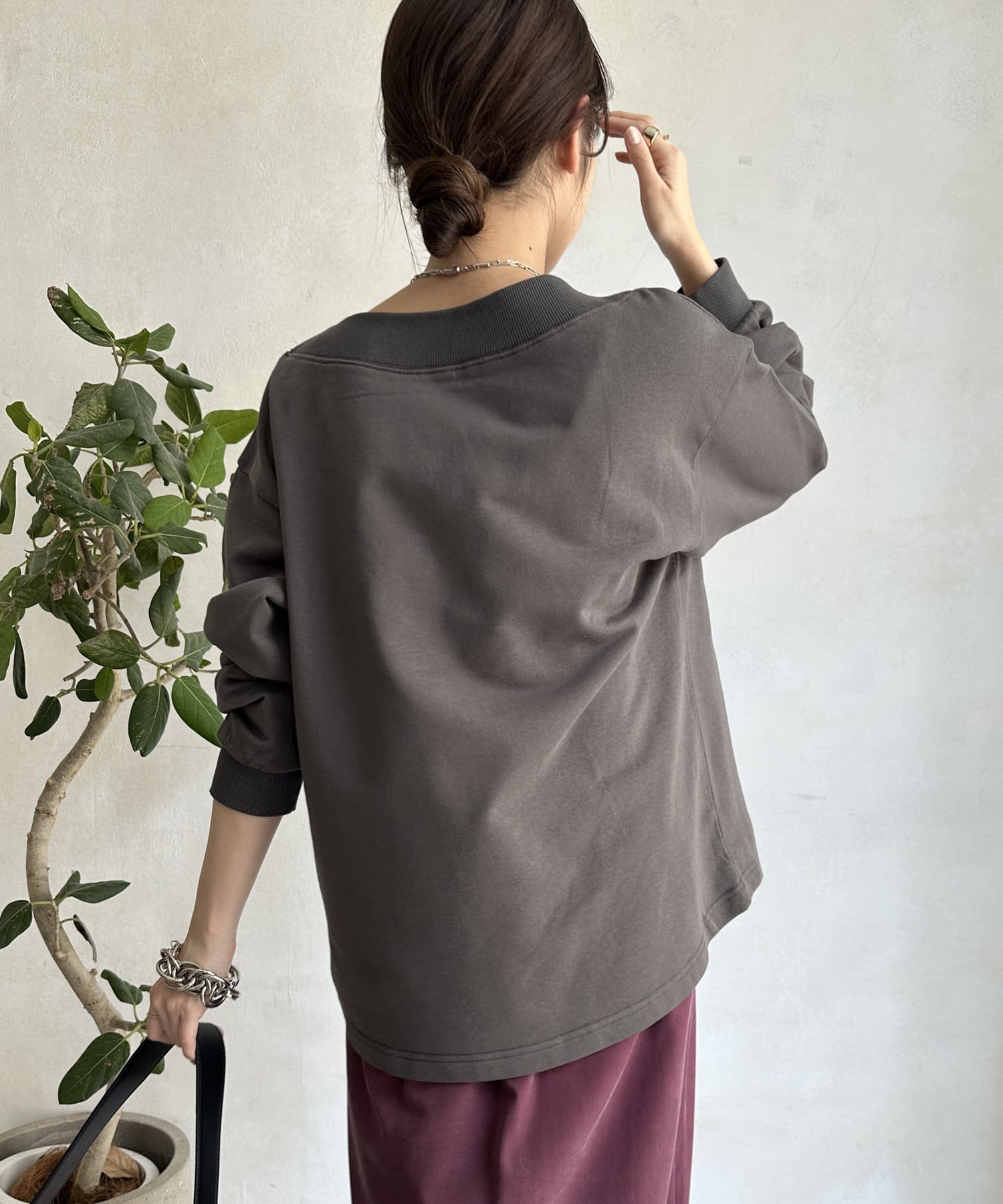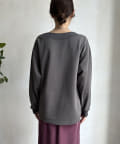 緩やかなネックが首元をすっきりと見せてくれて、女性らしいスタイリングに