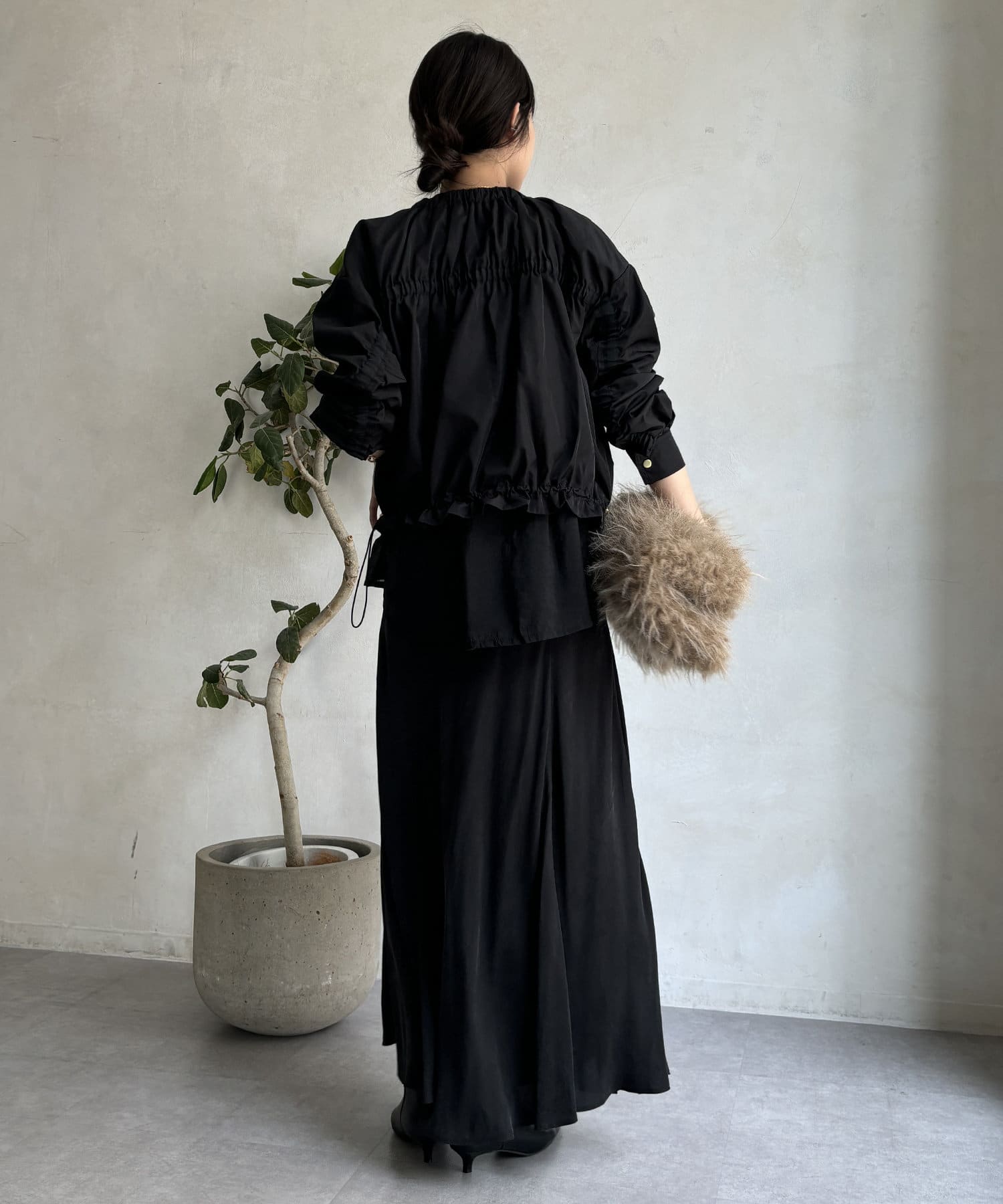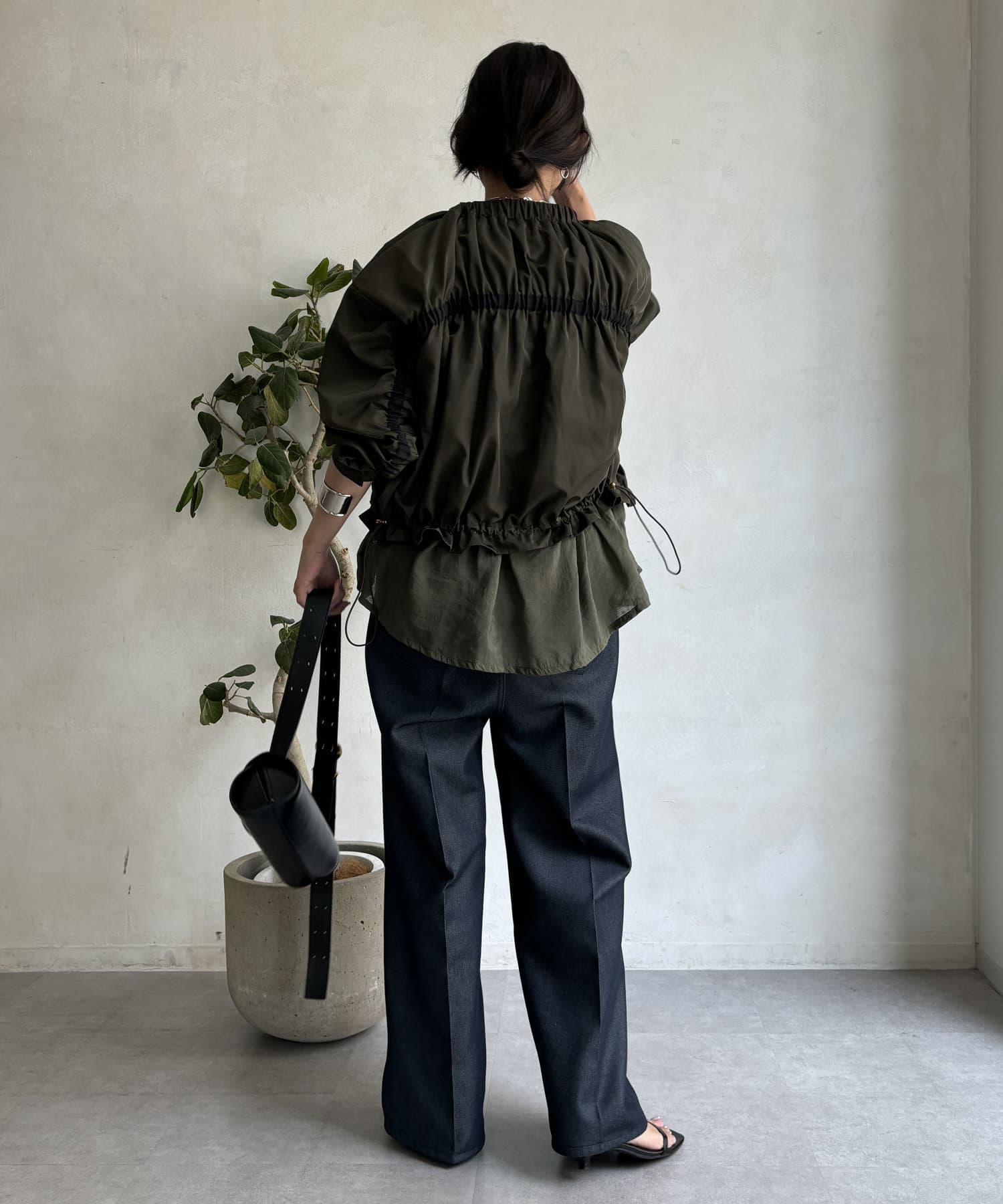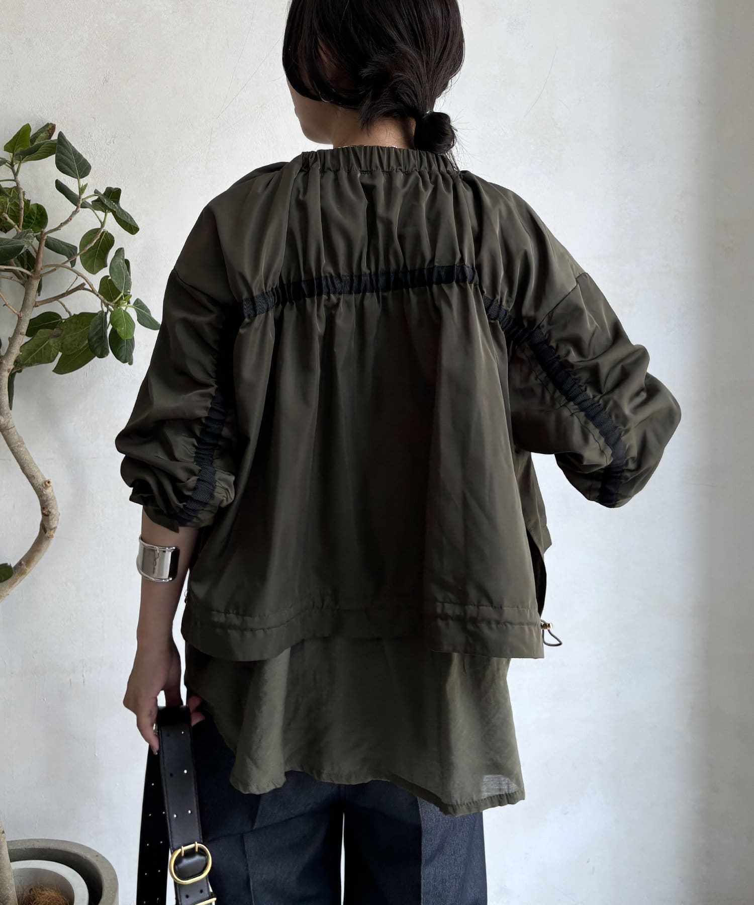 ウエストを絞れば、ギュッとギャザーを作り出し、女性らしい印象に!