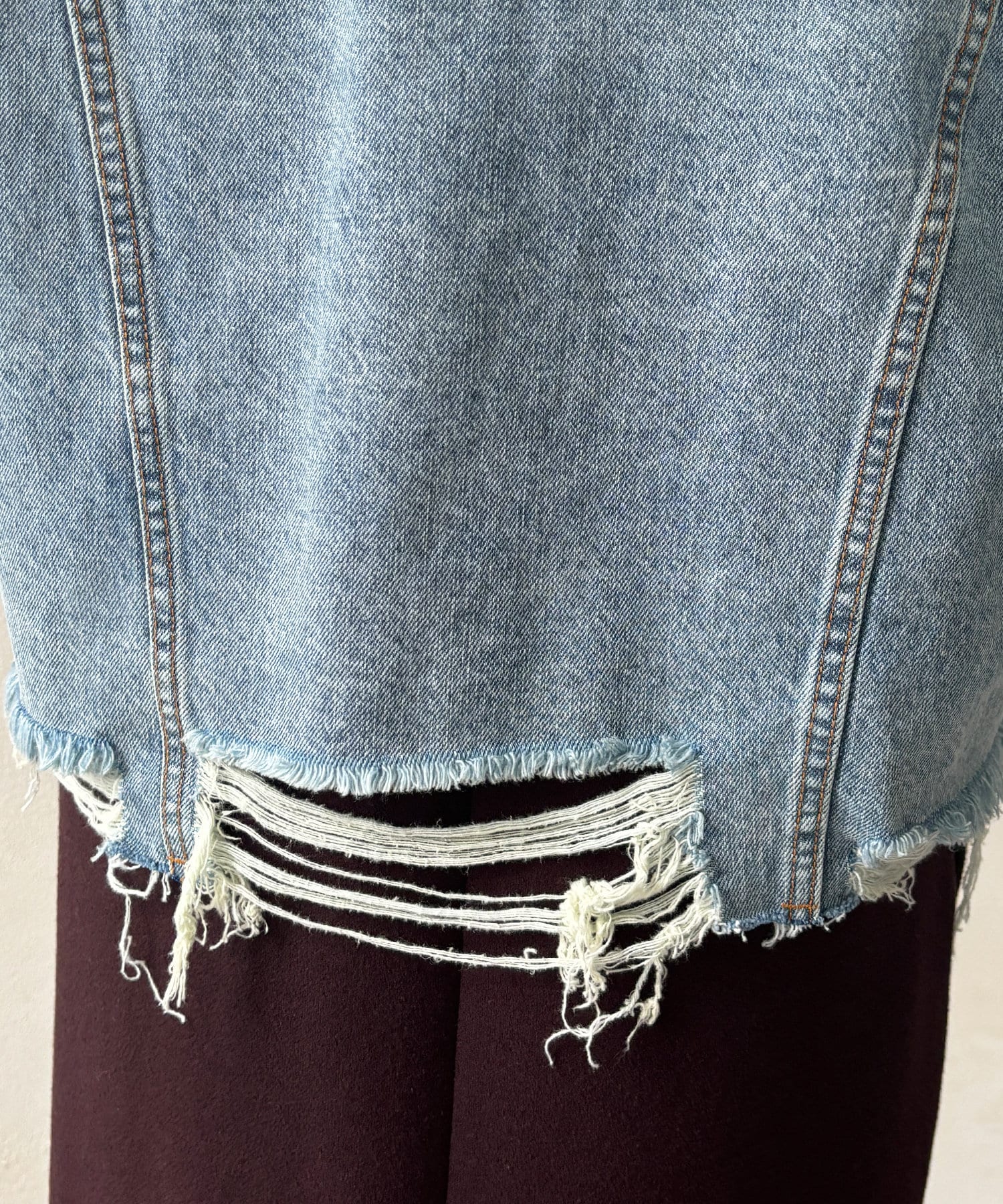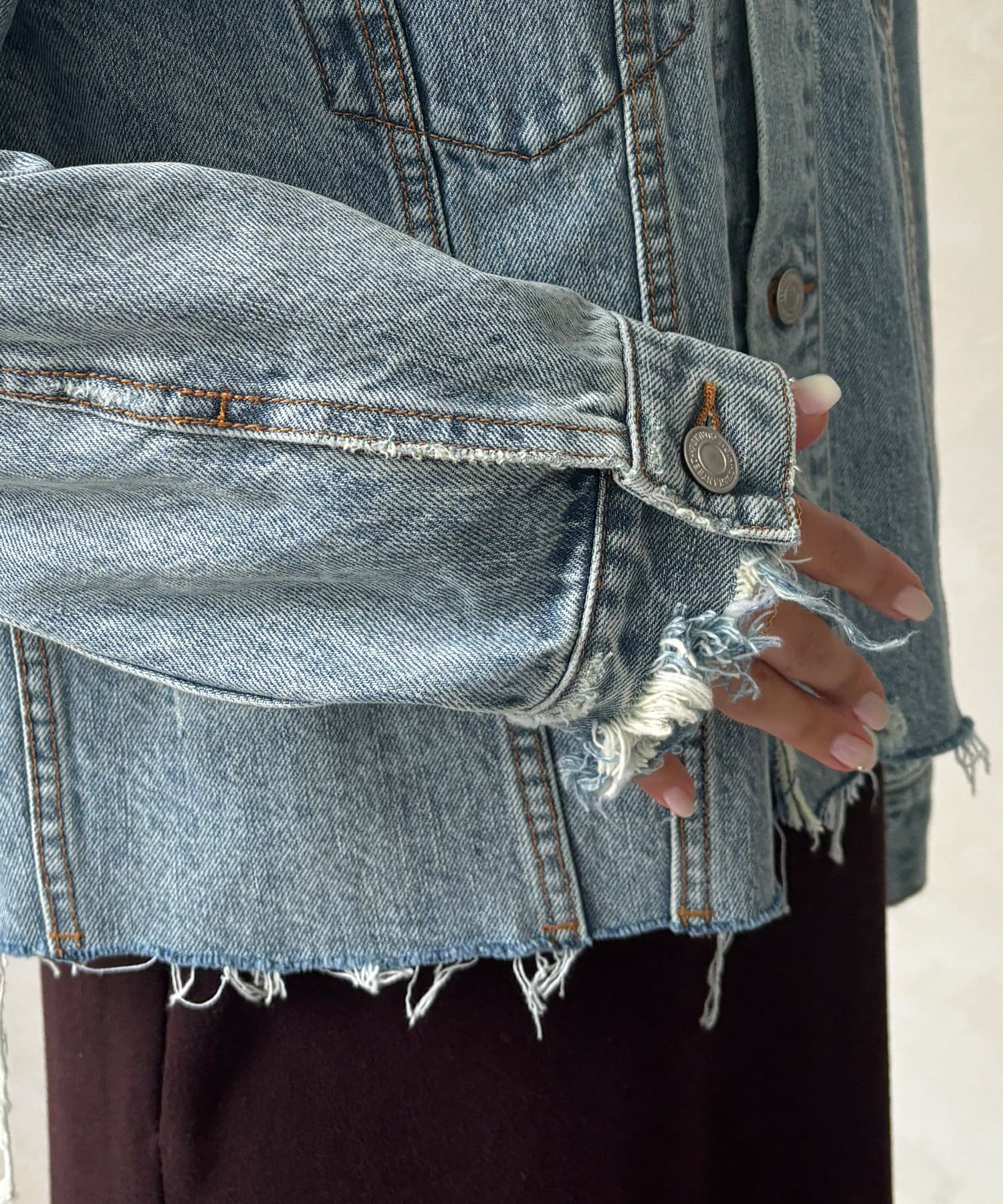ダメージ加工や切りっぱなしの裾などが、カジュアルさの中にも程よい抜け感をプラス。