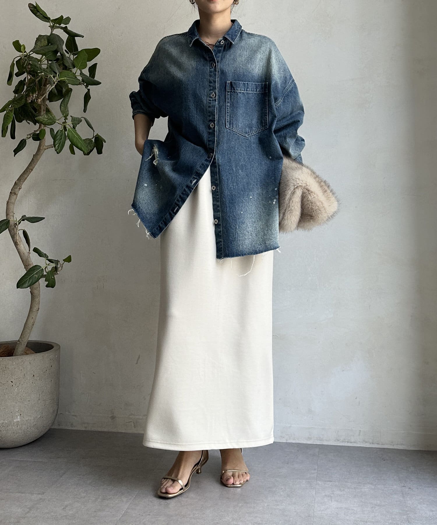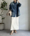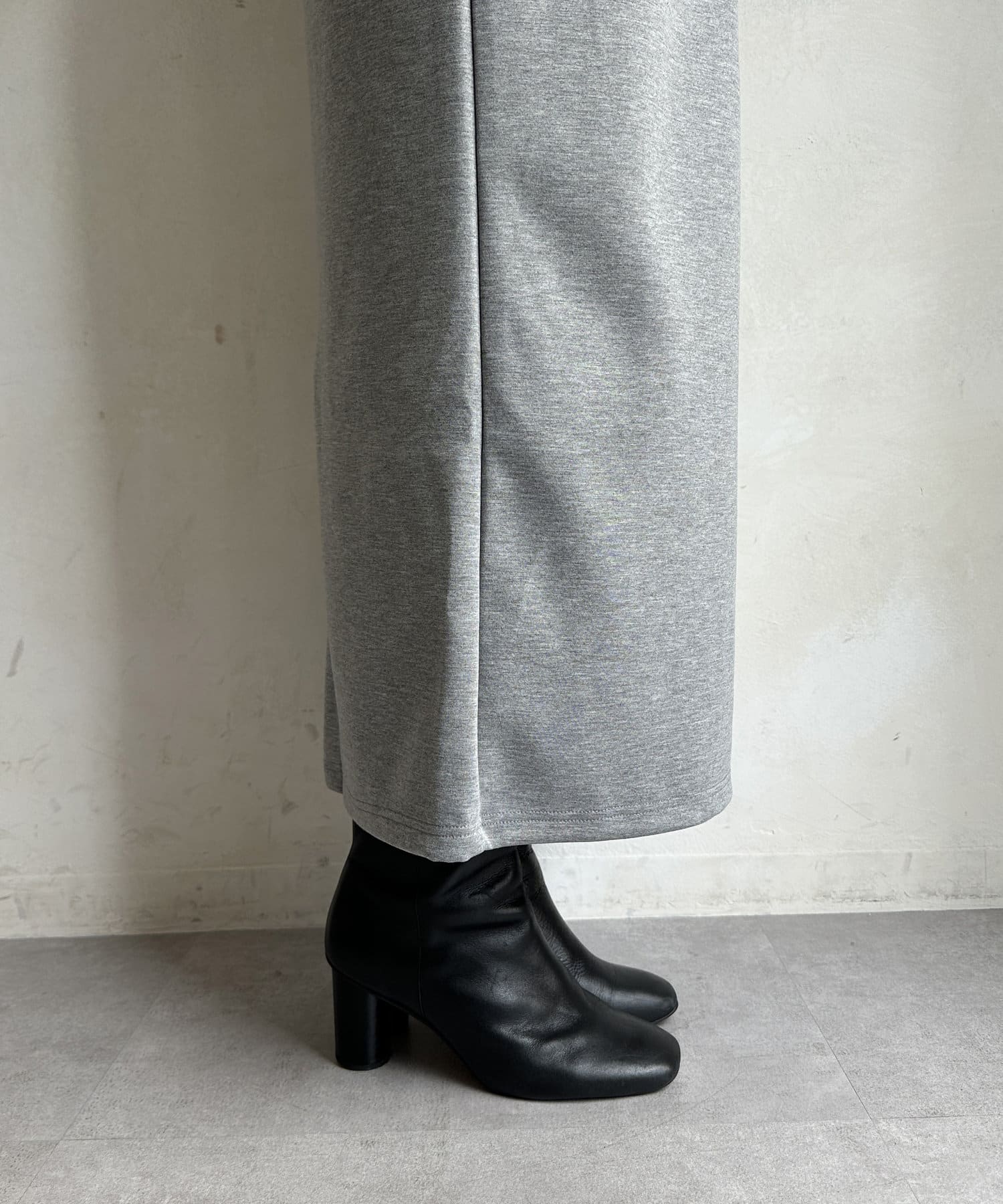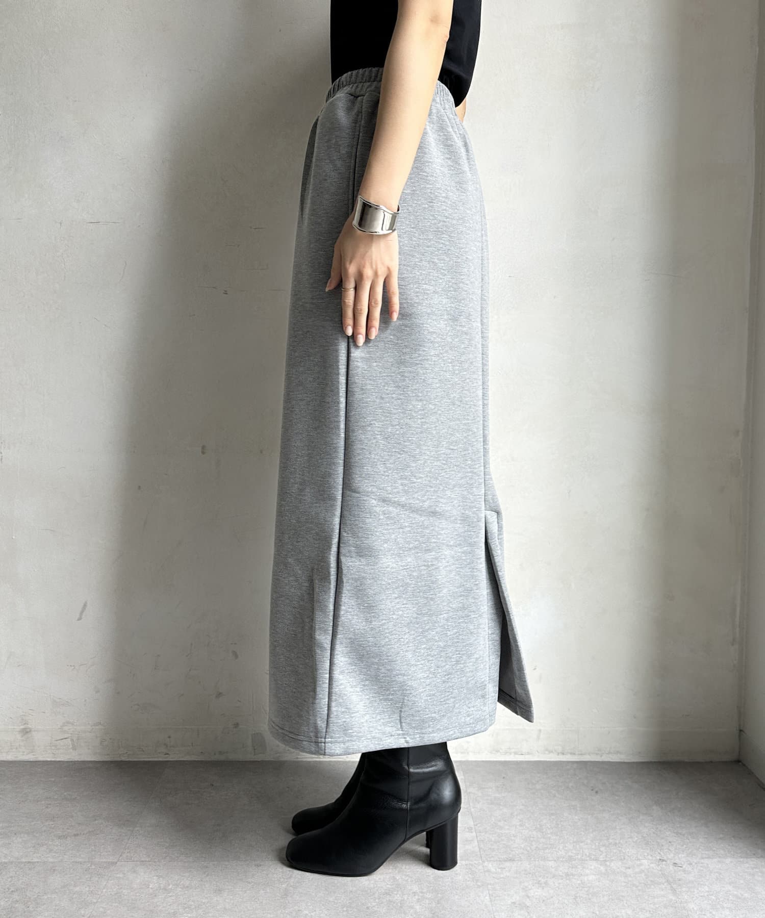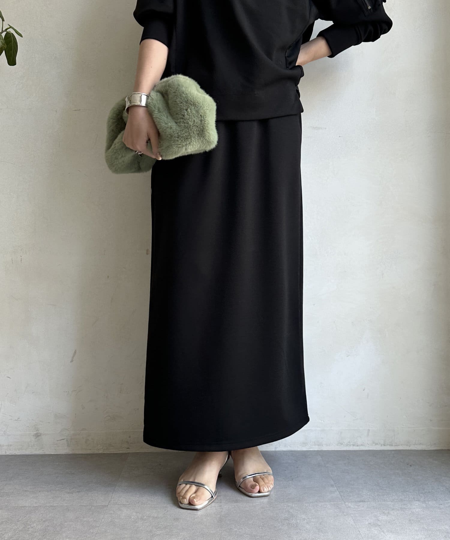 スカートは、程よいゆとりで体のラインを拾いにくく、すっきりみえるタイトシルエットになっております。