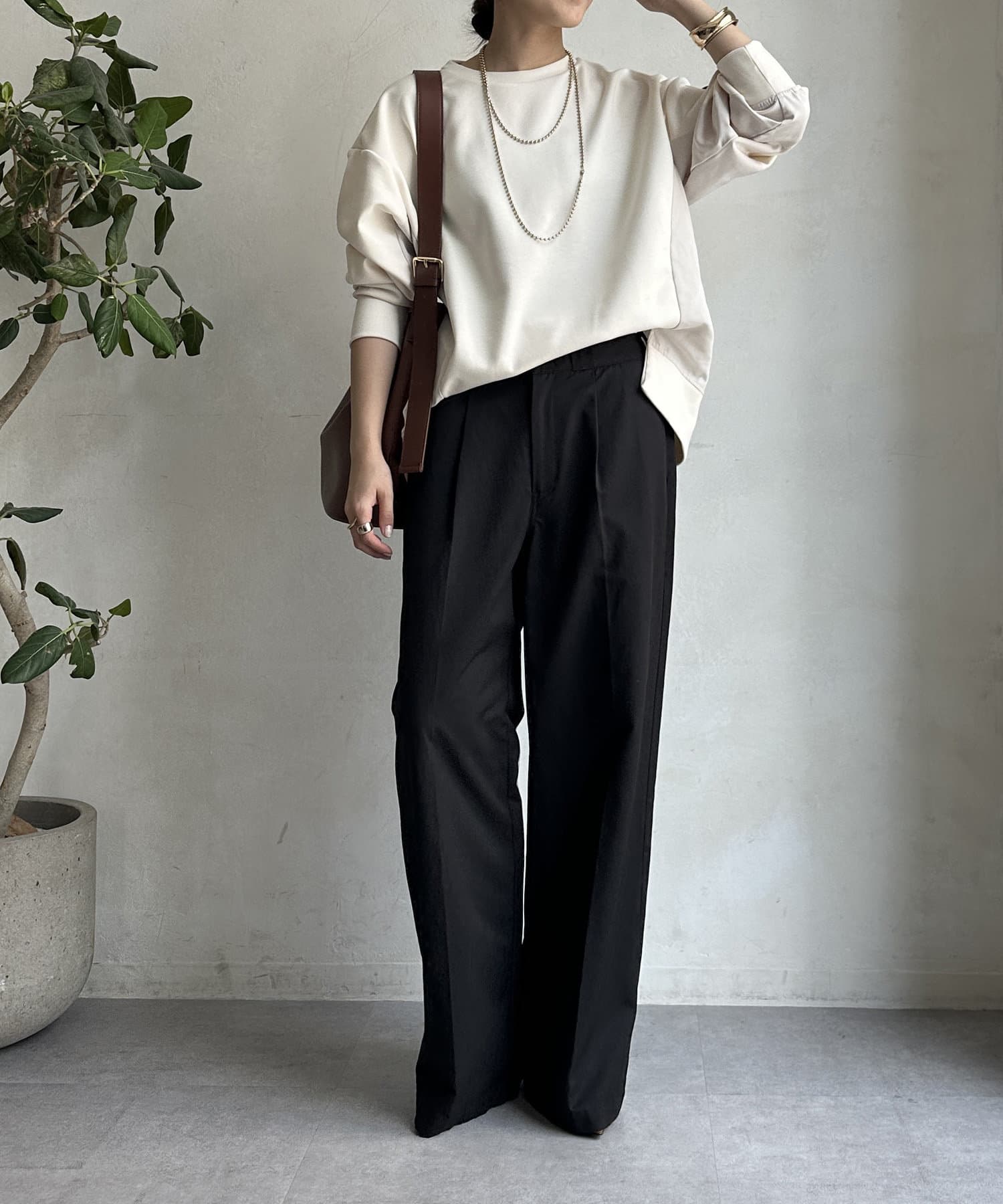 リラクシーな着心地でこのアイテム1つでコーディネートが完成する嬉しいアイテムですよ!