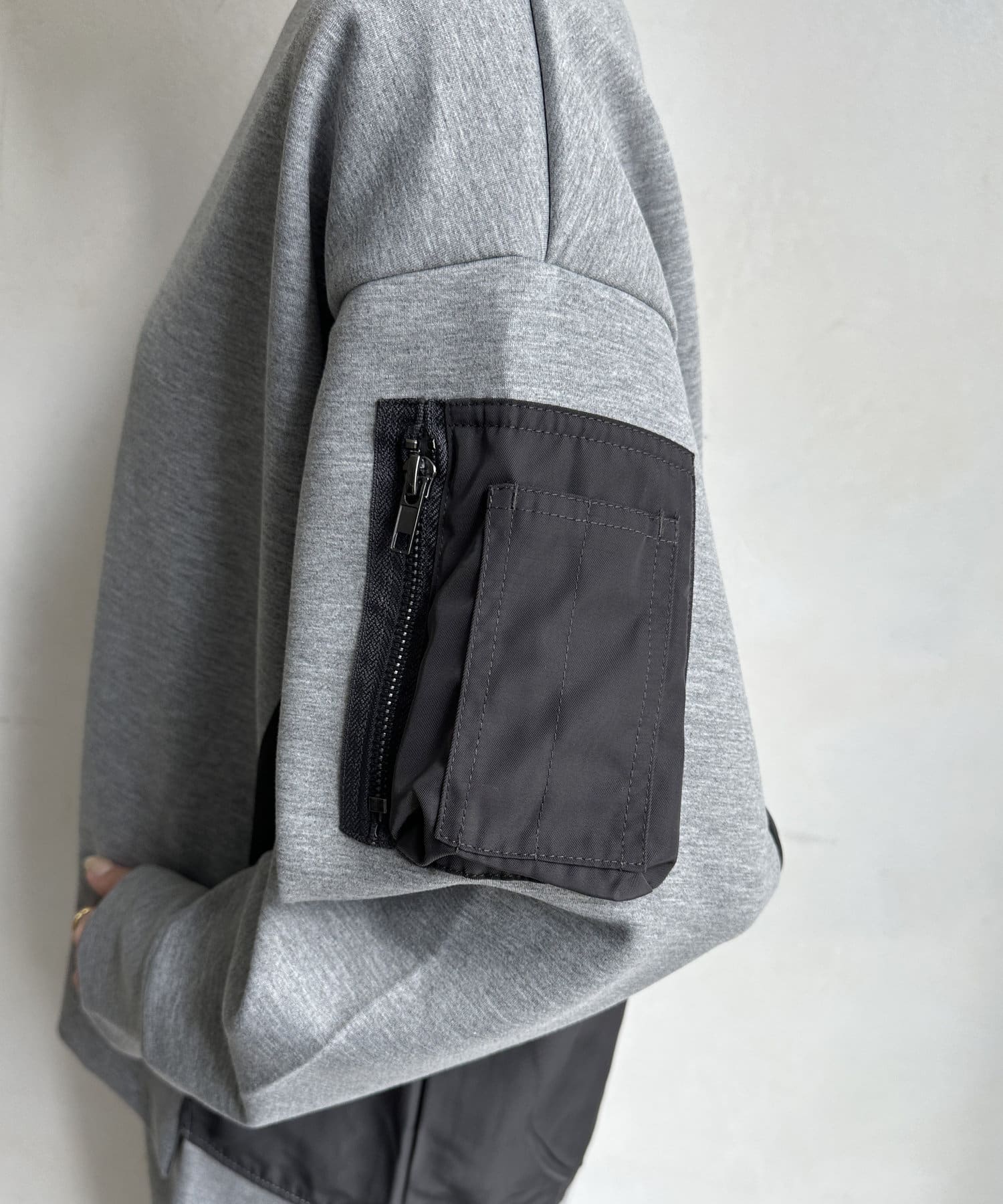 プルオーバーは、袖ポケットなどのMA1デザインがポイント。