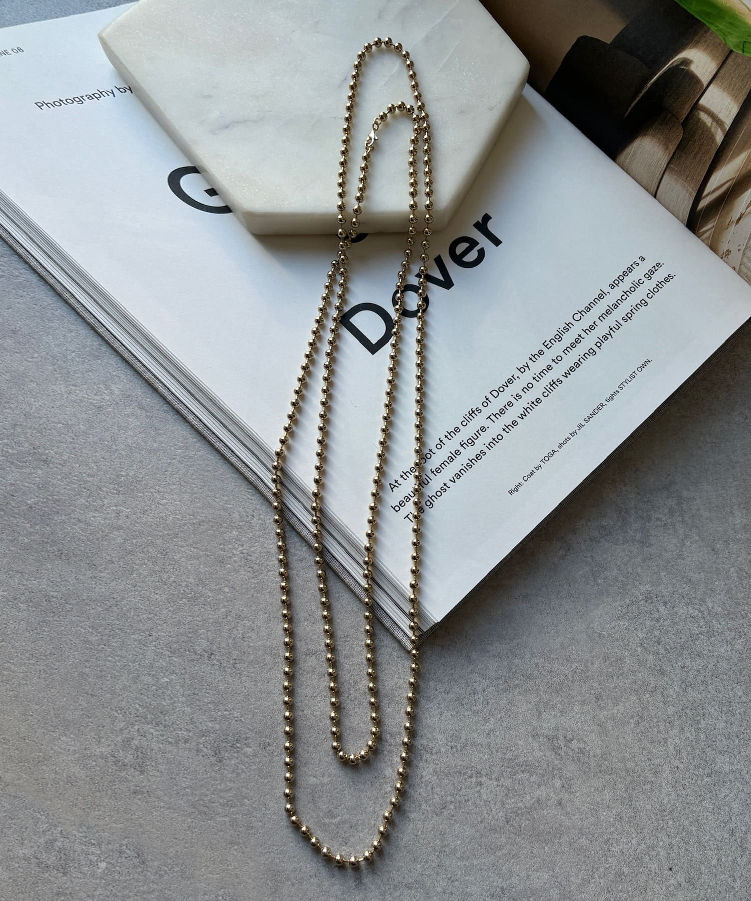 やや小さめのボールパーツのトレンド感あるロングネックレス。