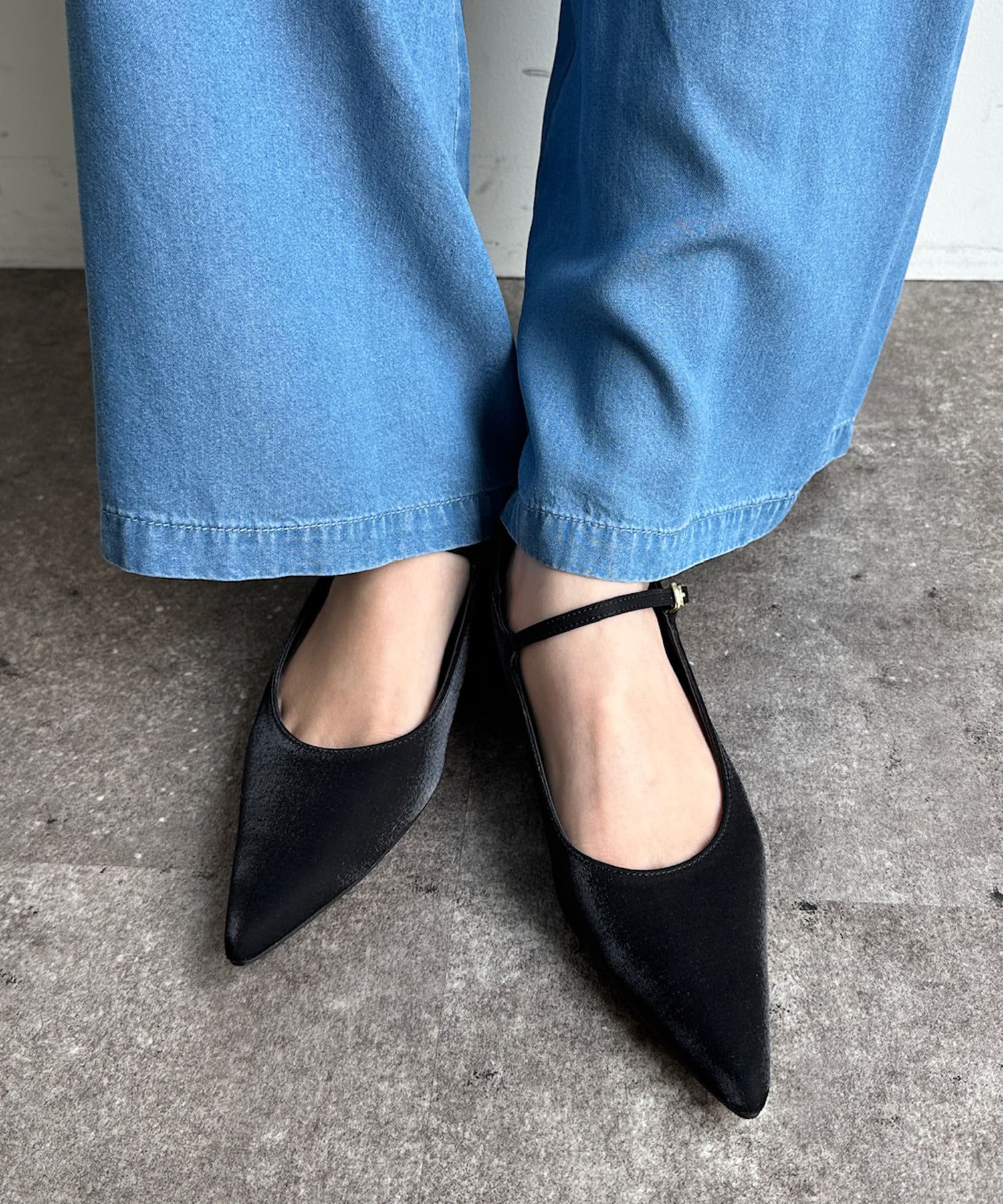 ポインテッドトゥが足元をスッキリと綺麗に見せてくれて、女性らしさを演出してくれます。