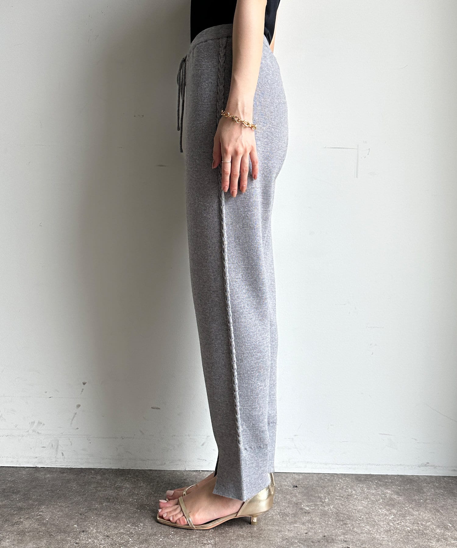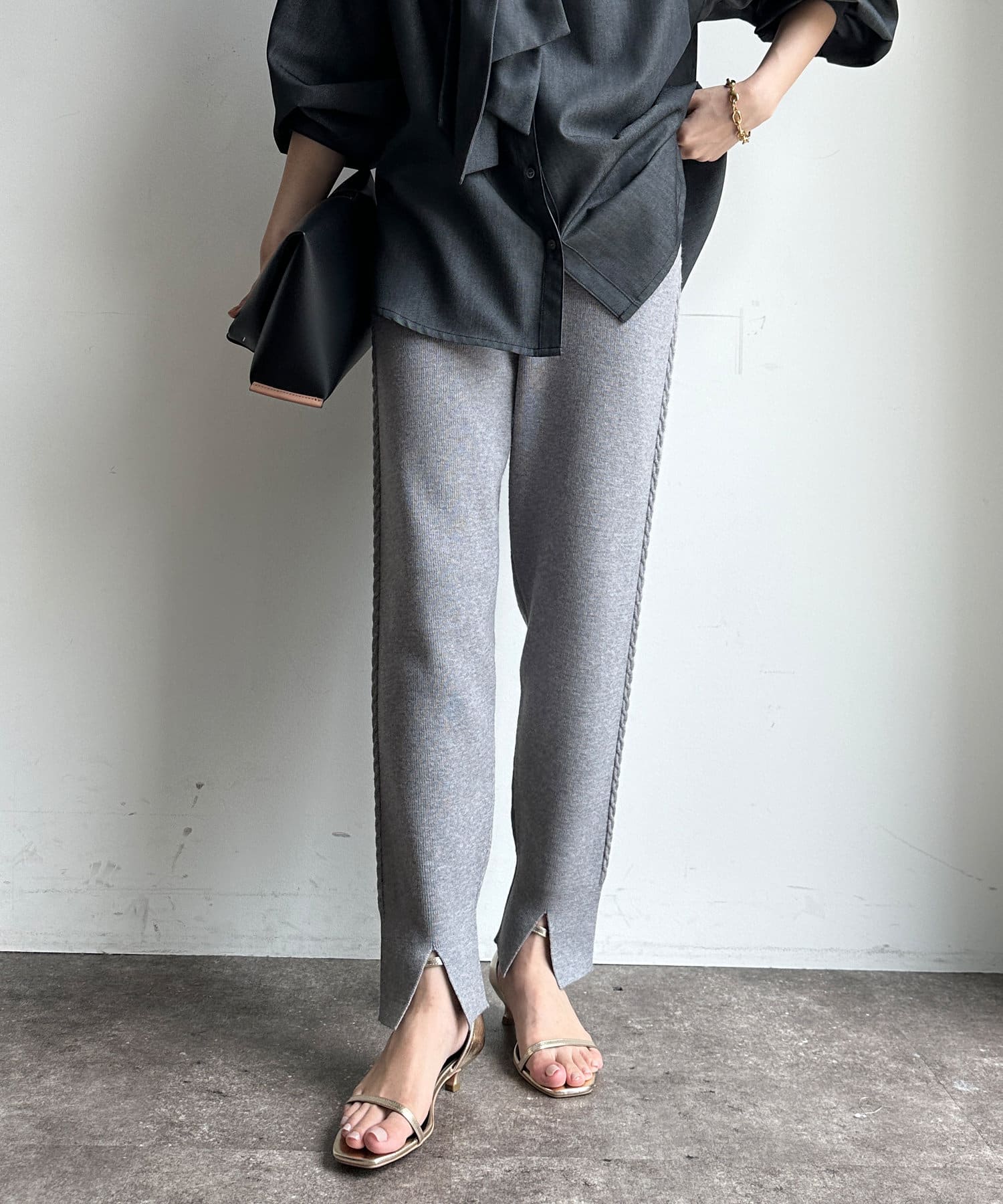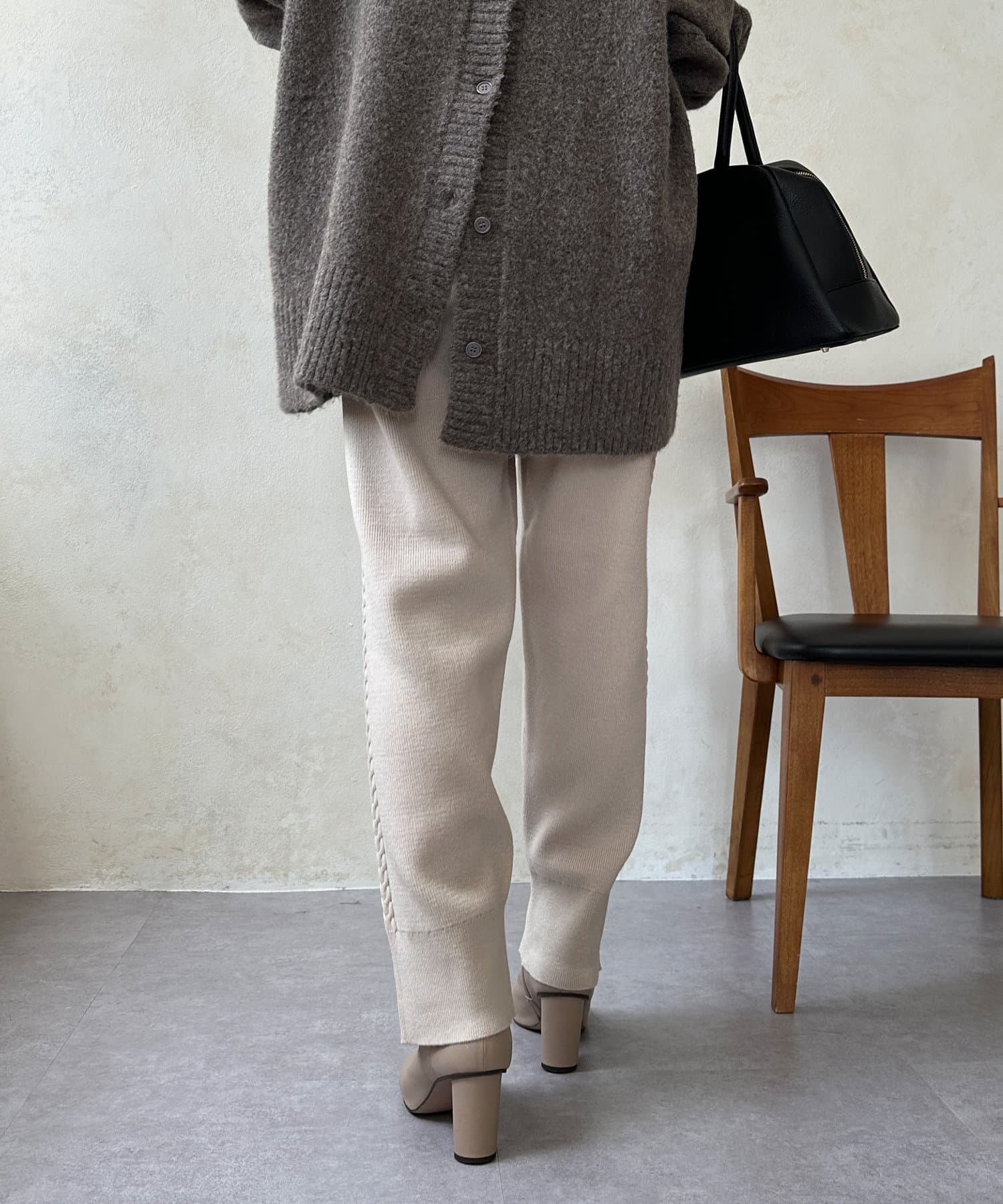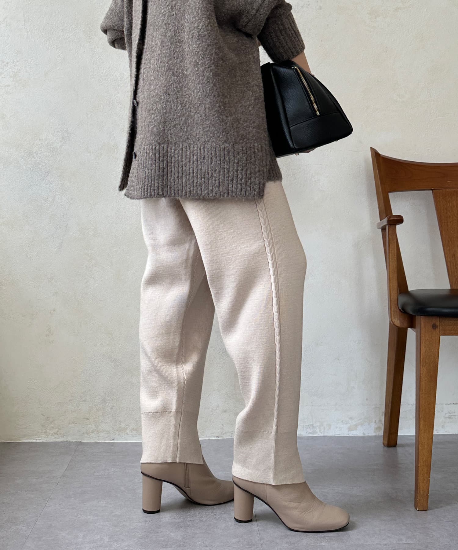 シンプルながらニット素材でケーブルラインを施すことにより、洗練されたデザインに!