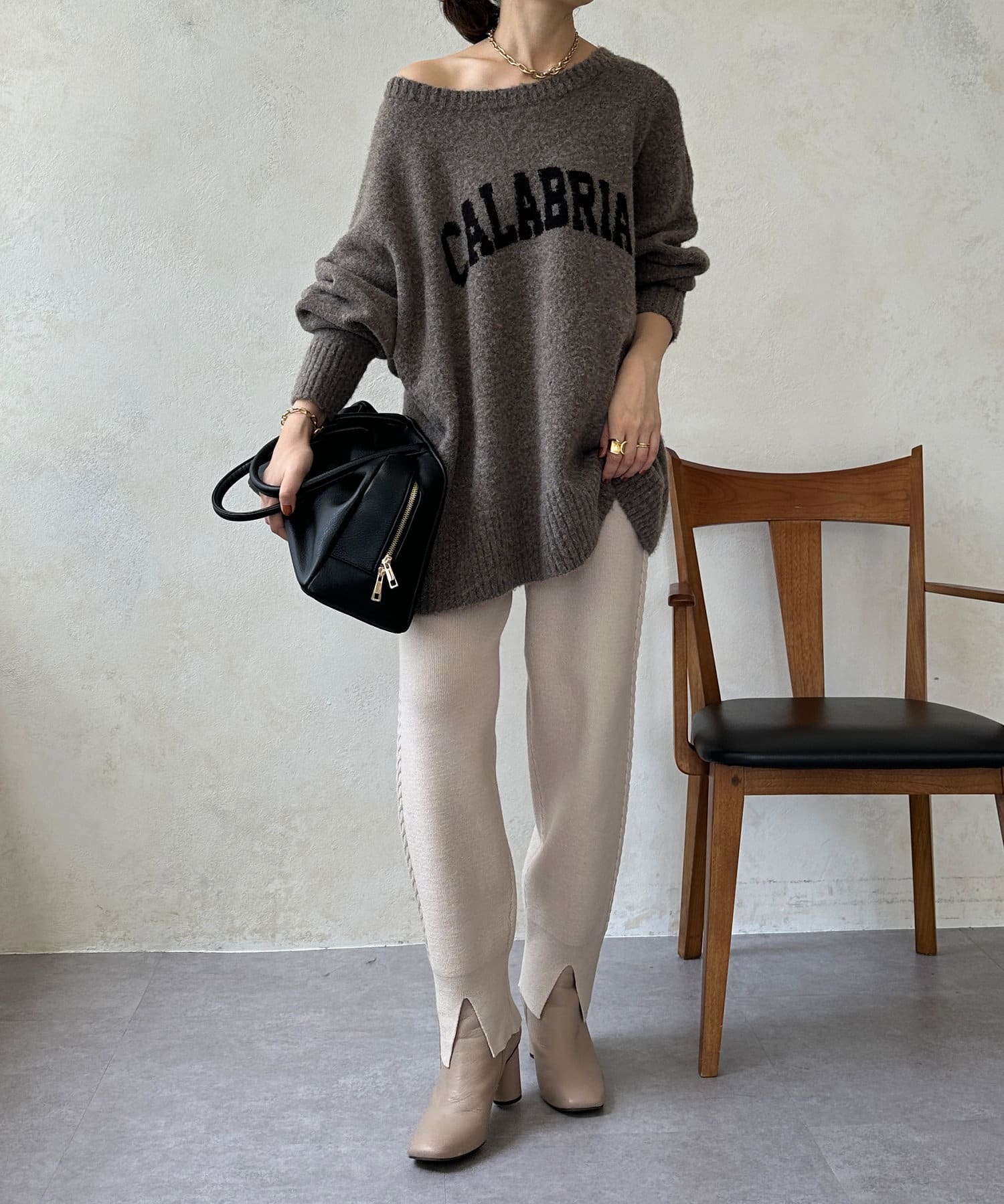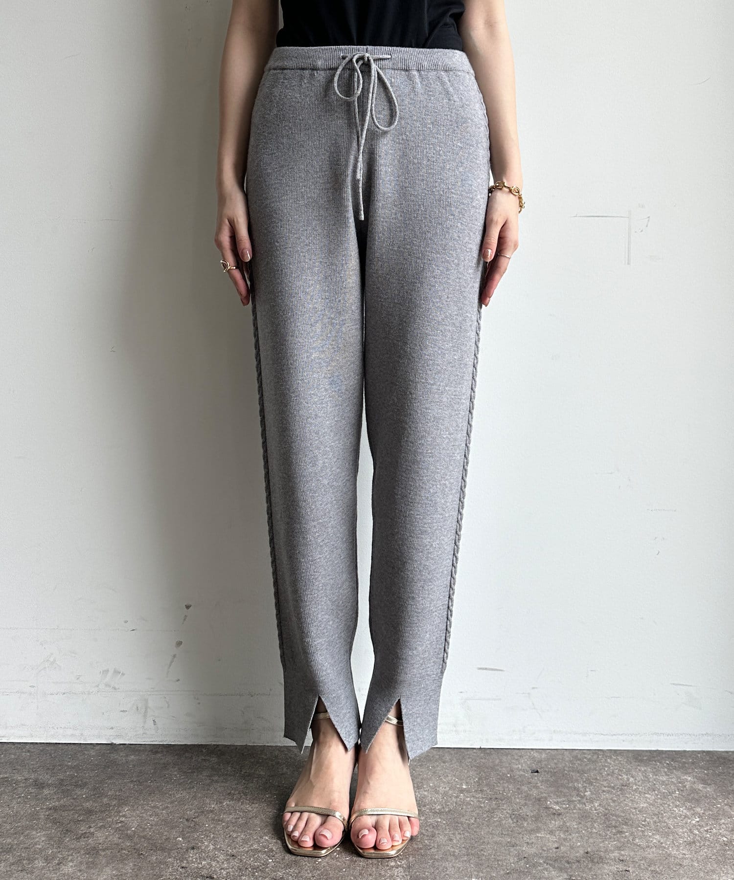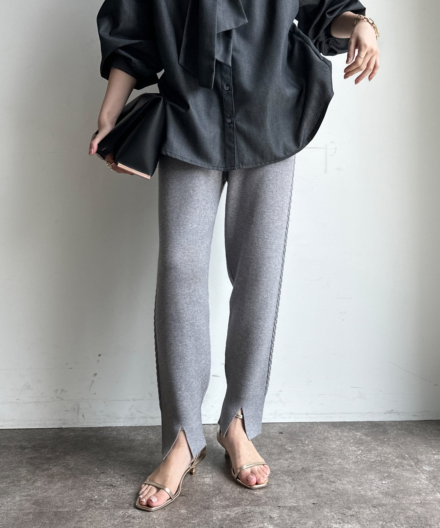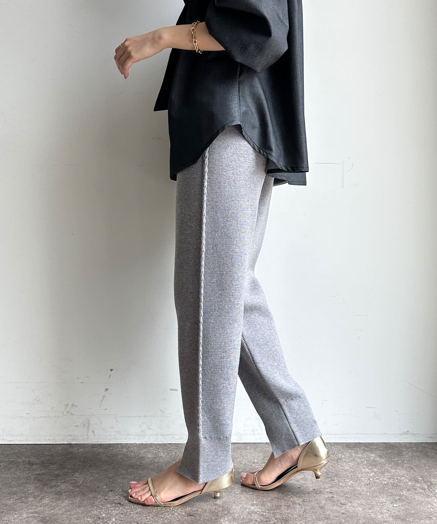 シンプルながらニット素材でケーブルラインを施すことにより、洗練されたデザインに!