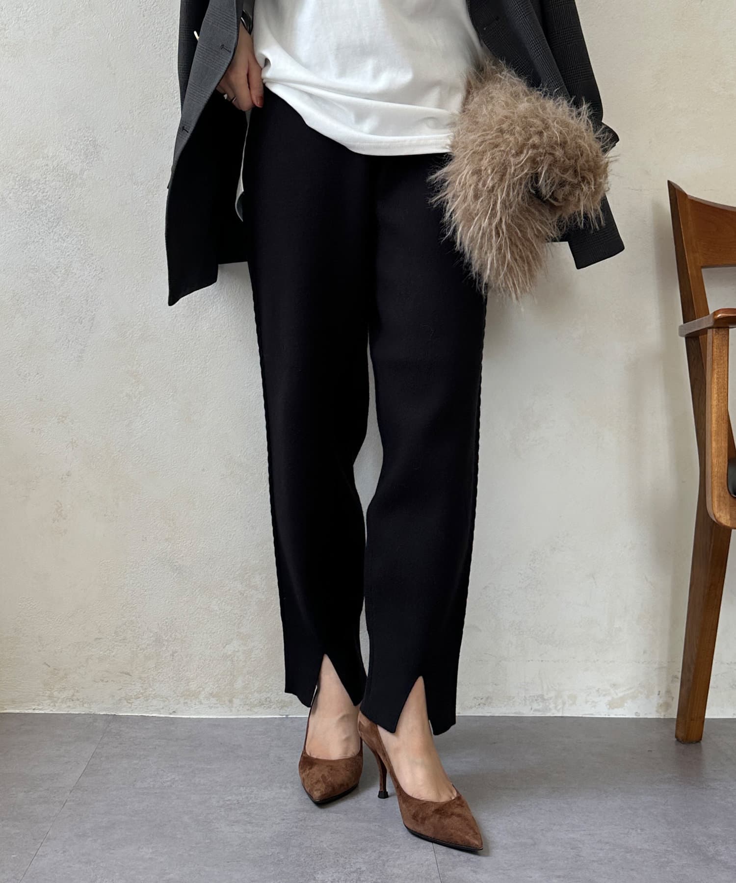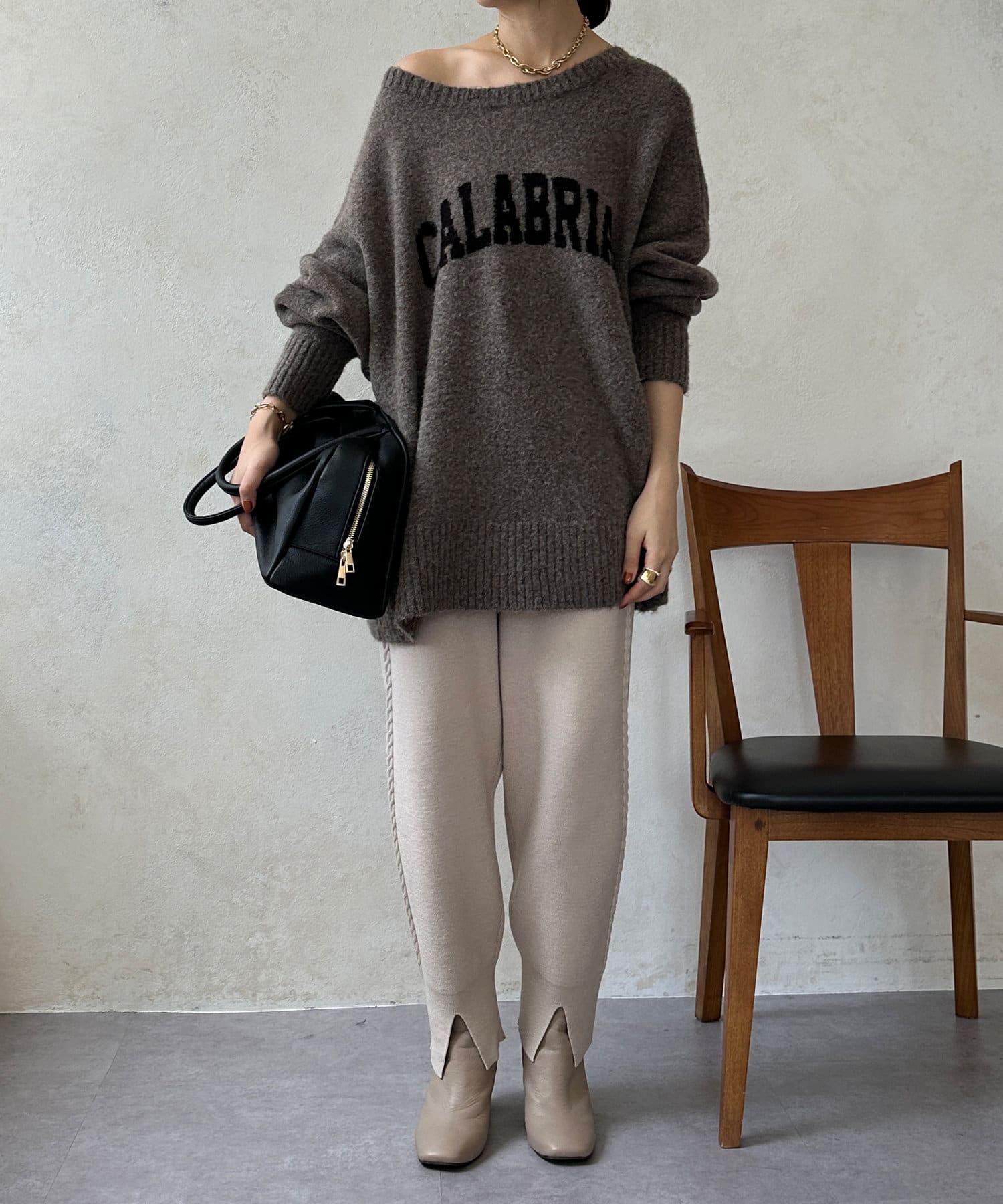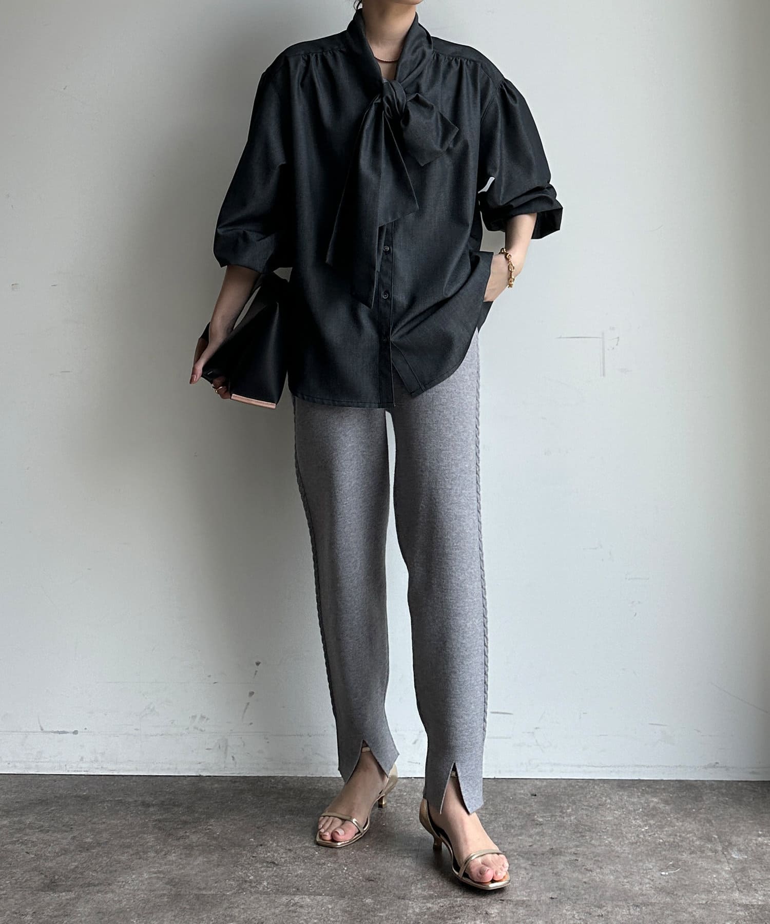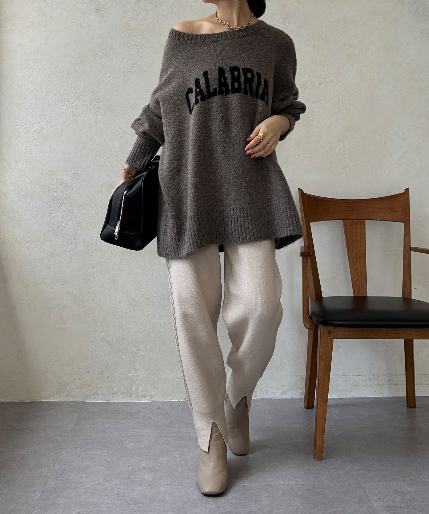 シンプルながらニット素材でケーブルラインを施すことにより、洗練されたデザインに!