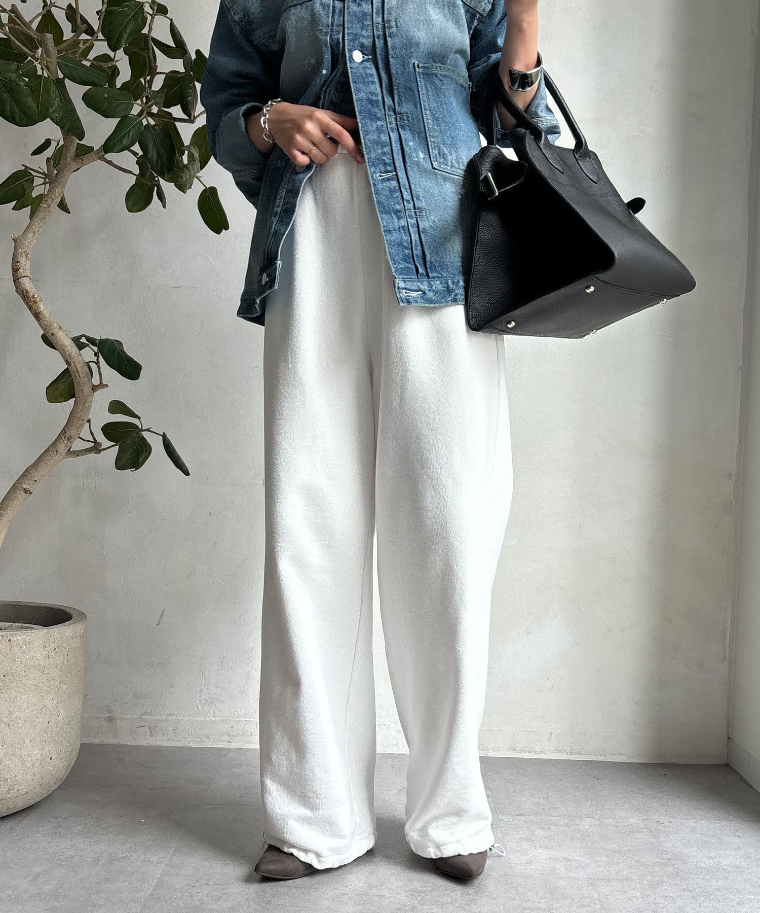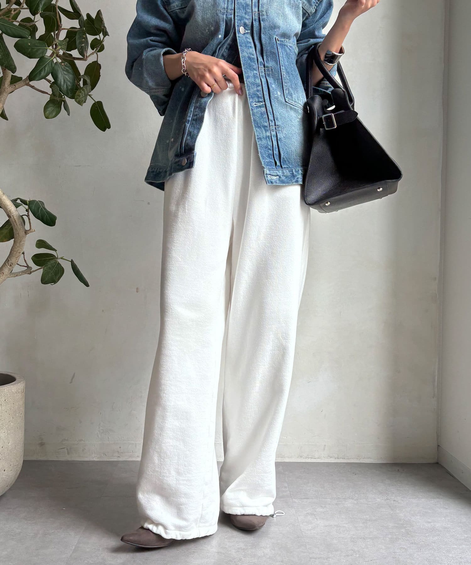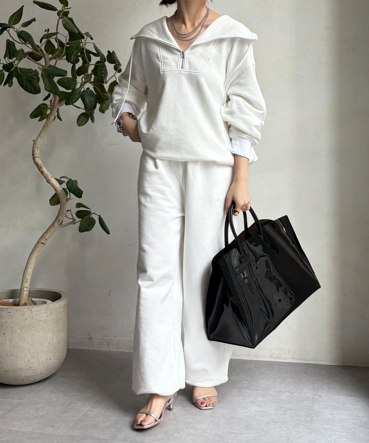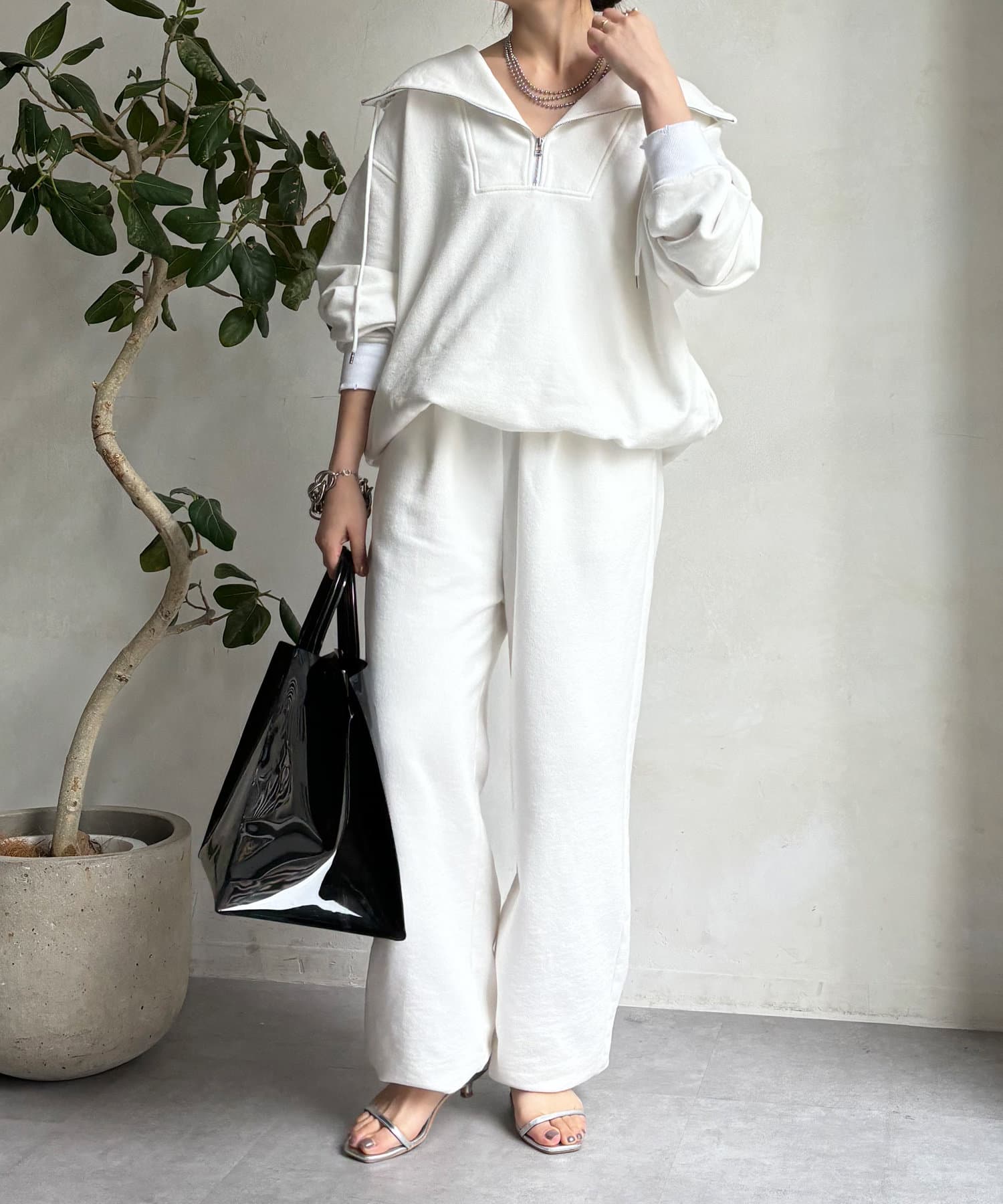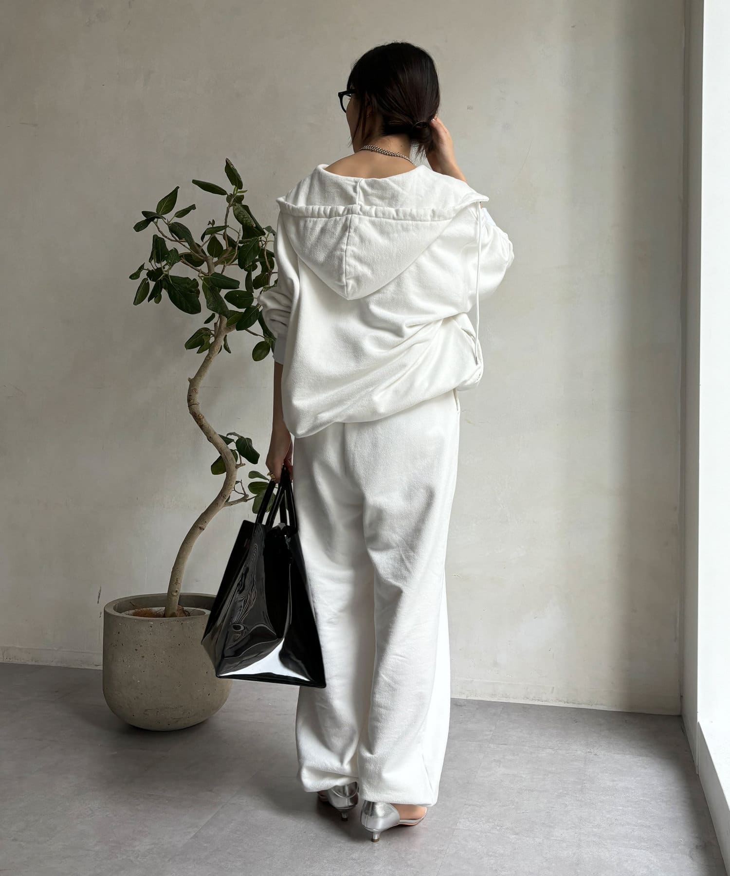 ・同素材スウェットパンツとセットで着るのもかわいい!
