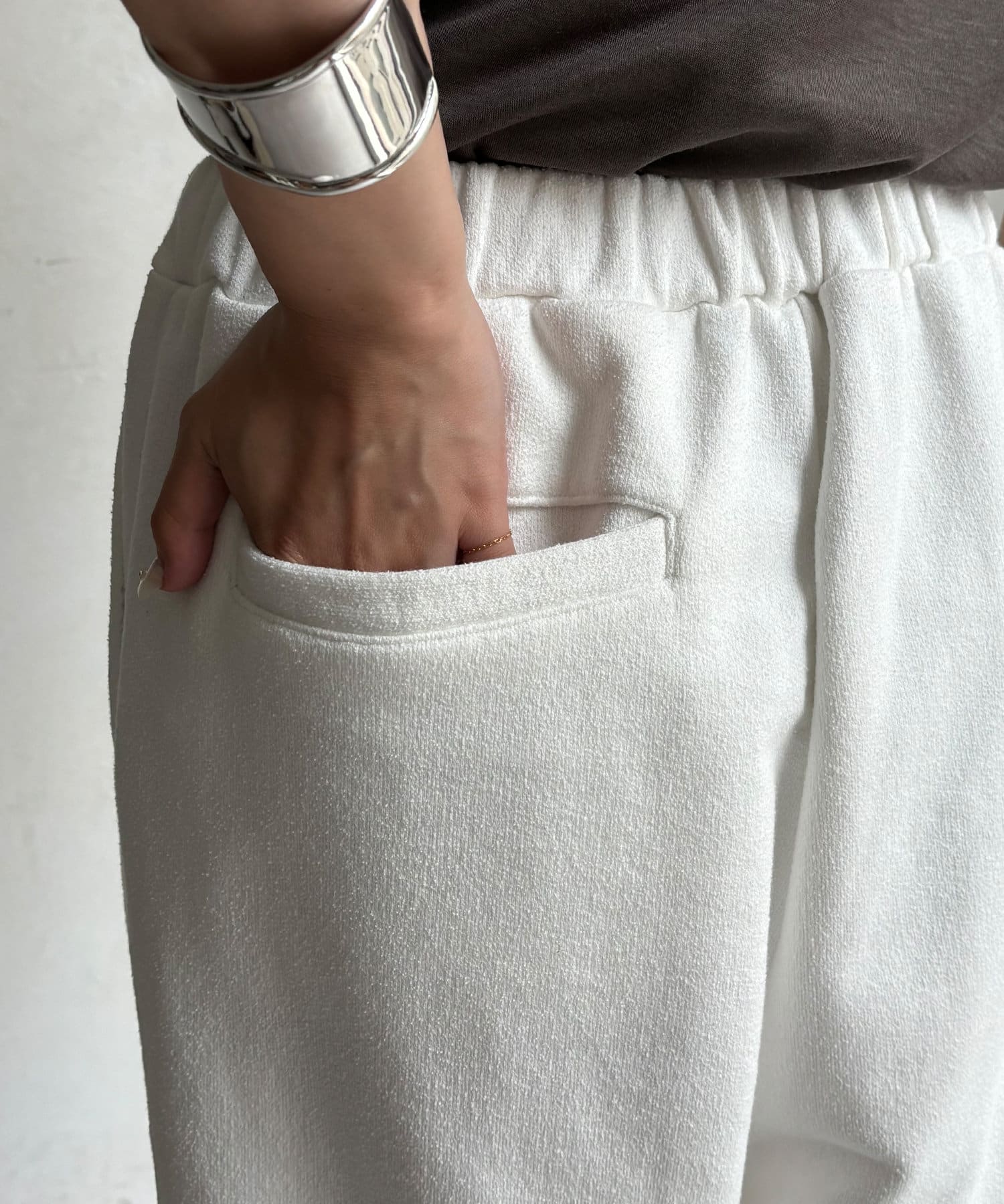程よく厚みがあり、表面感のある裏毛の素材を使用したスウェットパンツ。