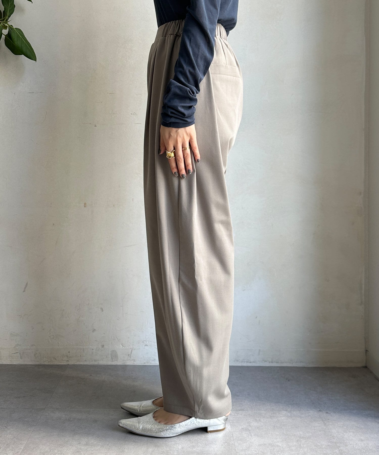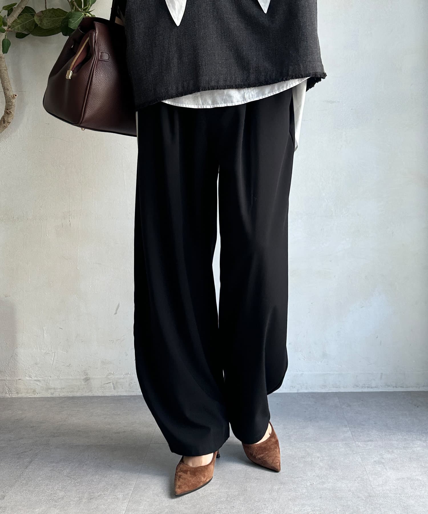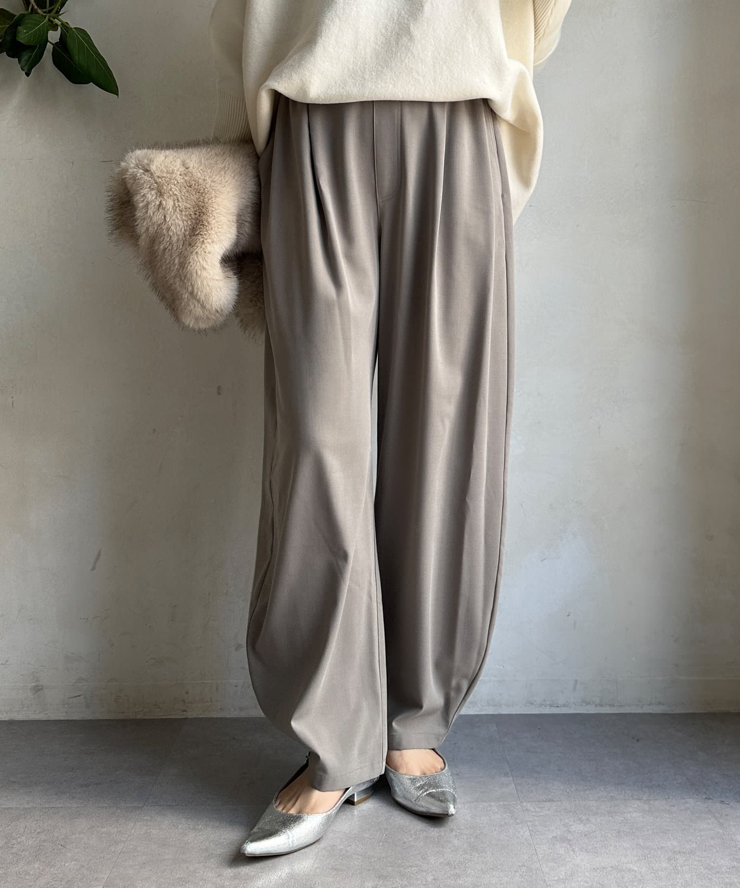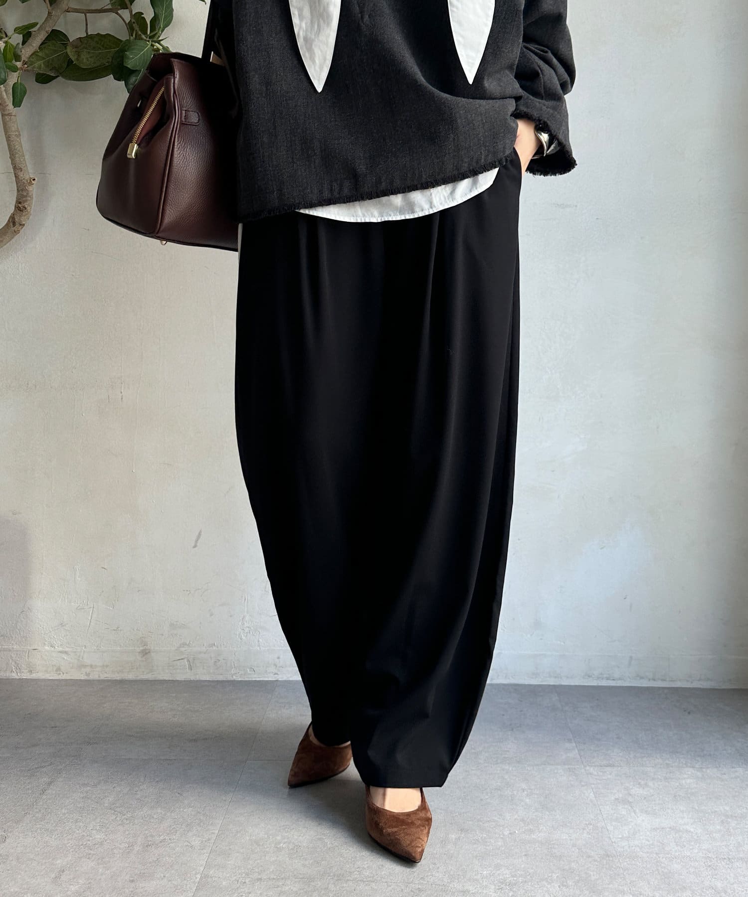 ヒップラインや脚のラインなど気になる部分をカバーしながら、裾にかけて細身になるシルエットに。