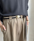 ラインのカジュアルさとガチャベルトの上品が魅力。