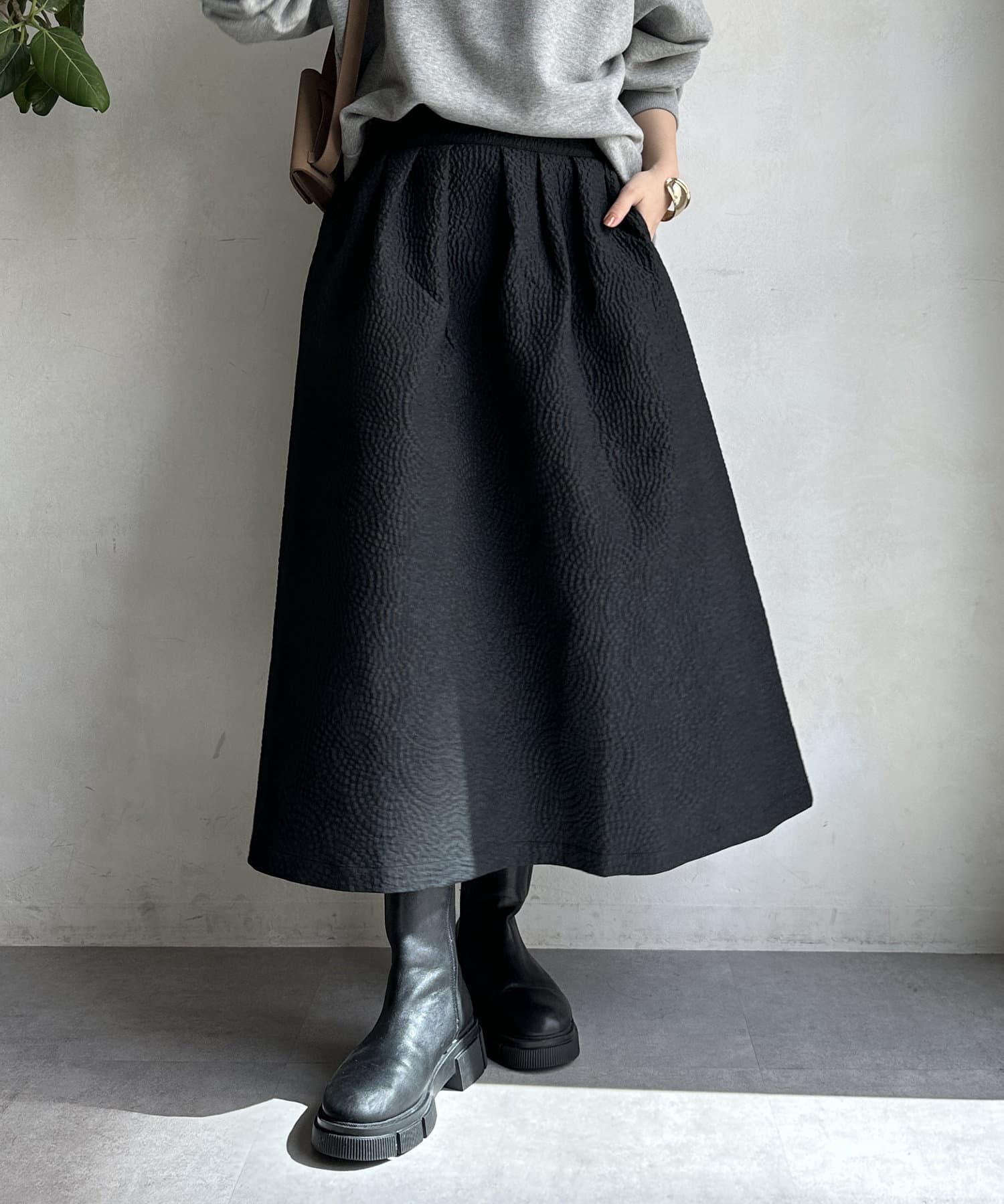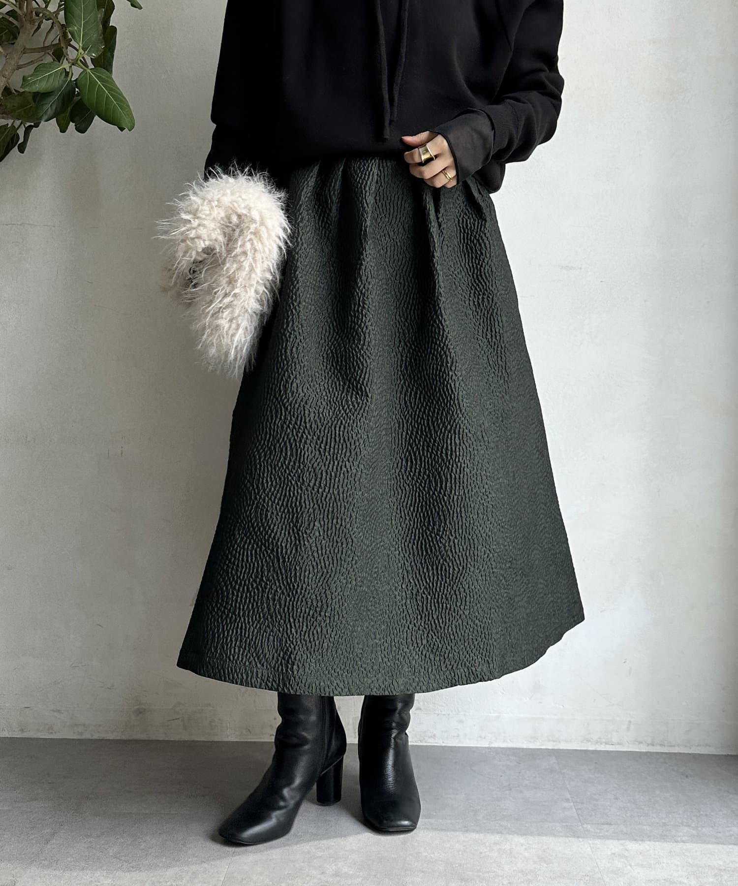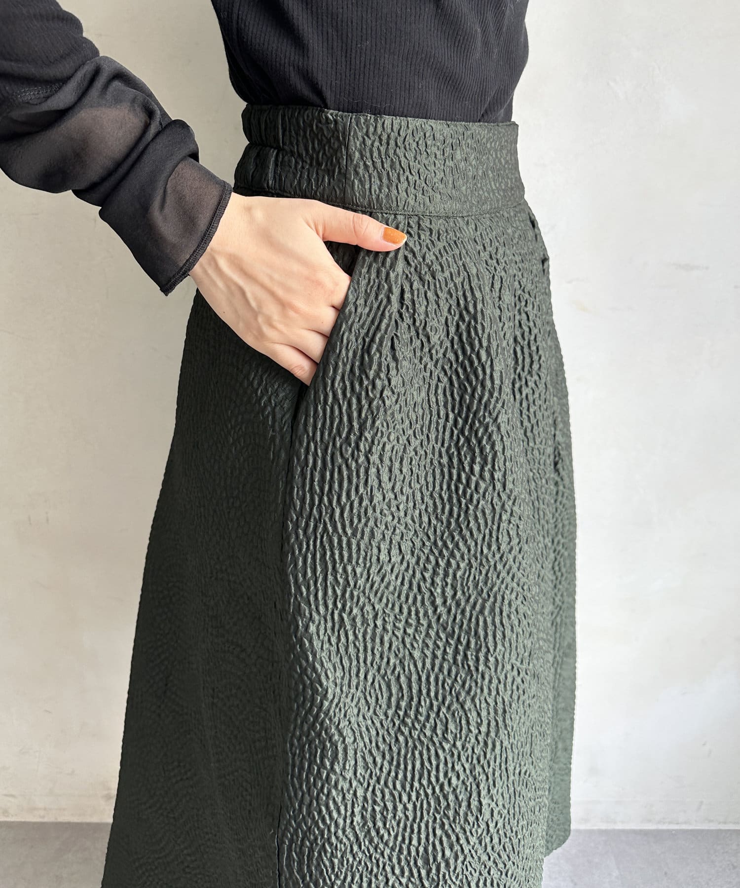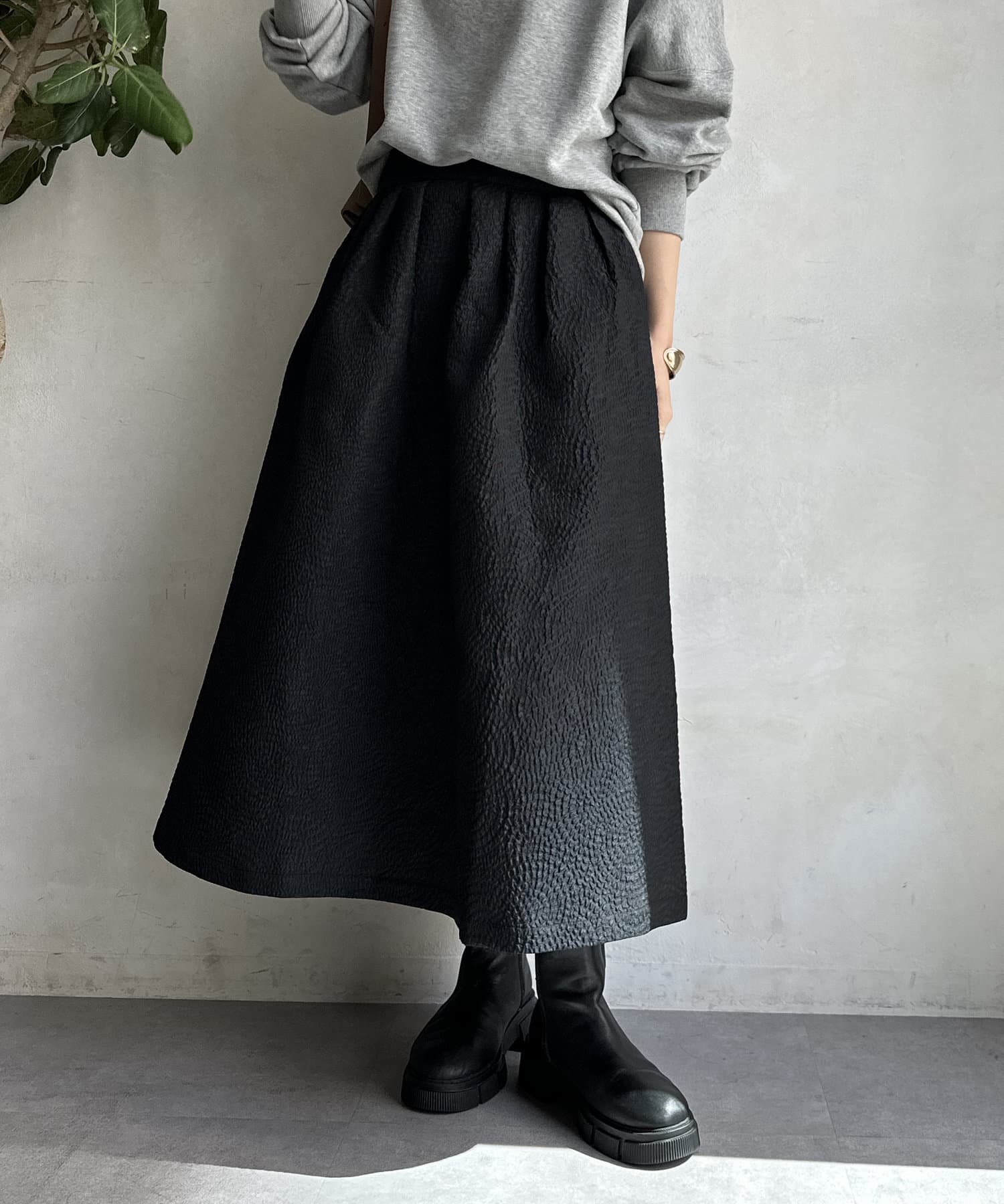 トレンドの凸凹感があるフクレジャガードの素材を使用したスカート。