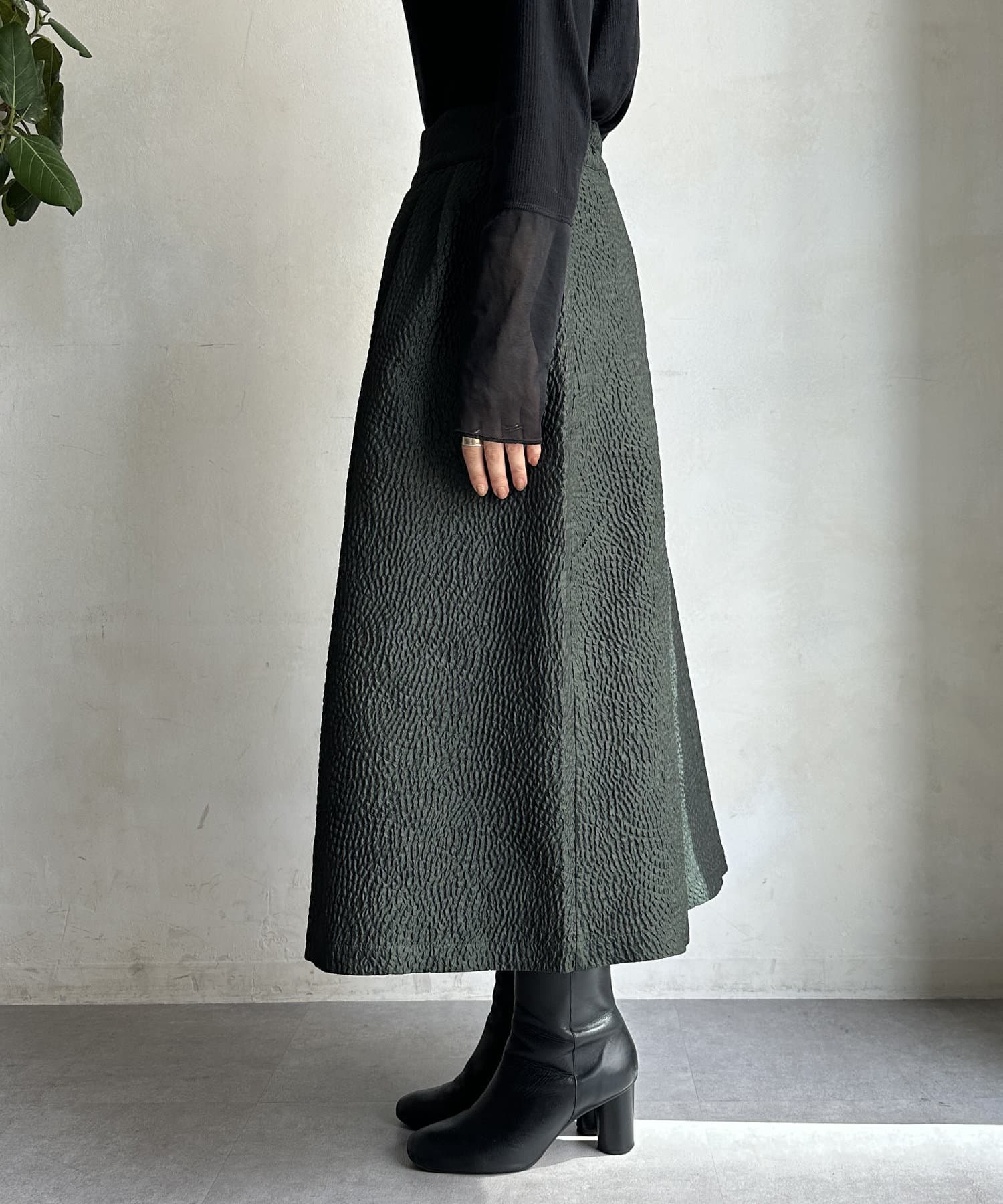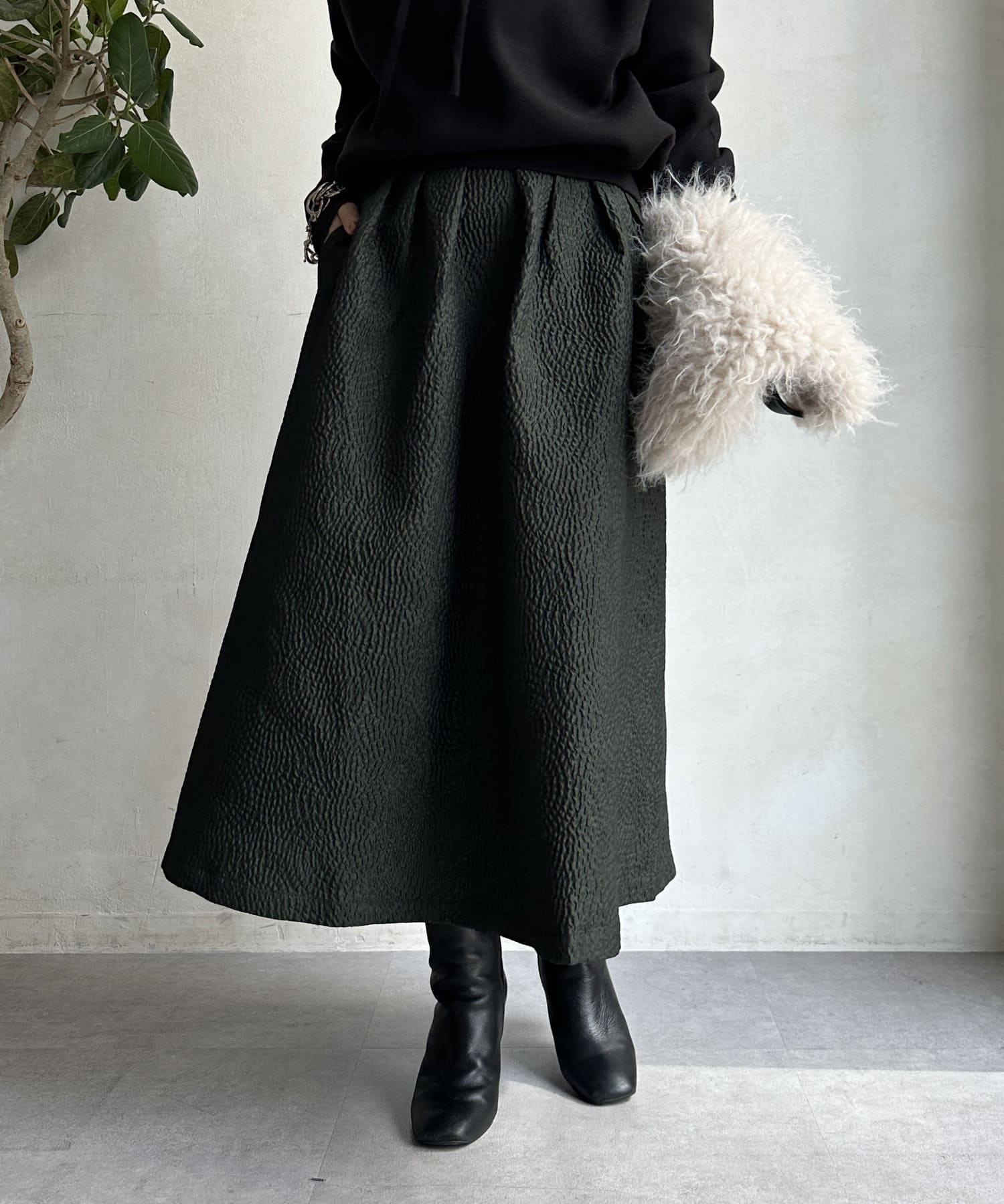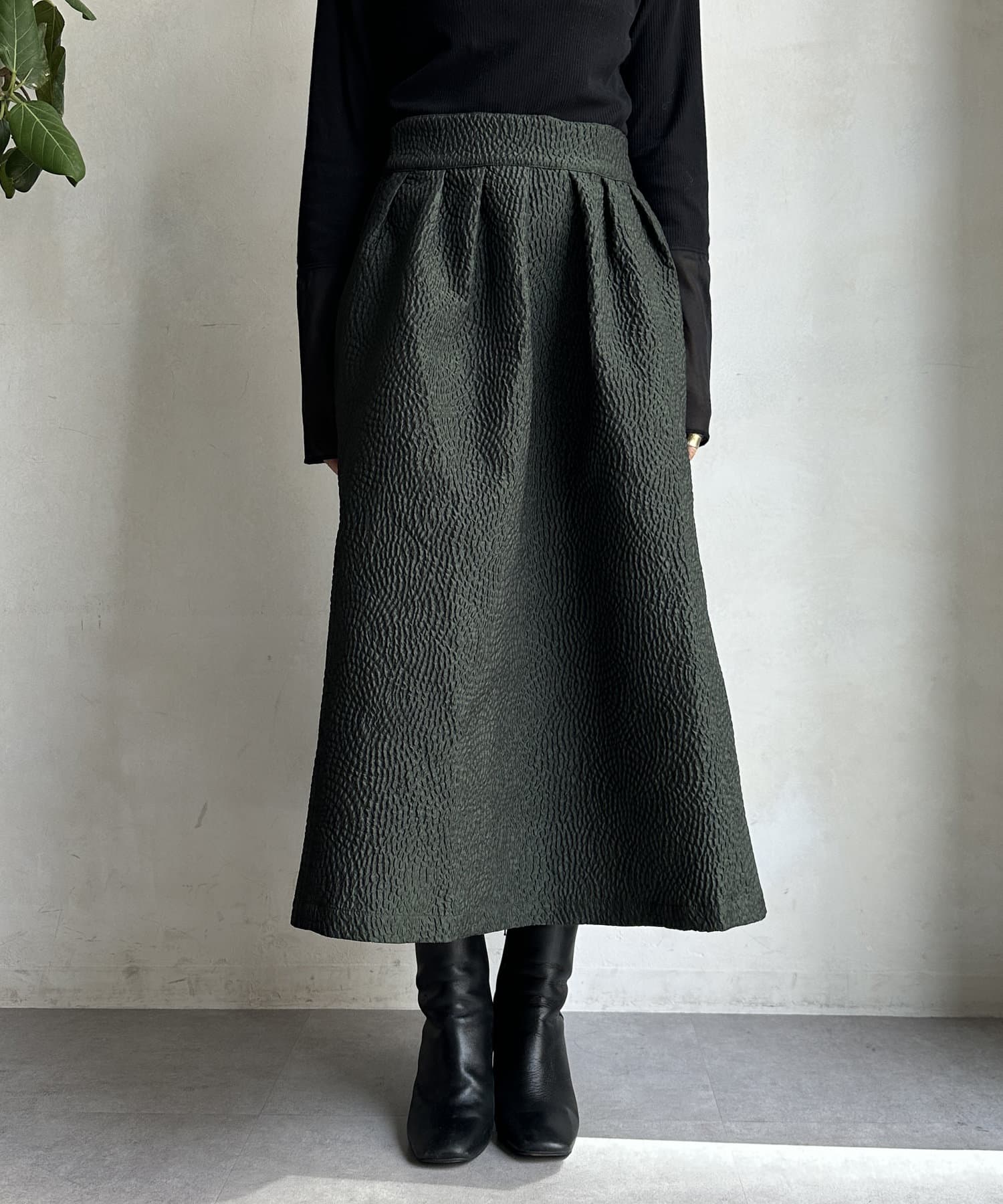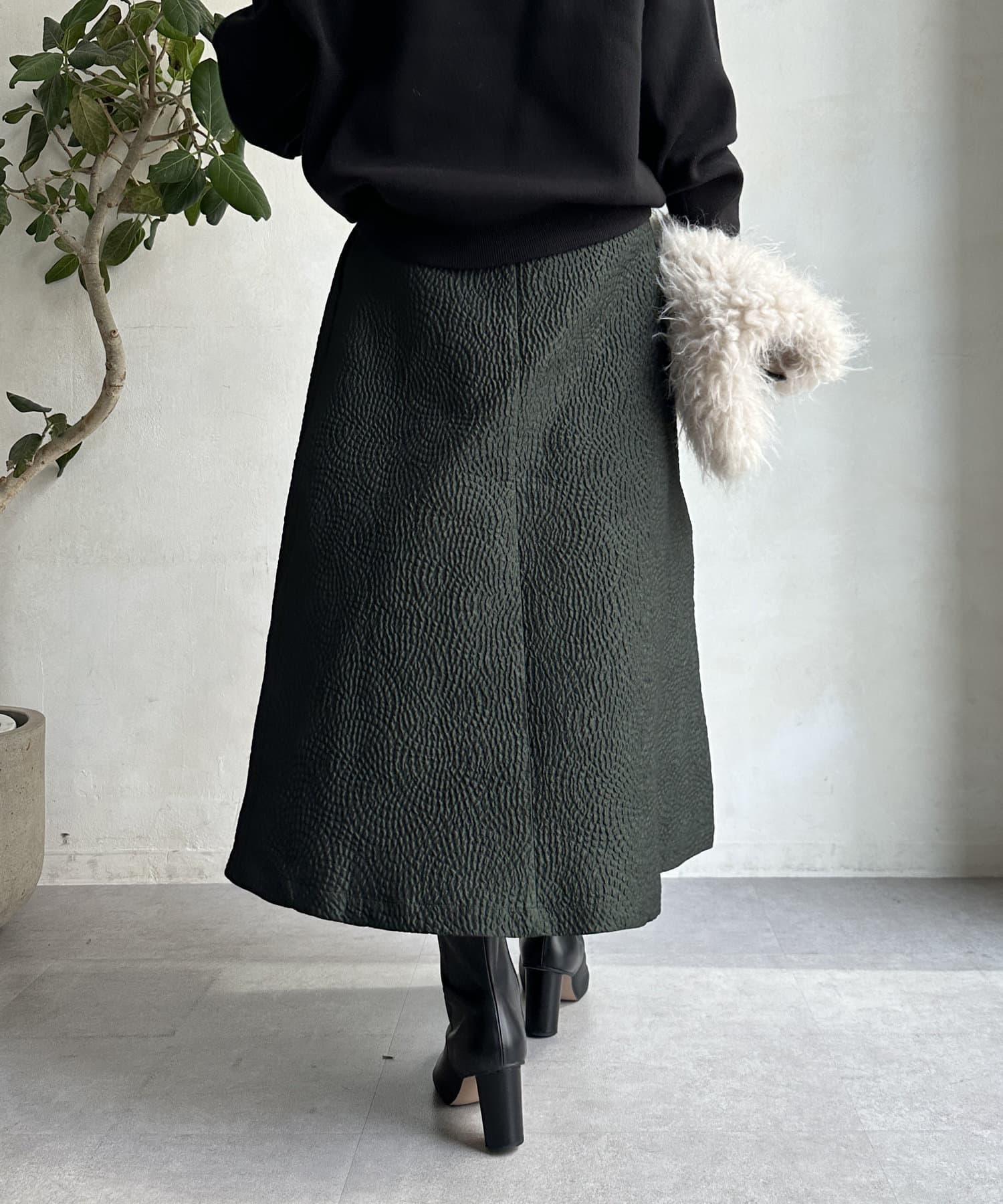 トレンドの凸凹感があるフクレジャガードの素材を使用したスカート。