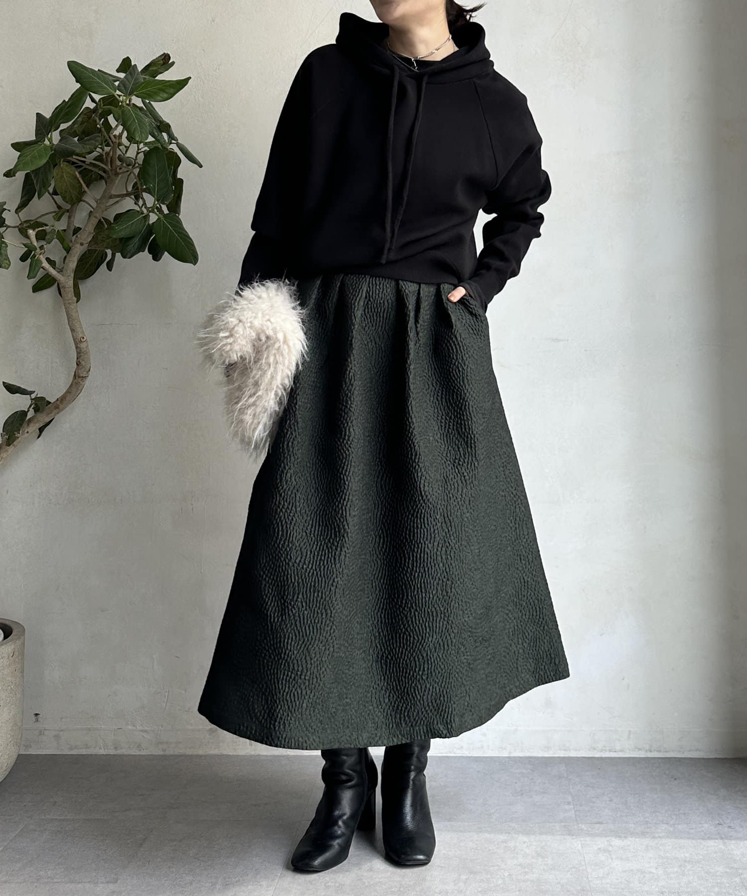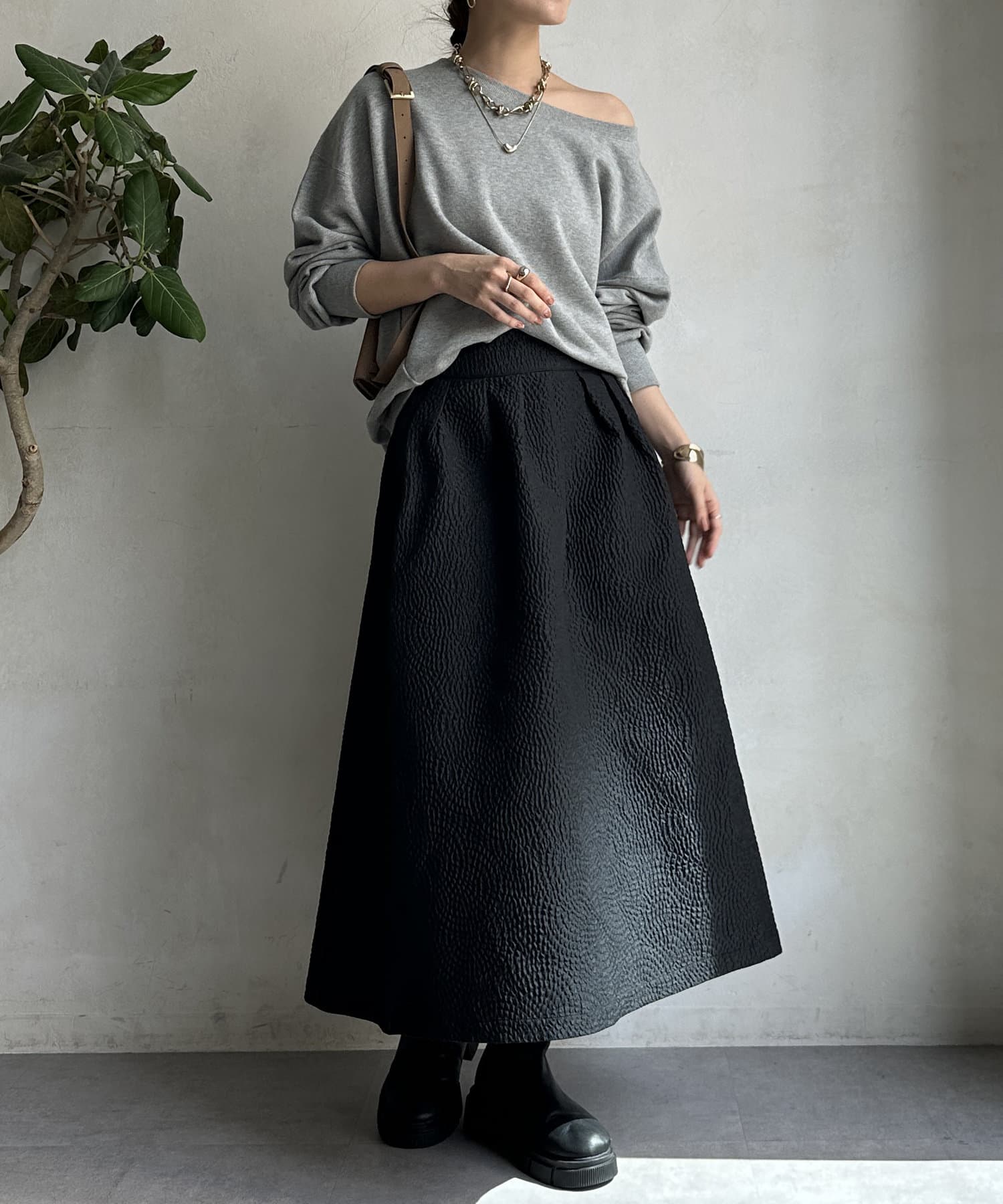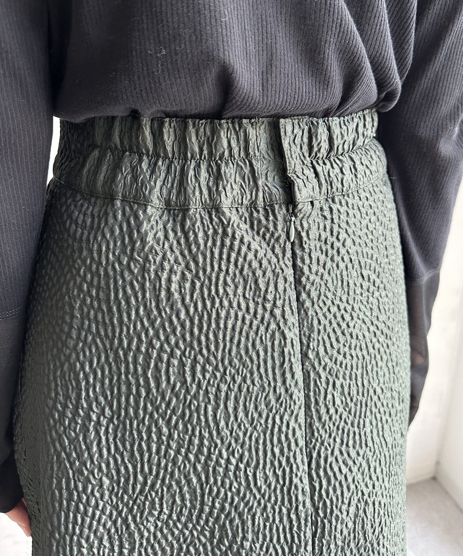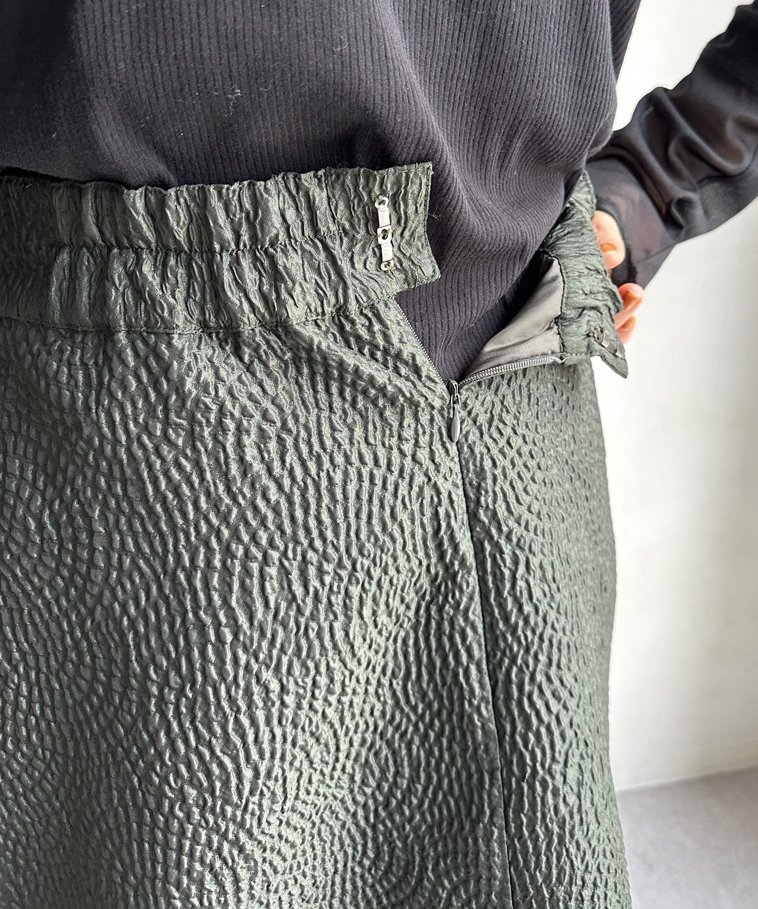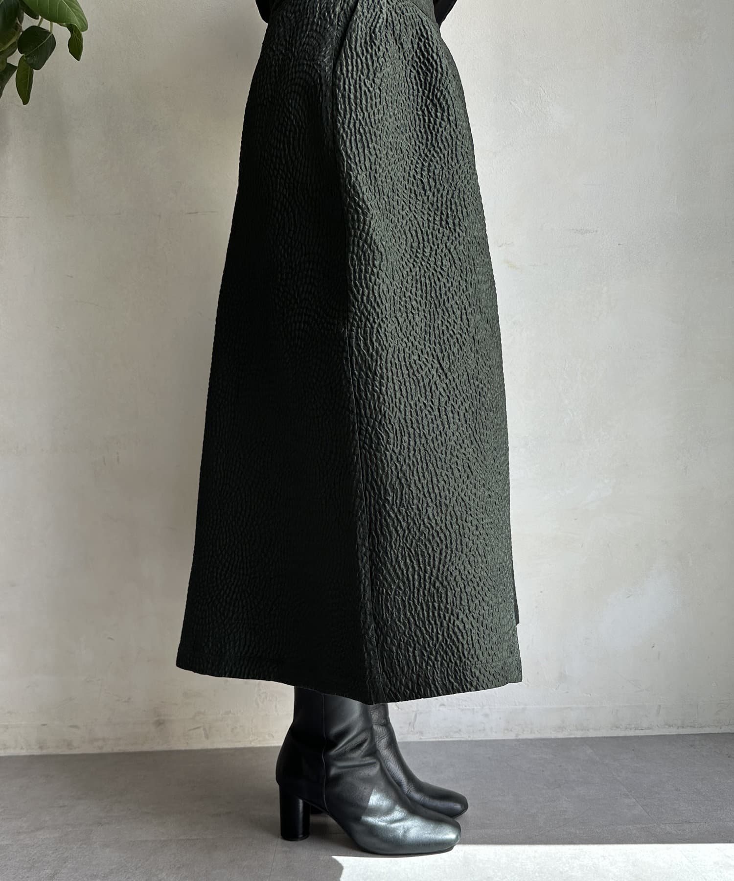 トレンドの凸凹感があるフクレジャガードの素材を使用したスカート。