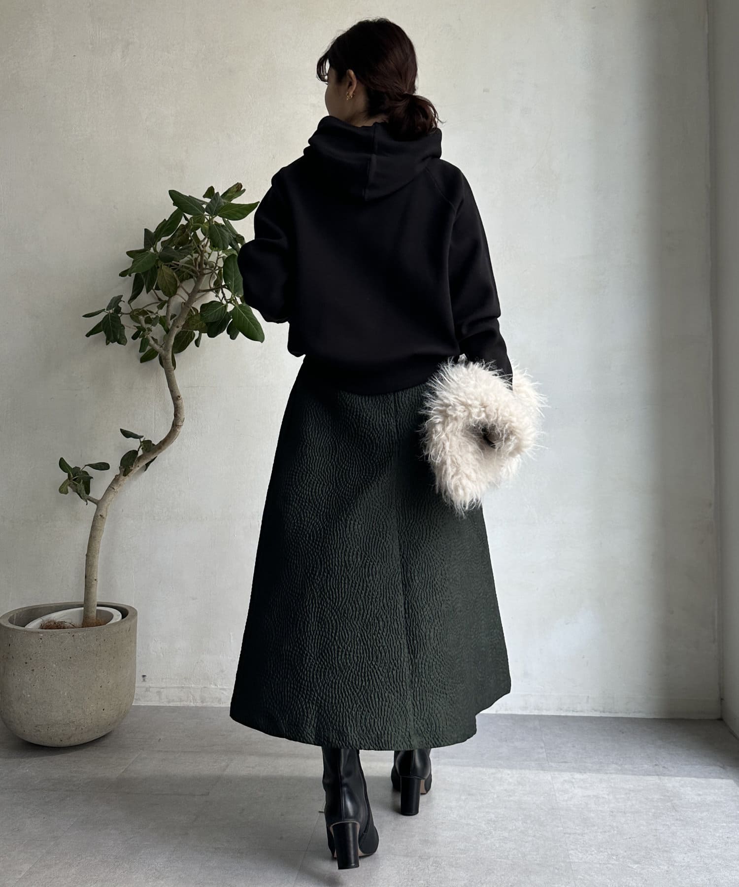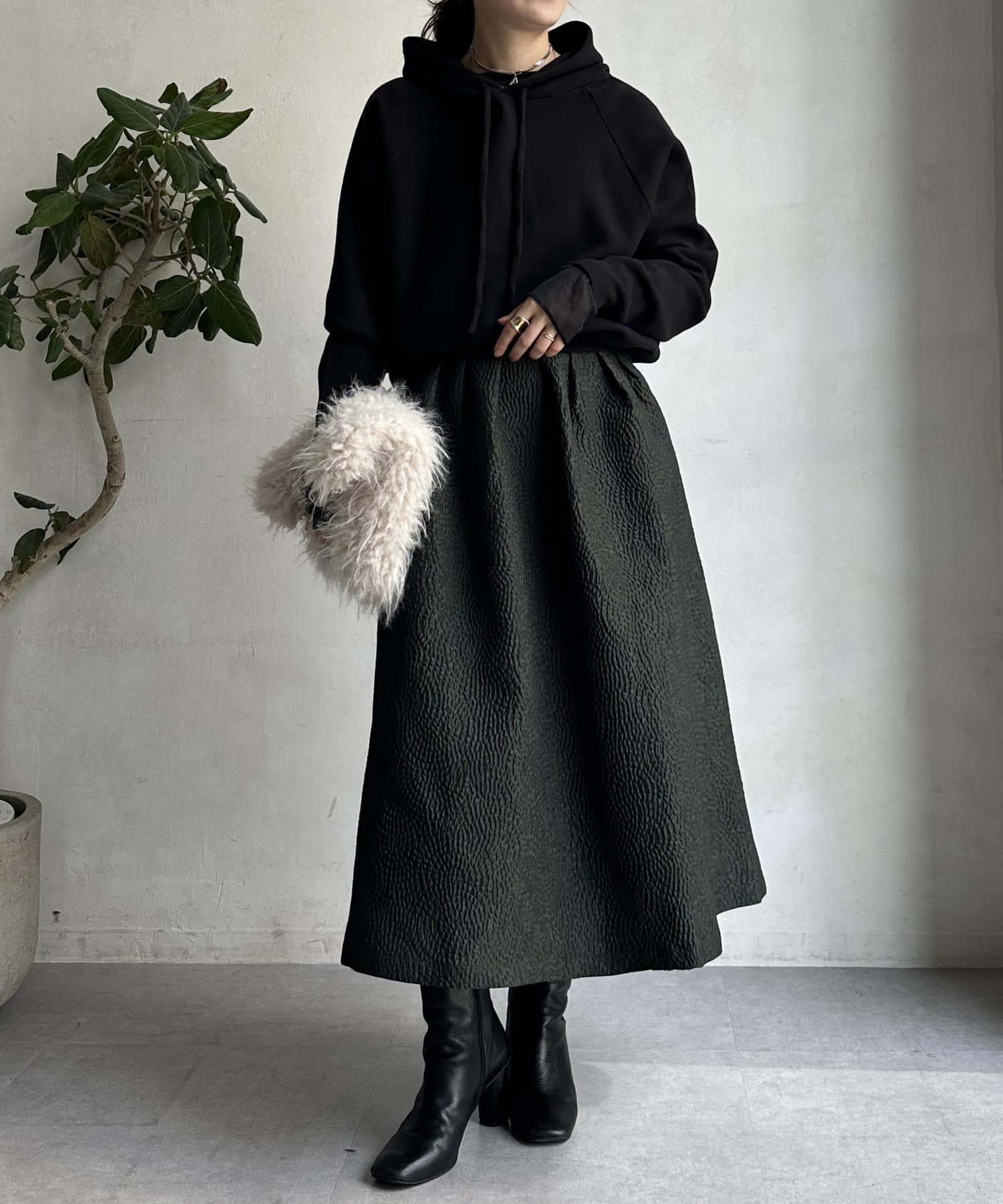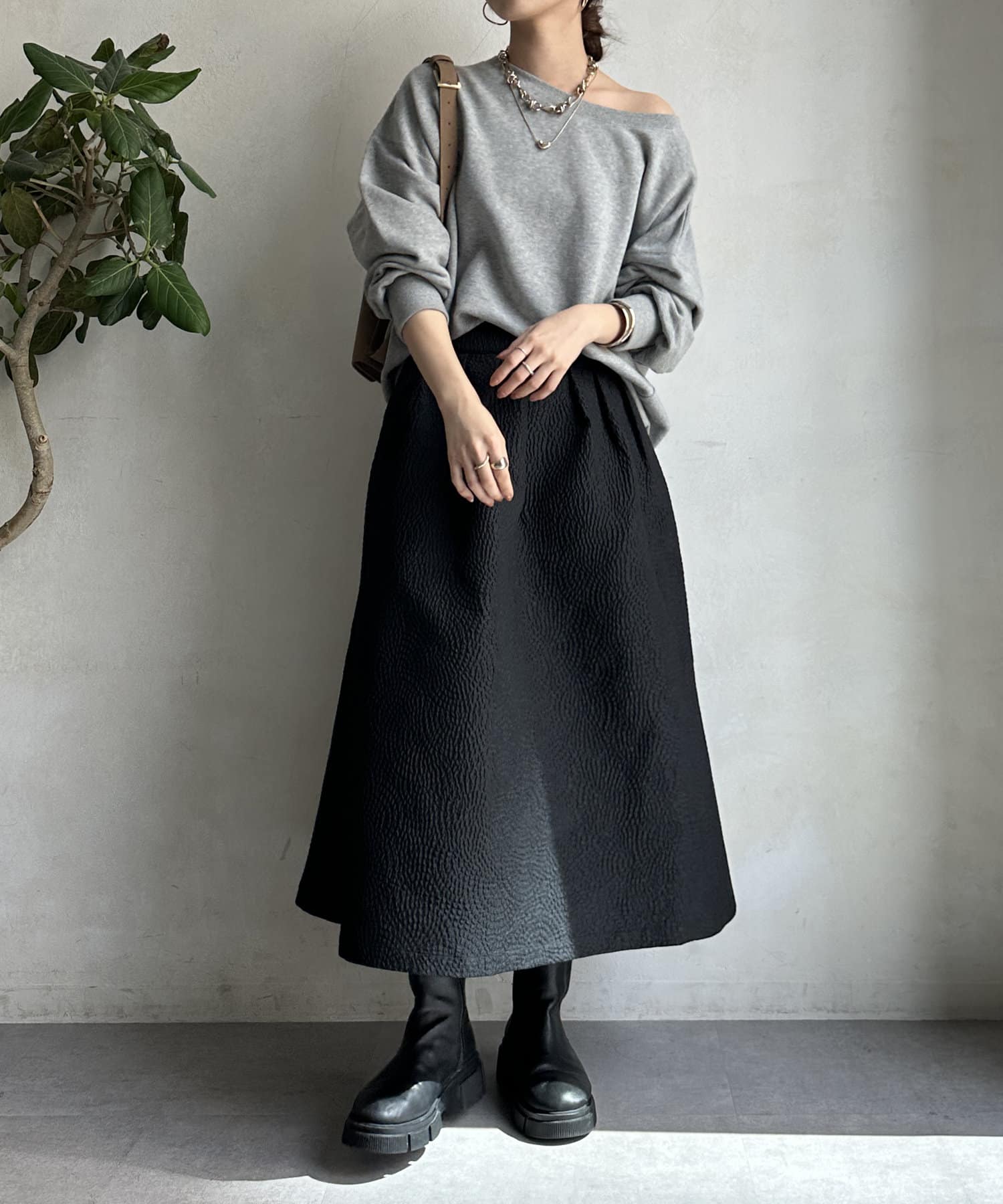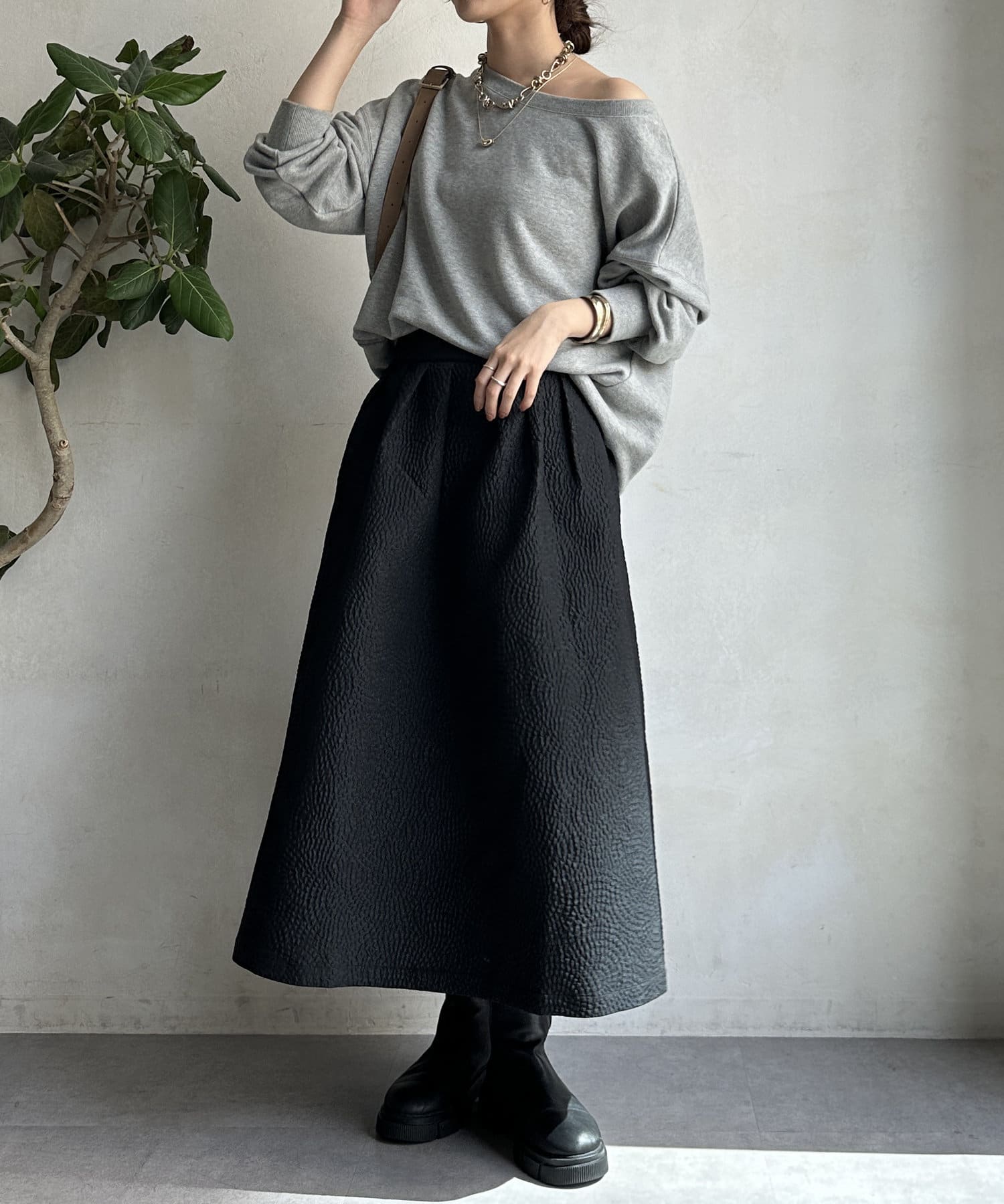 トレンドの凸凹感があるフクレジャガードの素材を使用したスカート。