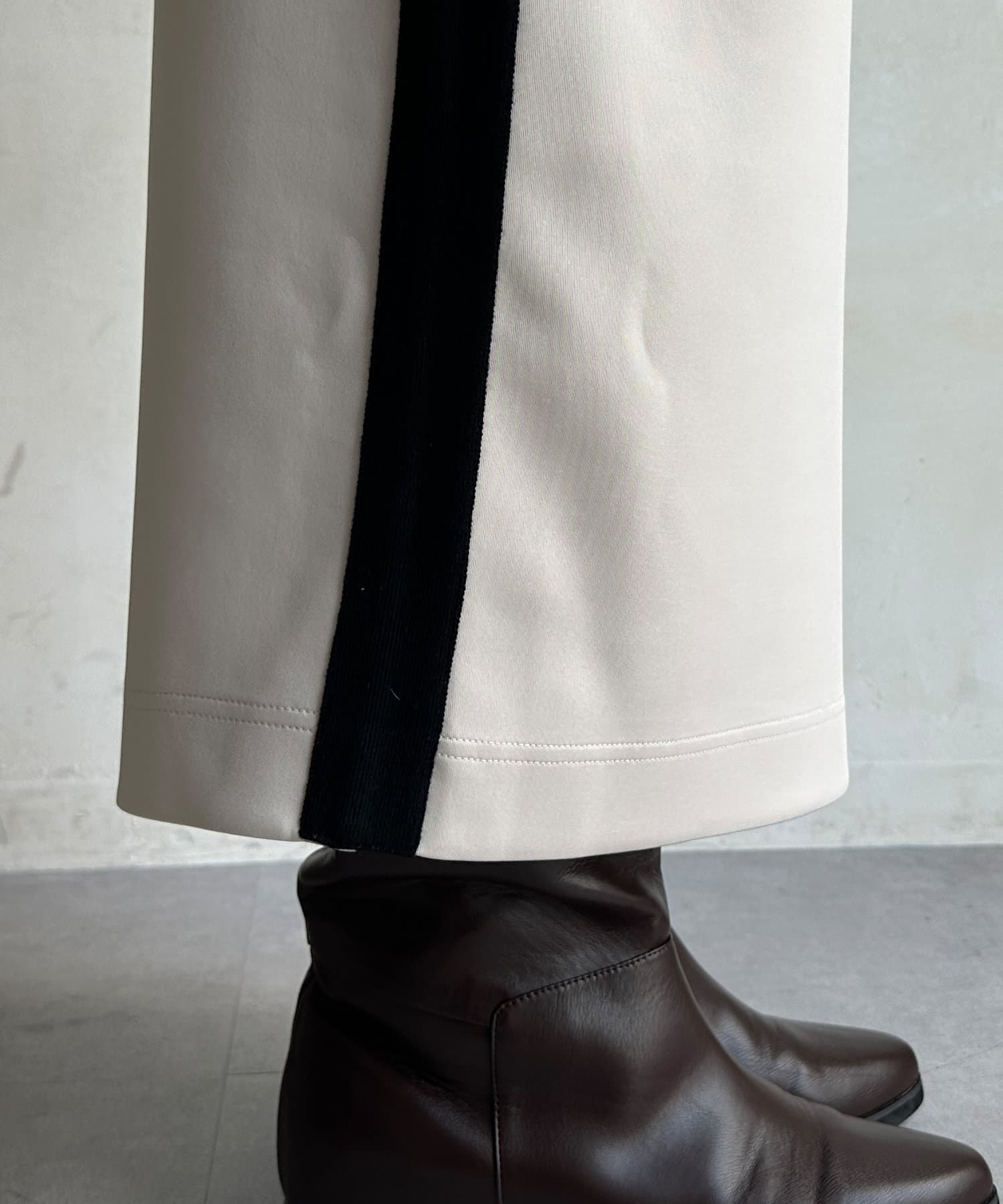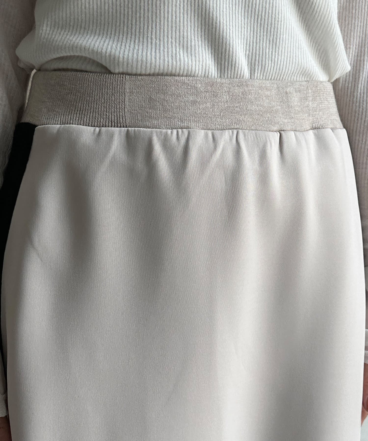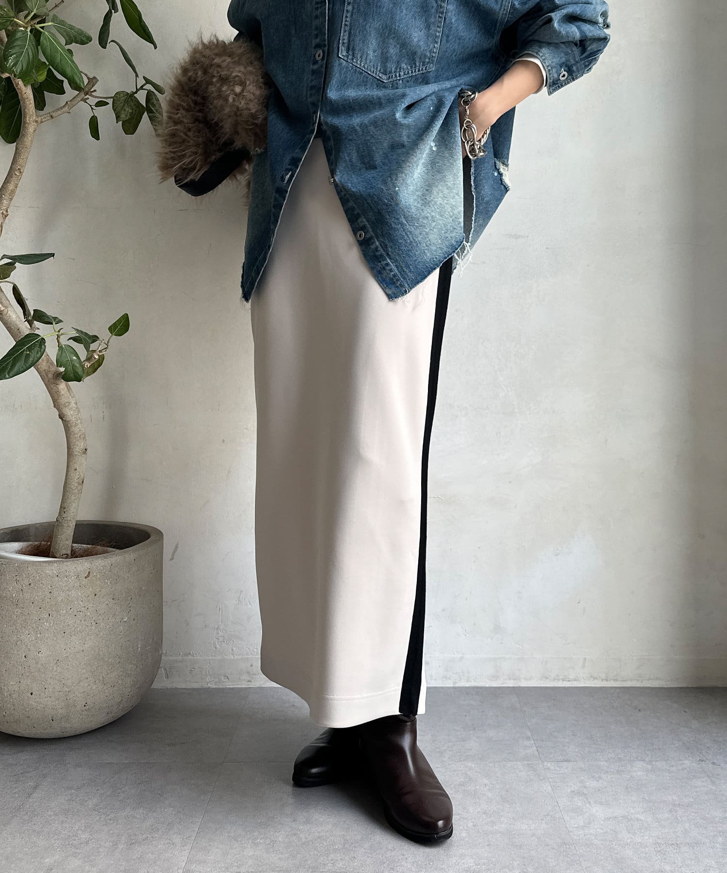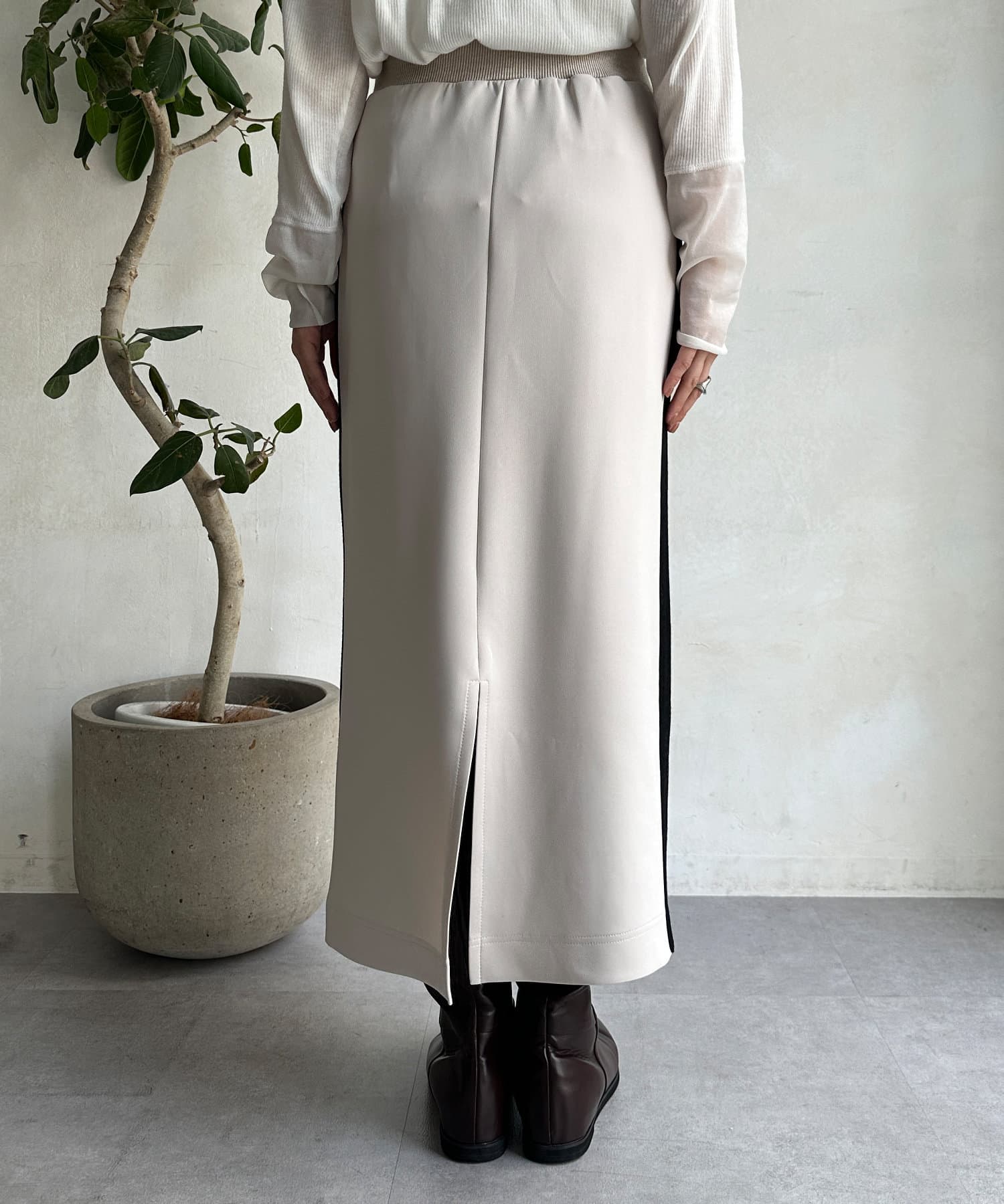 ややハリ感のある素材で仕上げたサイドラインスカート。