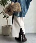 ややハリ感のある素材で仕上げたサイドラインスカート。