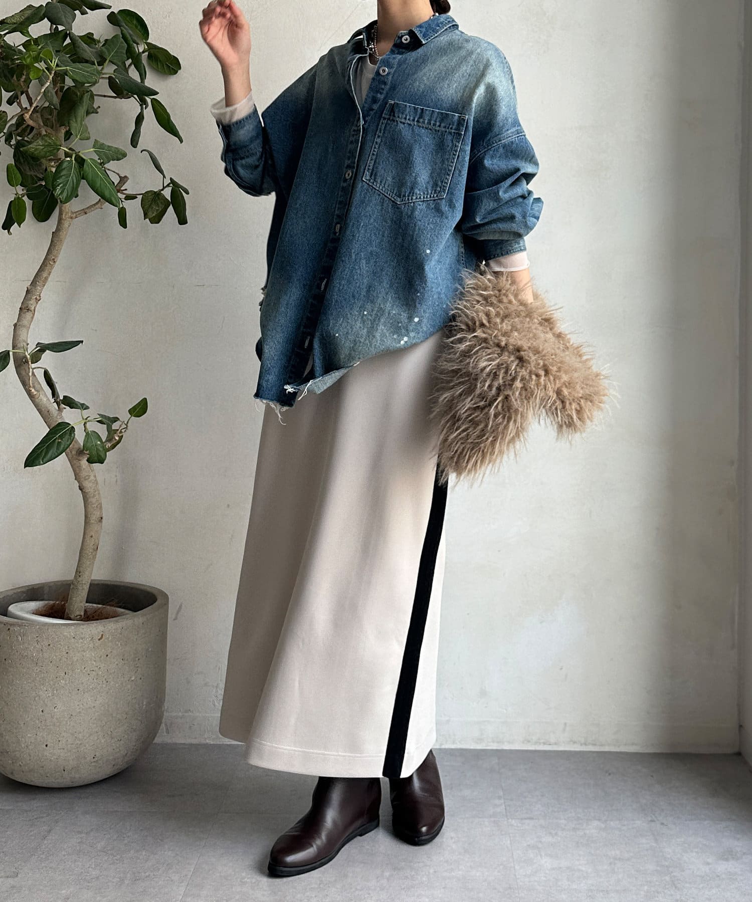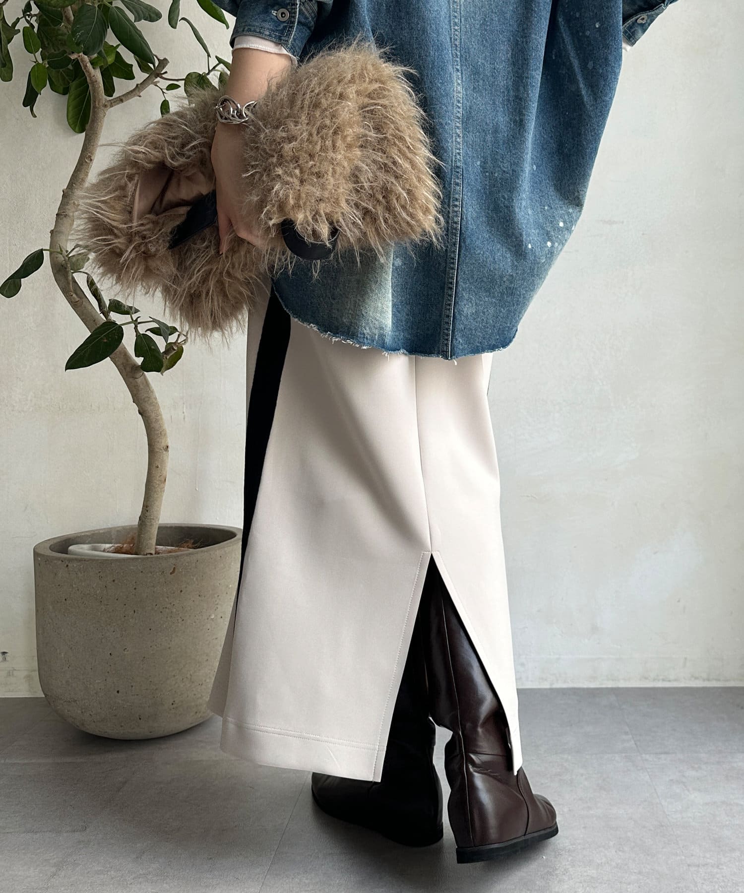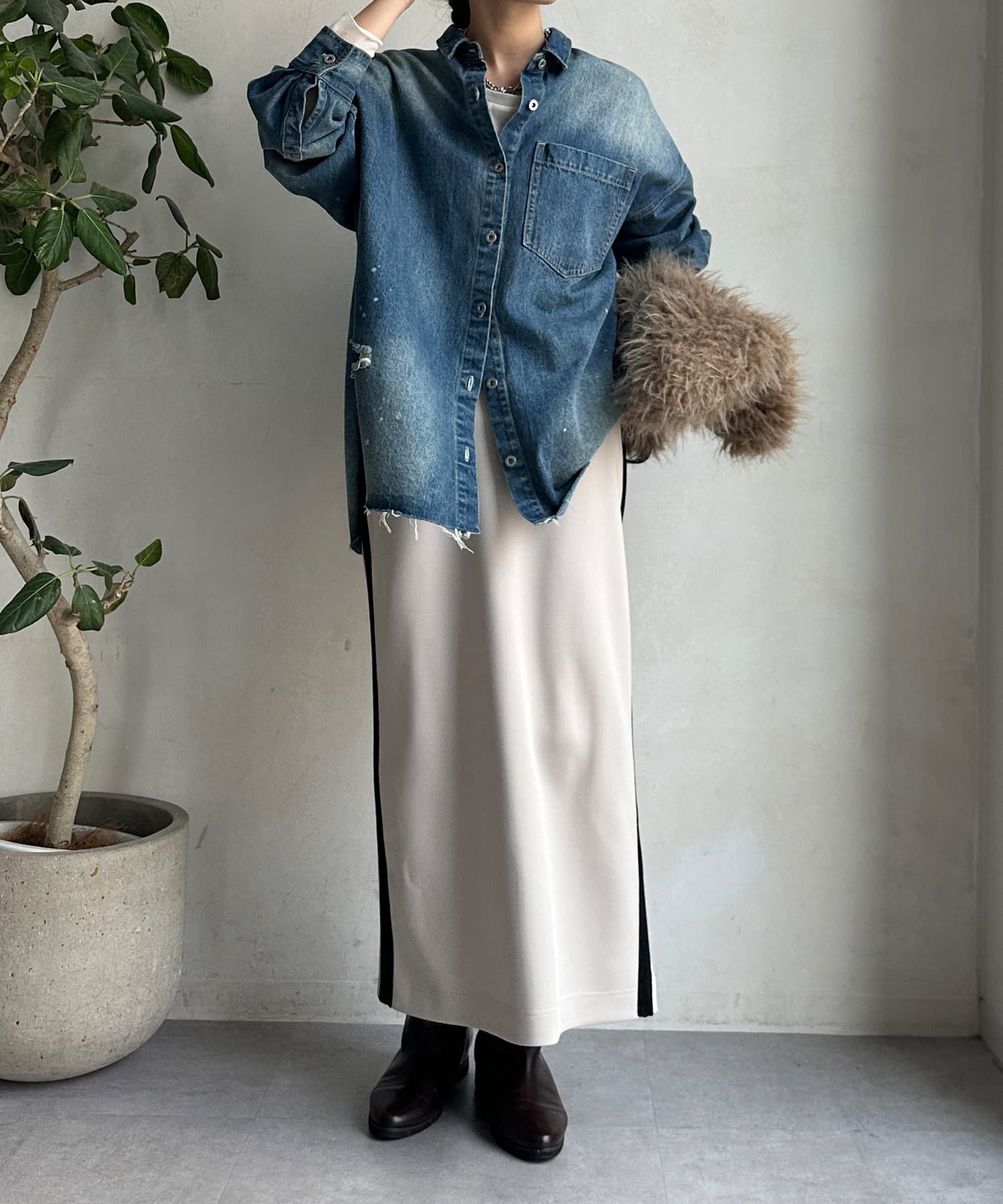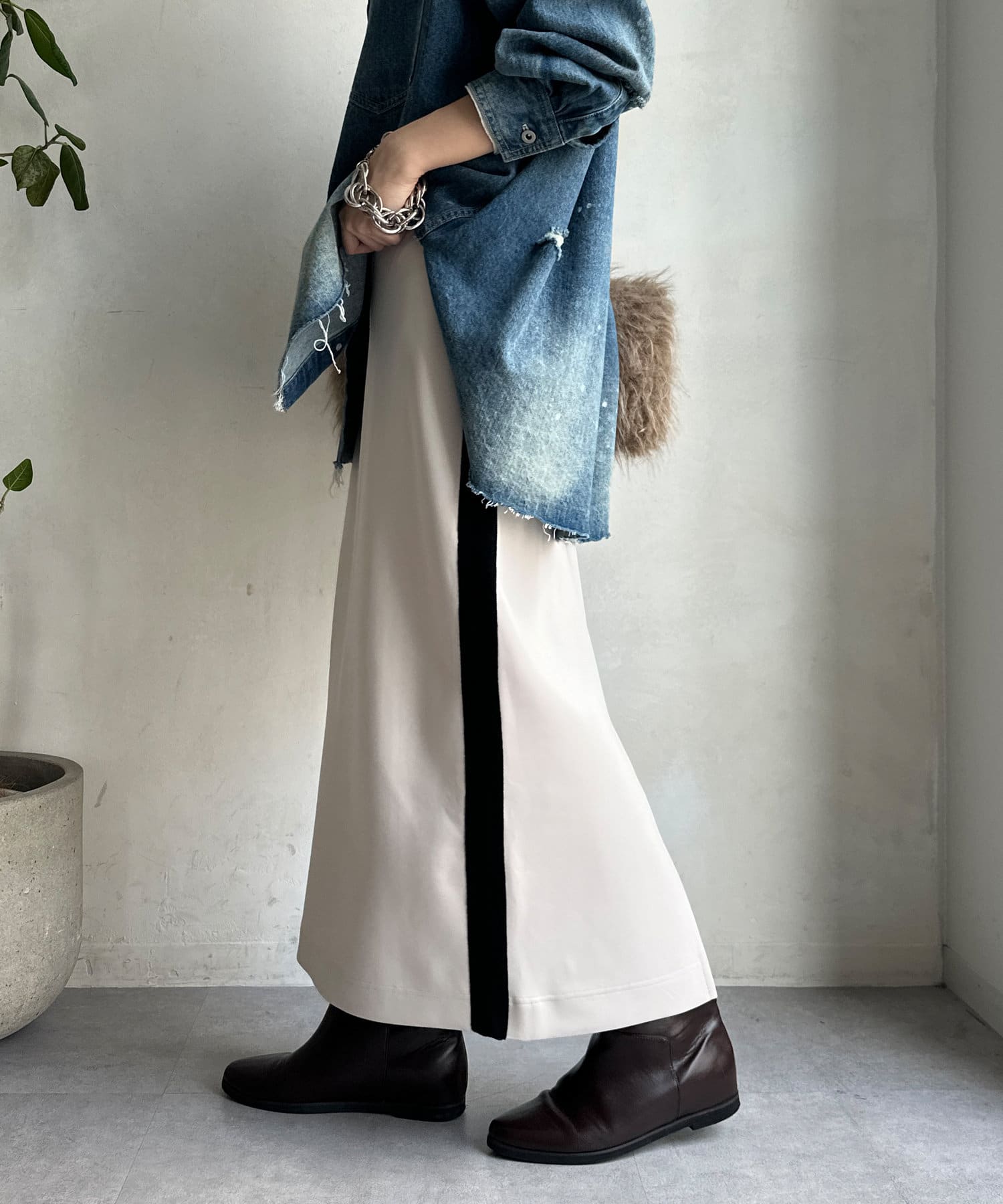 Iラインシルエットが大人な印象で、すっきりとした着こなしに。