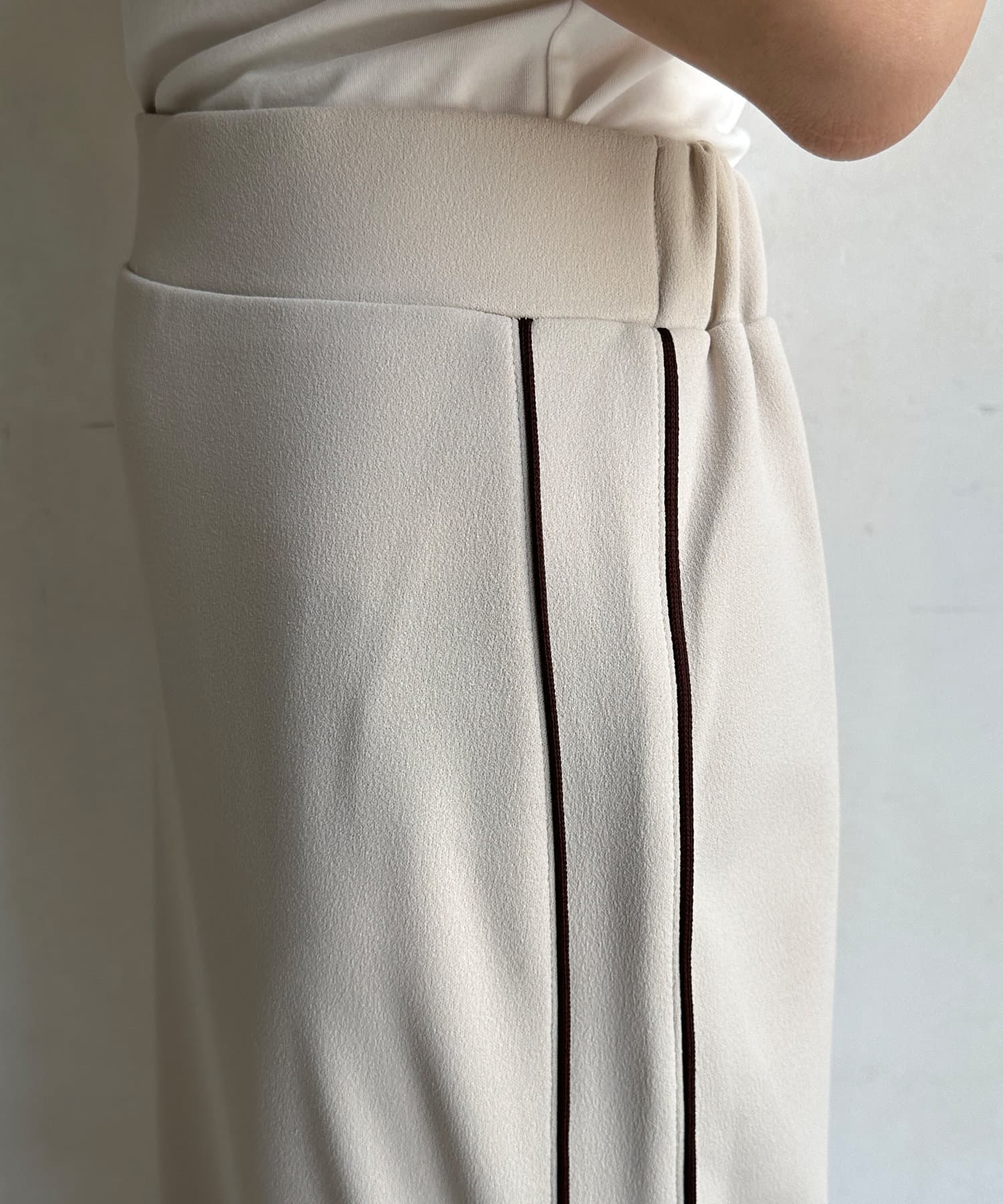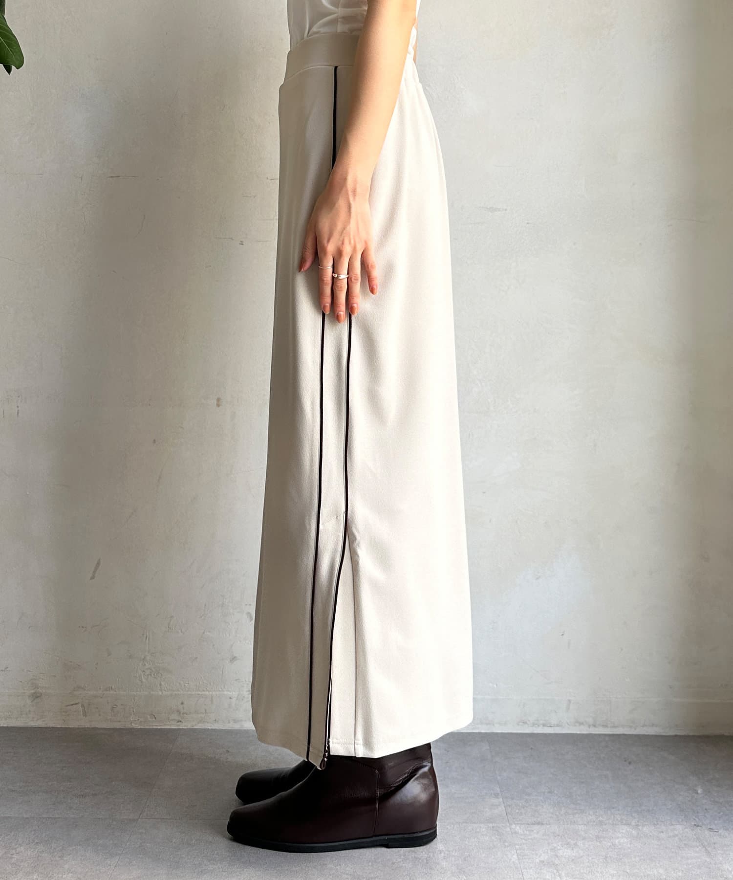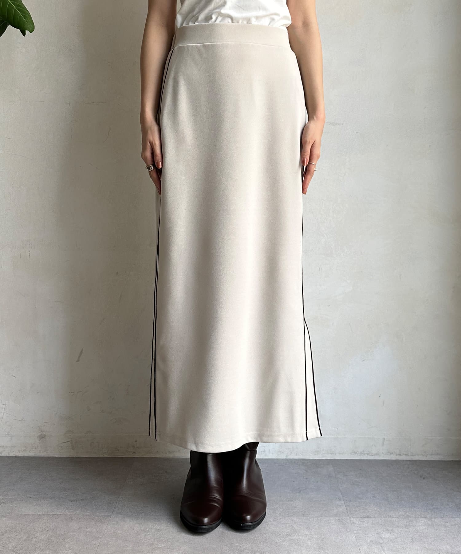 日頃のスタイルに取り入れやすいサイドラインデザインのスカート。