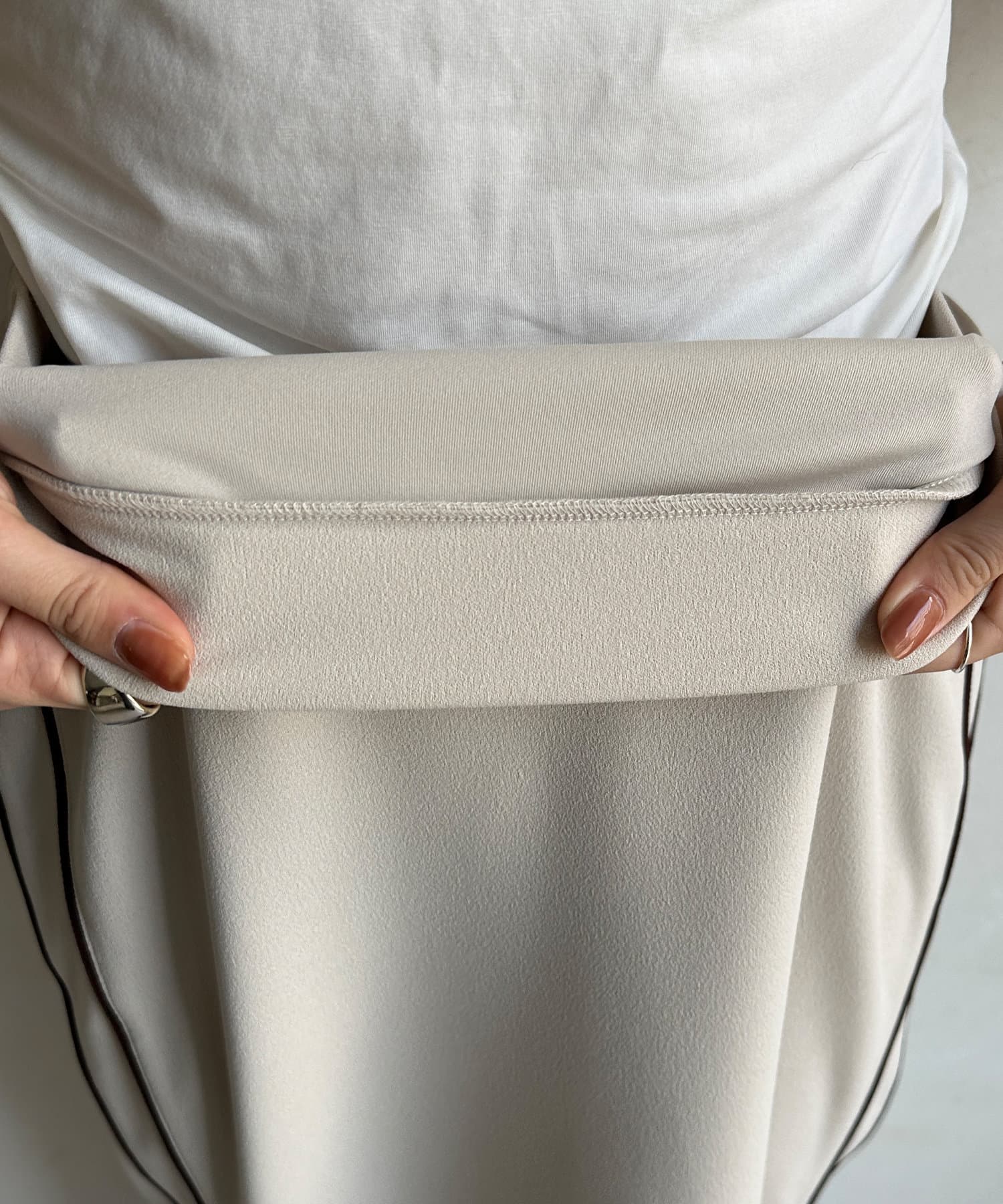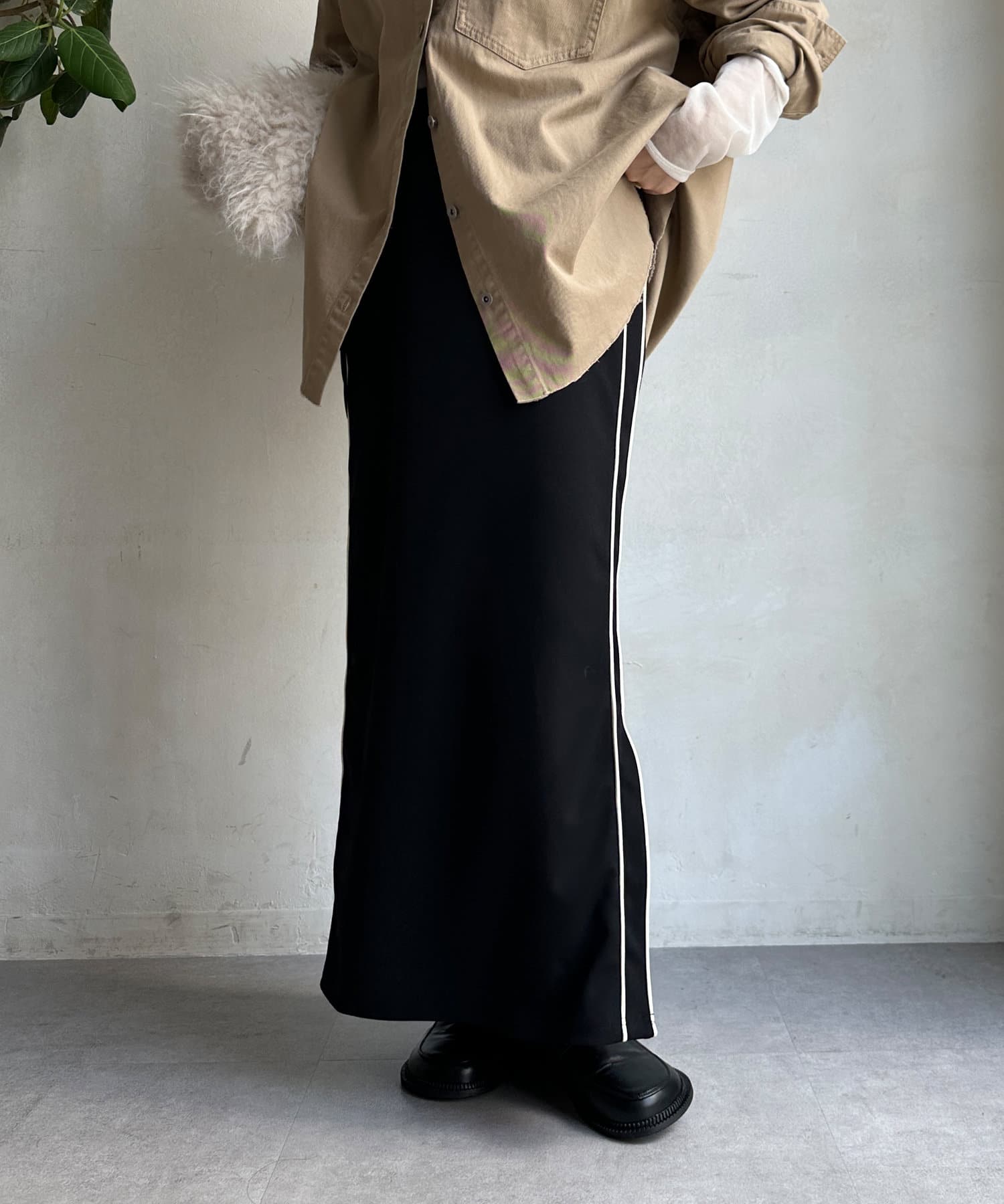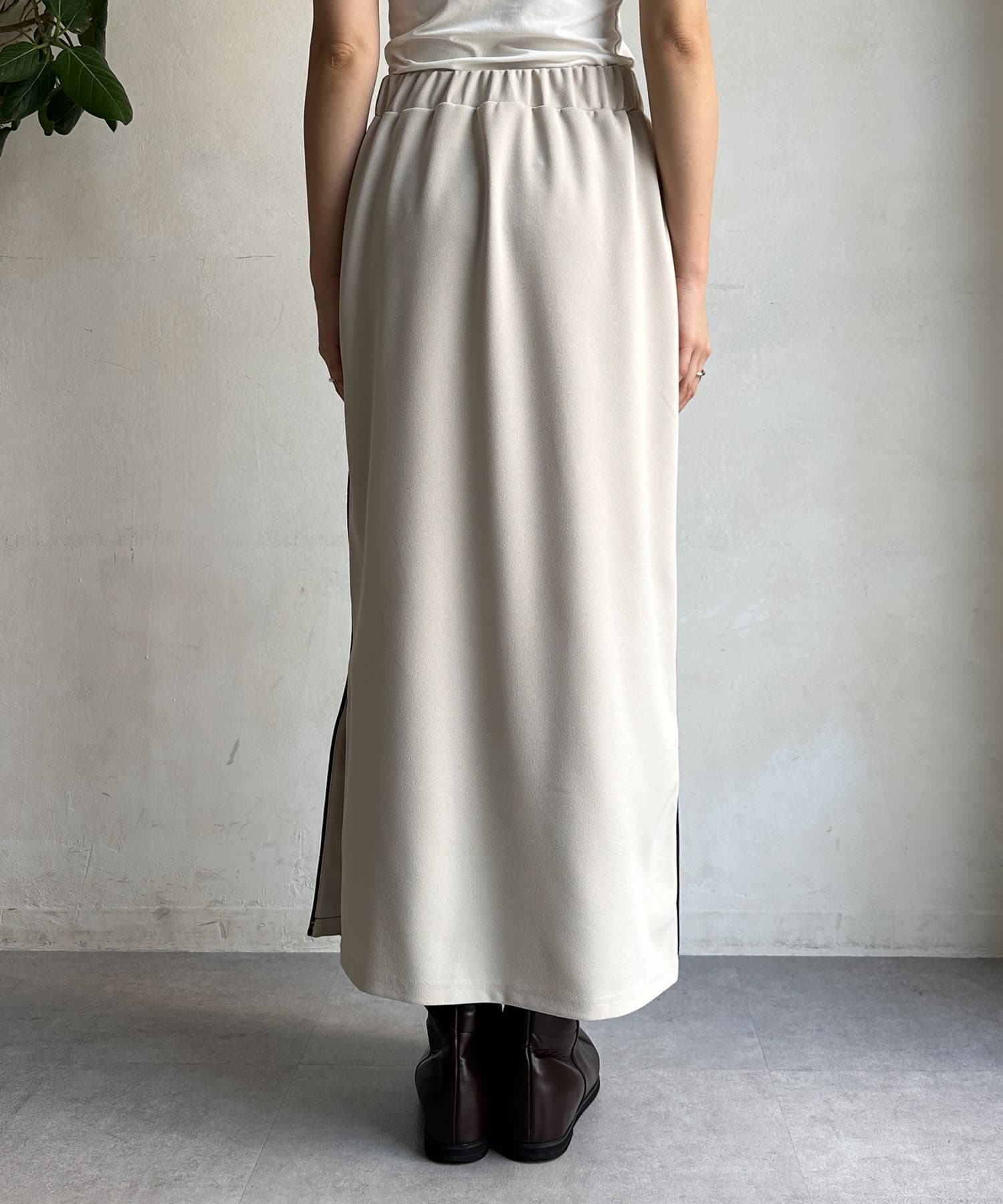 日頃のスタイルに取り入れやすいサイドラインデザインのスカート。