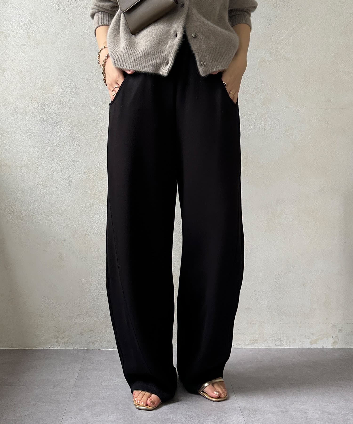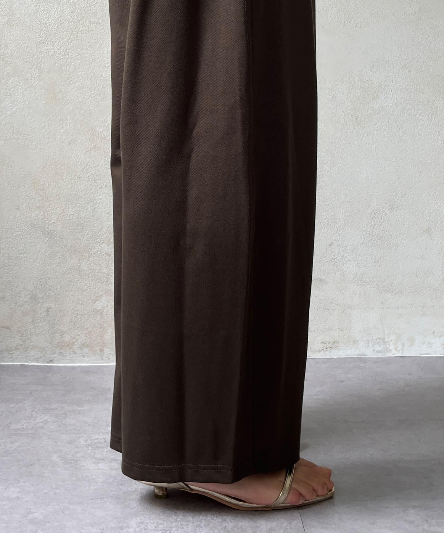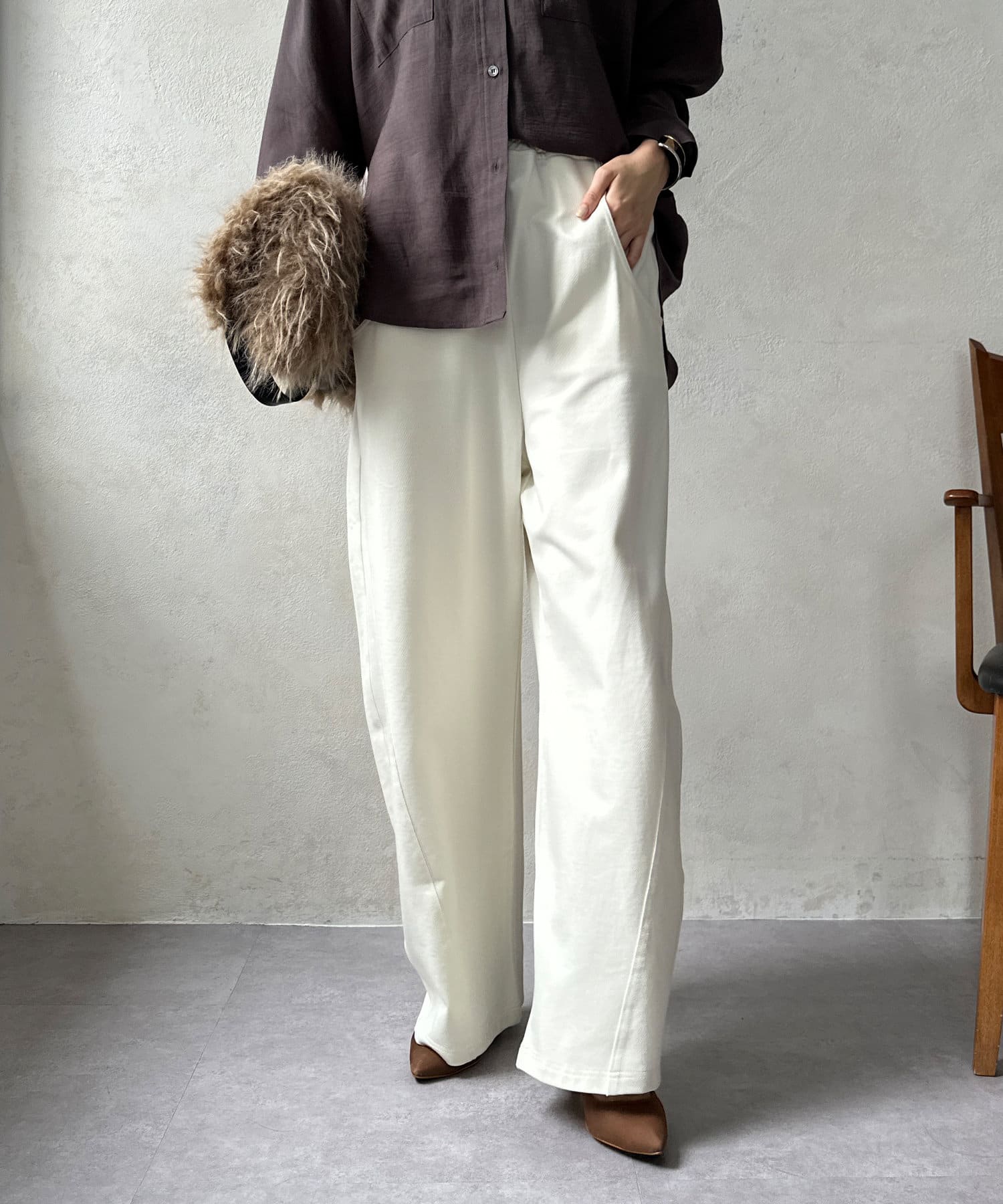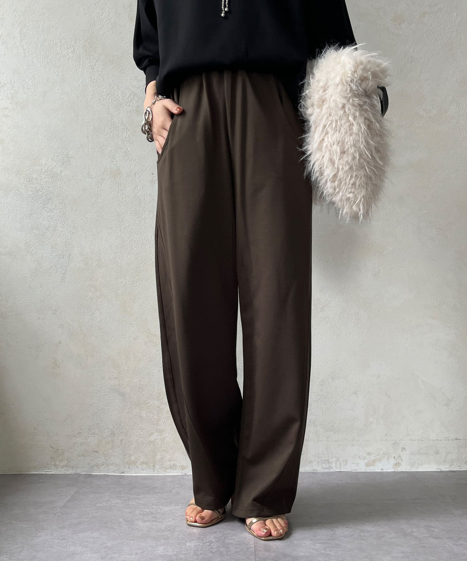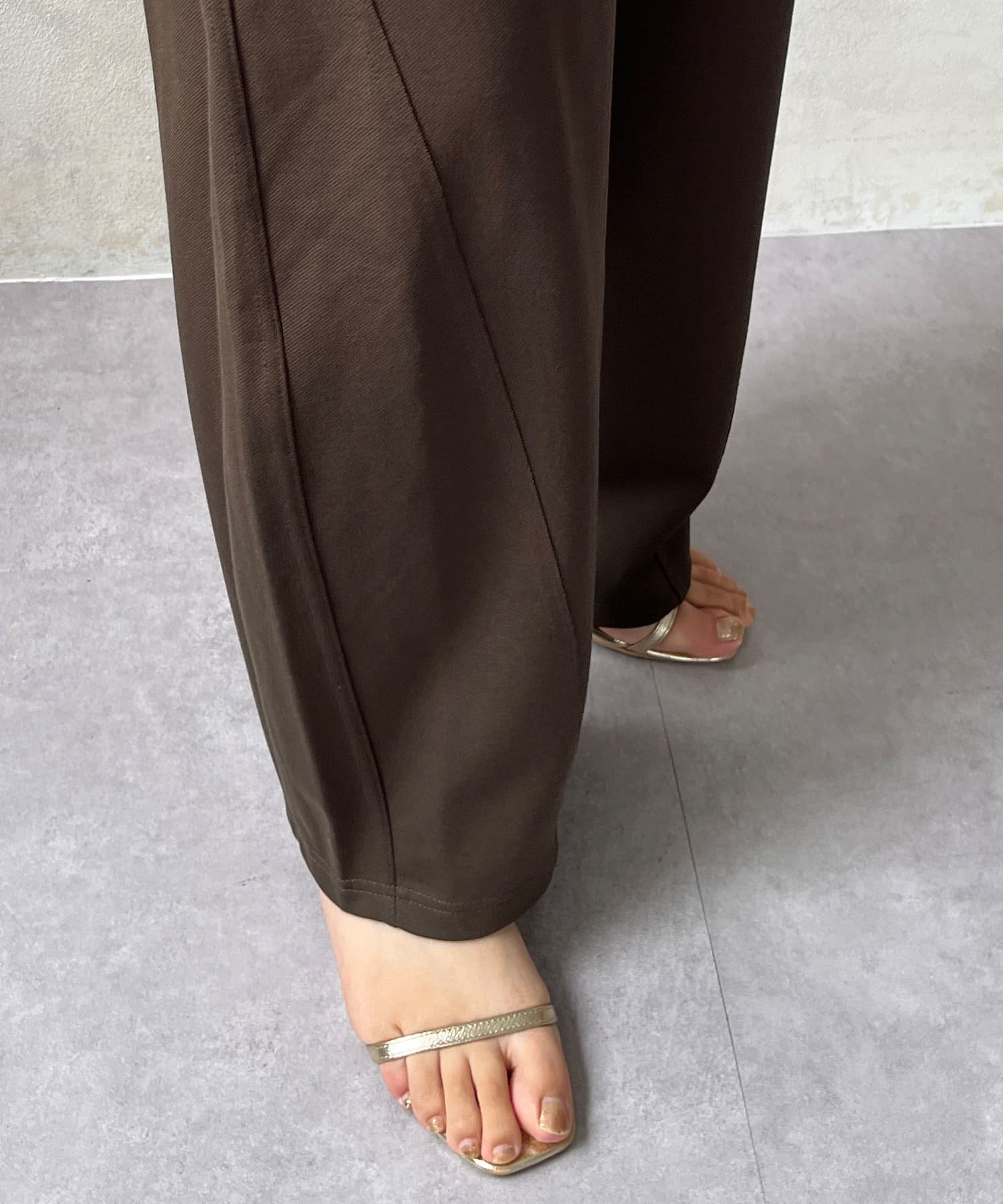 ヒップラインや脚のラインなど気になる部分をカバーしながら、裾にかけて細身になるシルエットに。