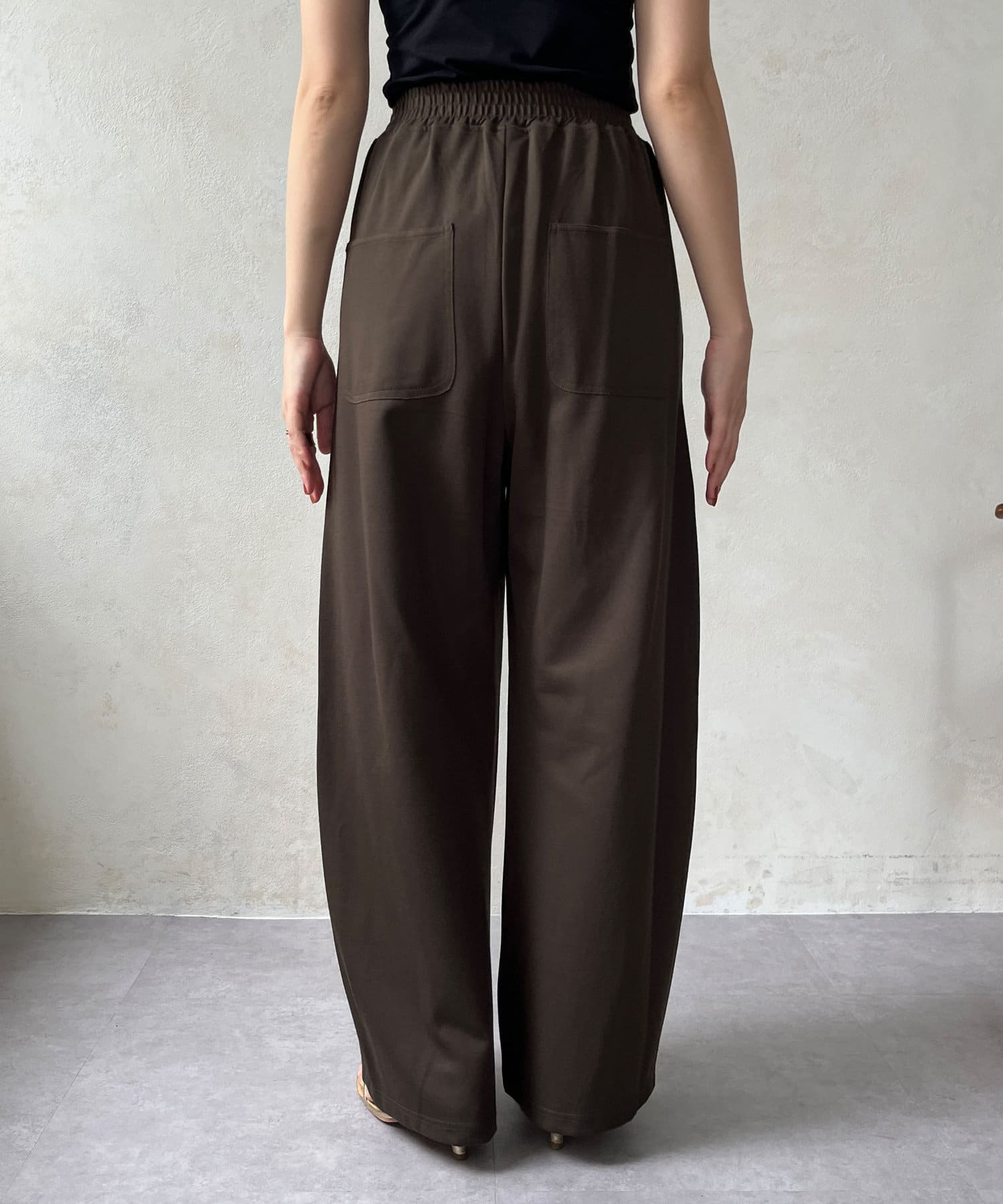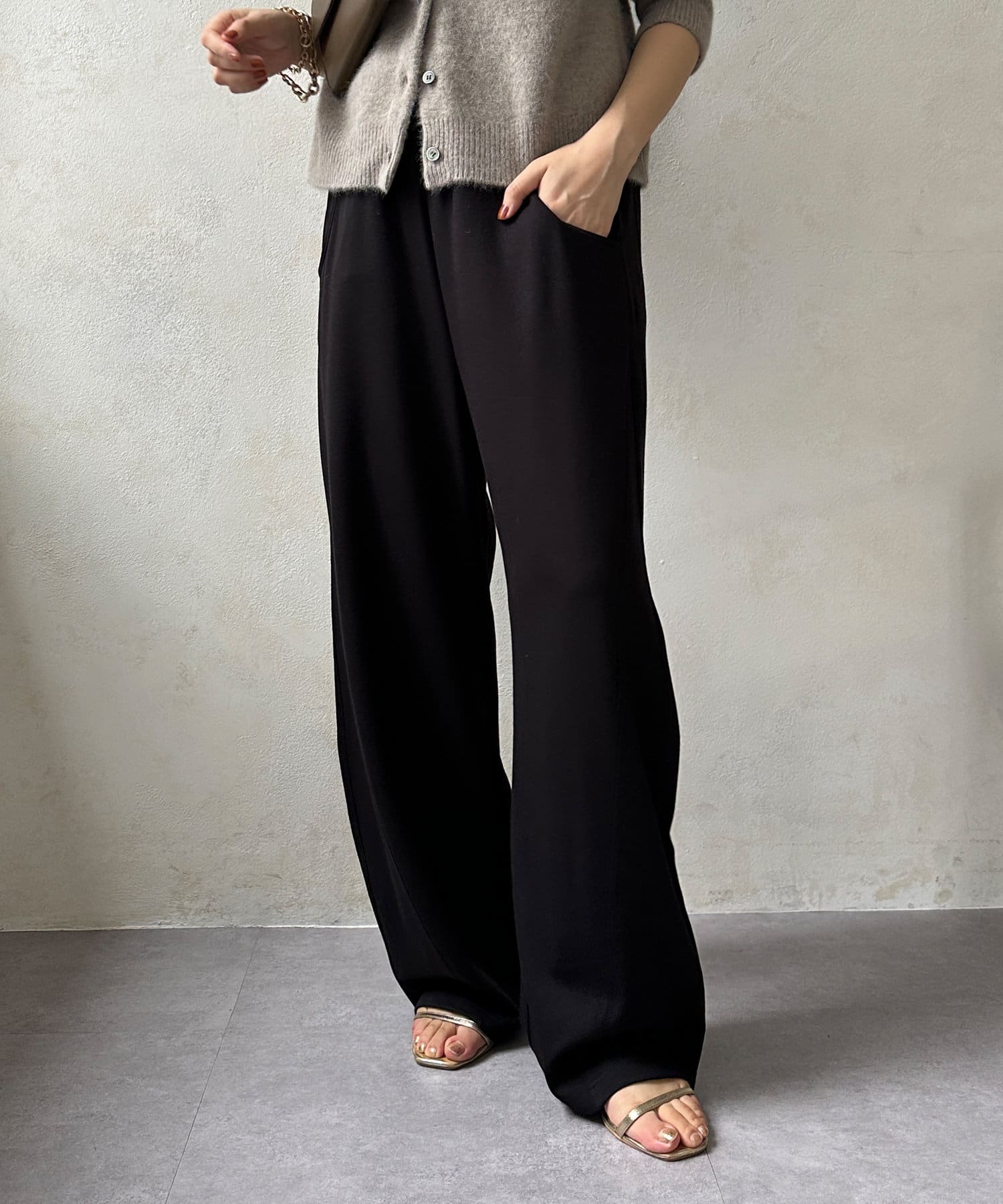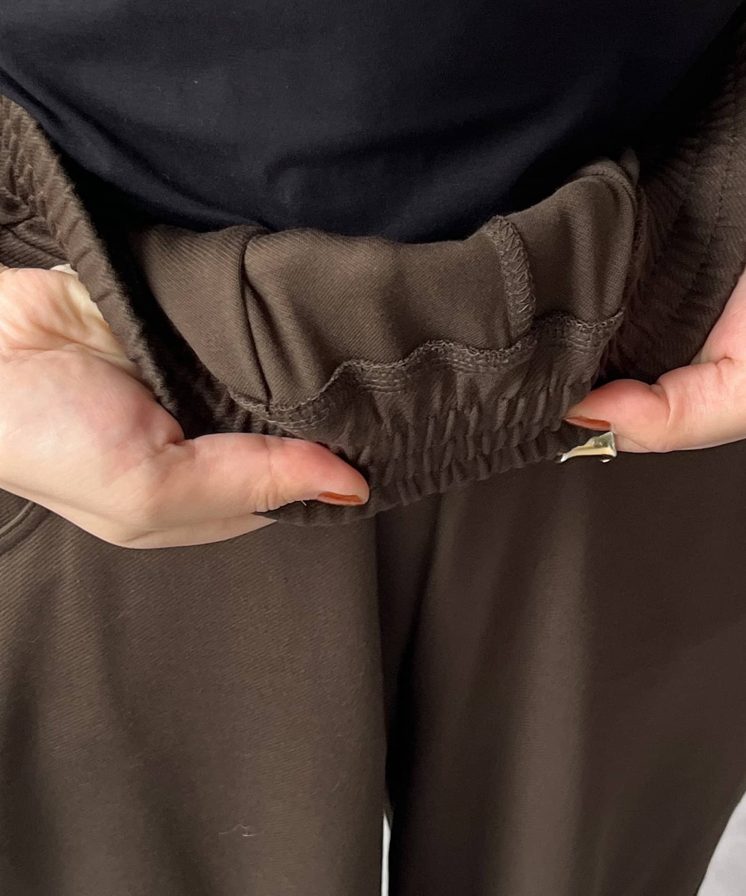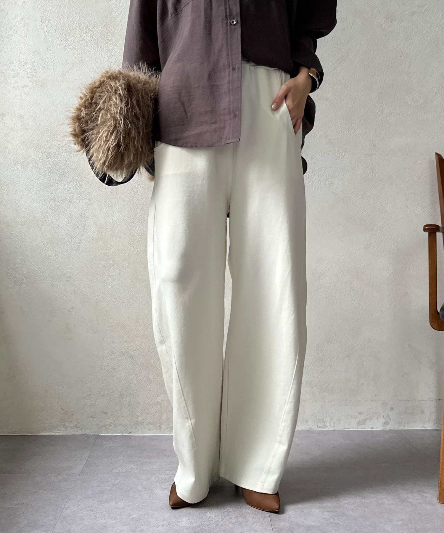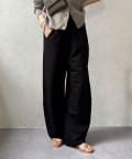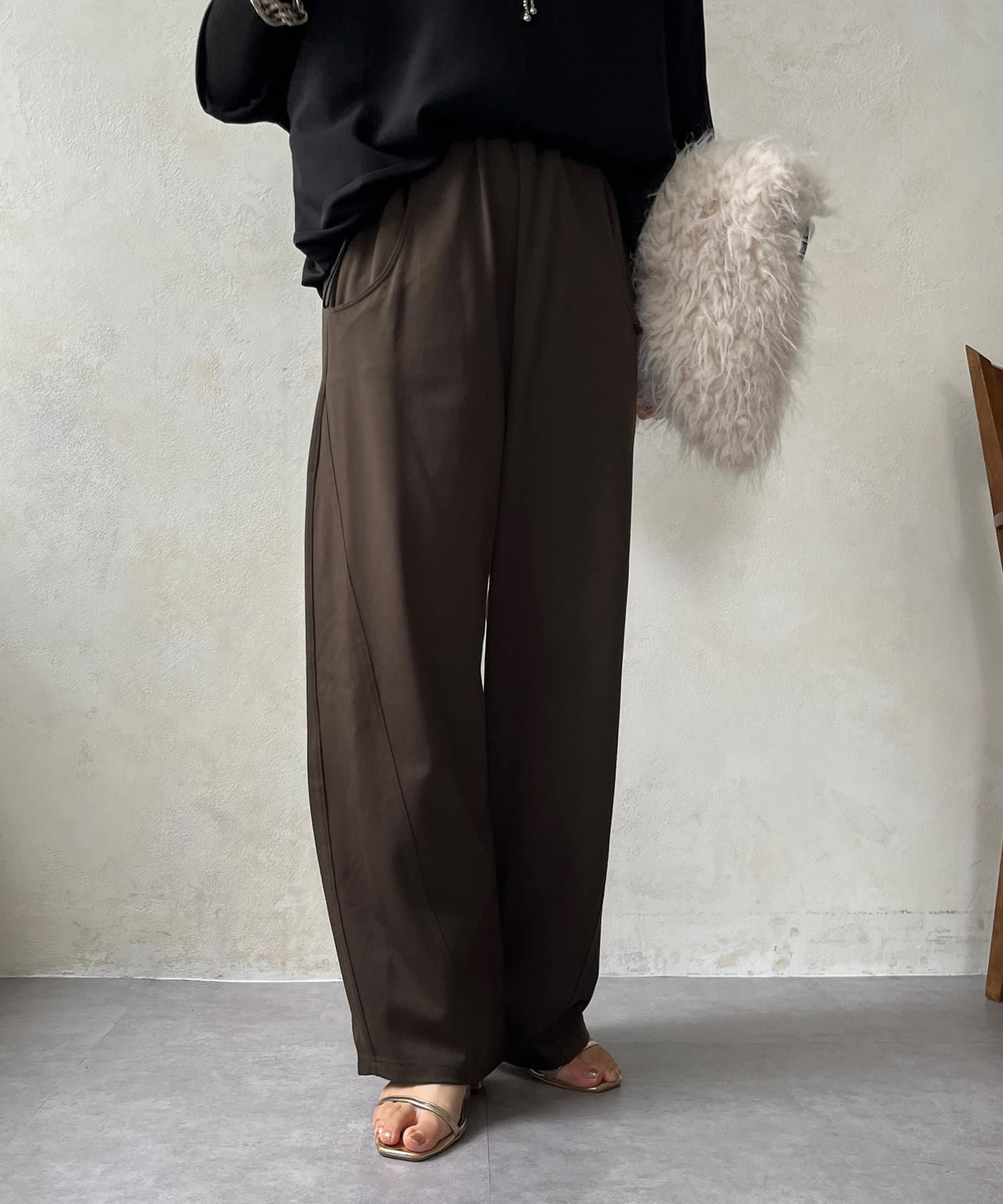 ヒップラインや脚のラインなど気になる部分をカバーしながら、裾にかけて細身になるシルエットに。