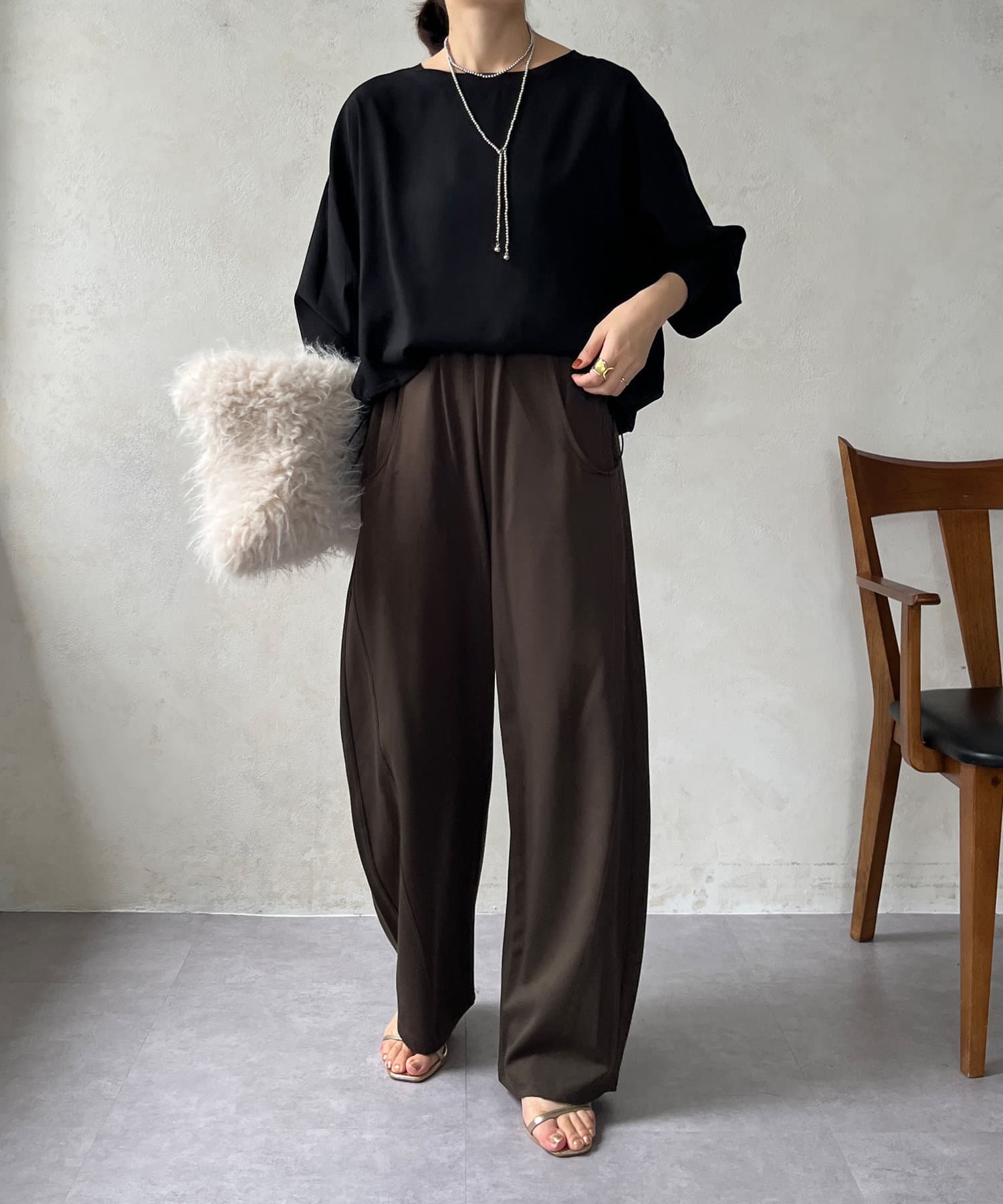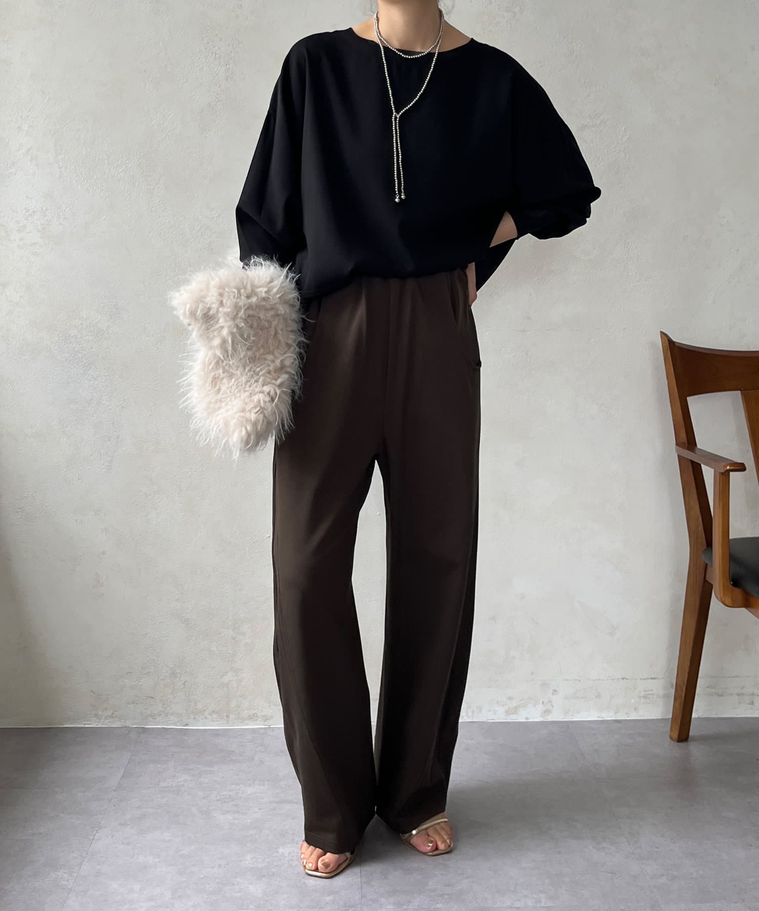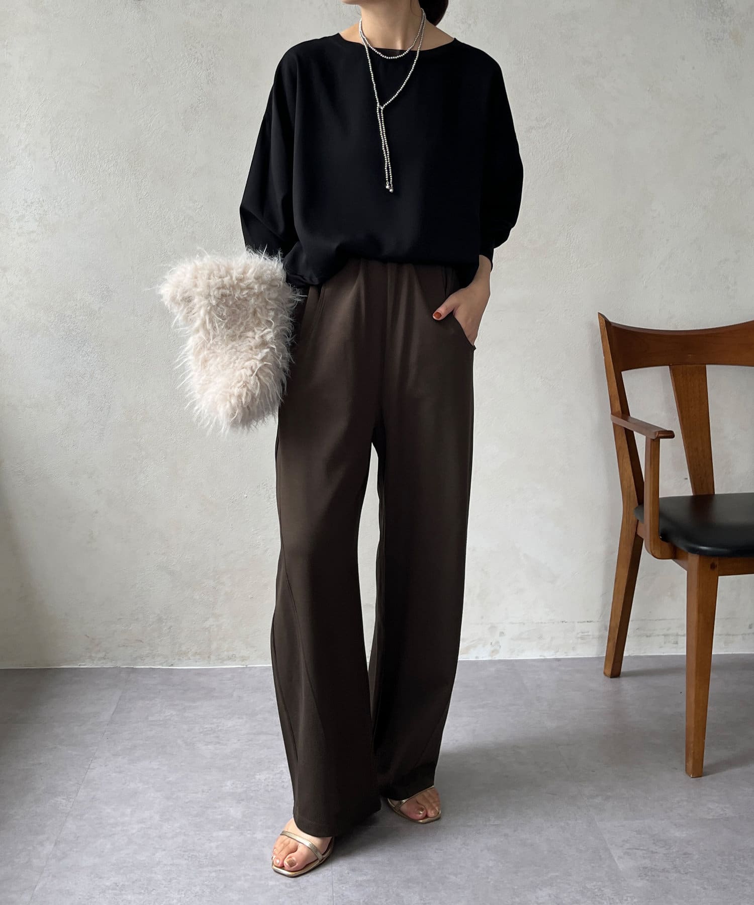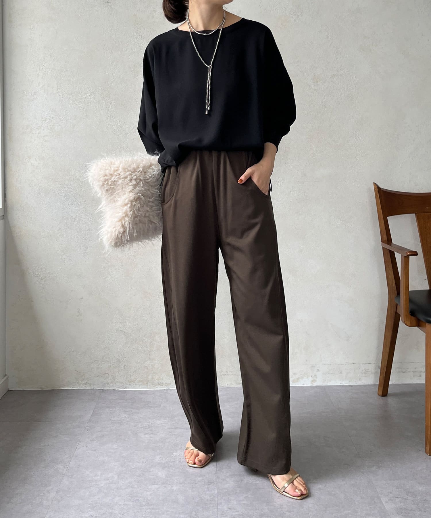 カットソーの素材感がリラクシーで抜け感をプラスし、気楽に着回ししていただけます。