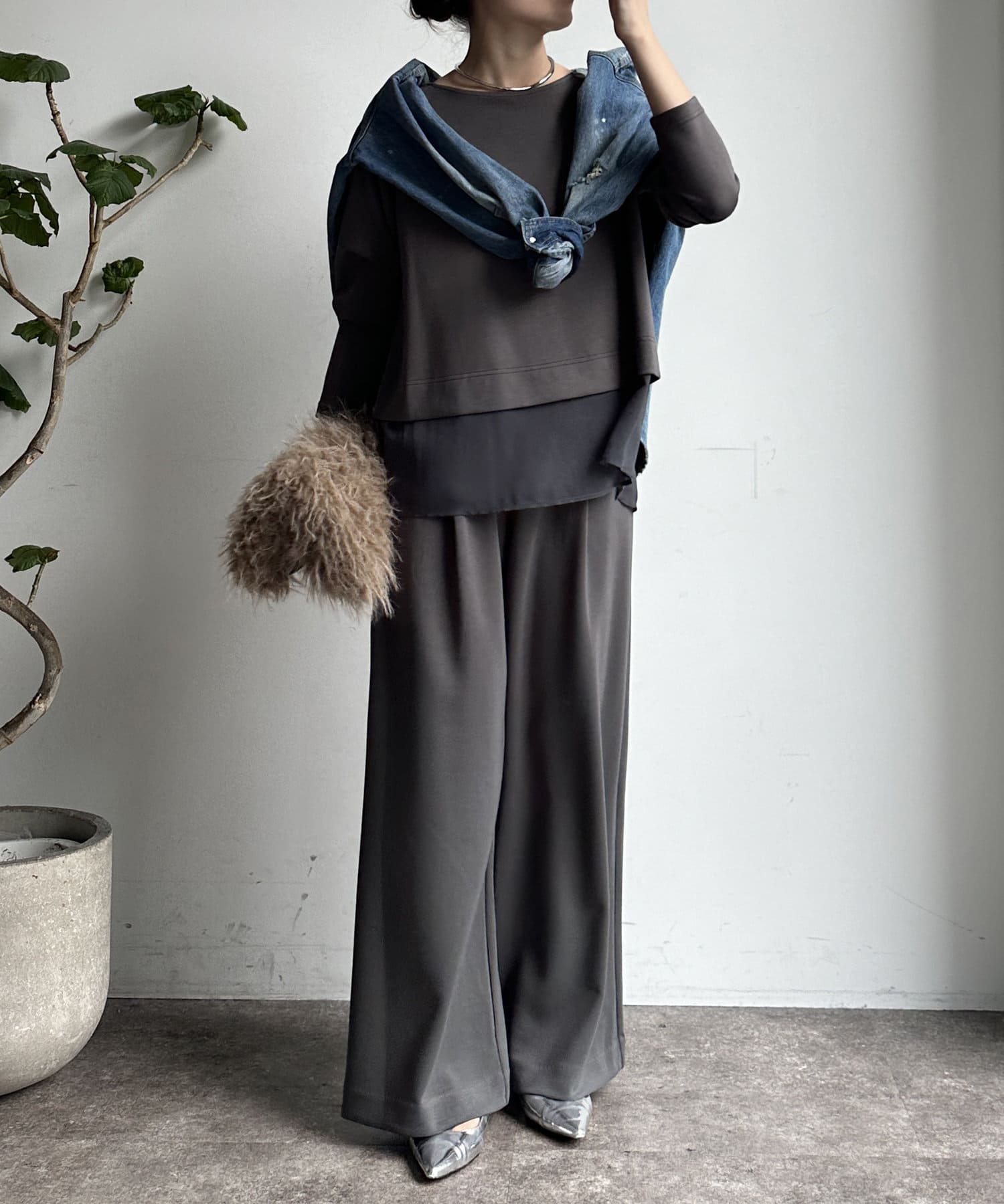 DOUDOU(ドゥドゥ) 【WEB限定】ボンディングワイドパンツ