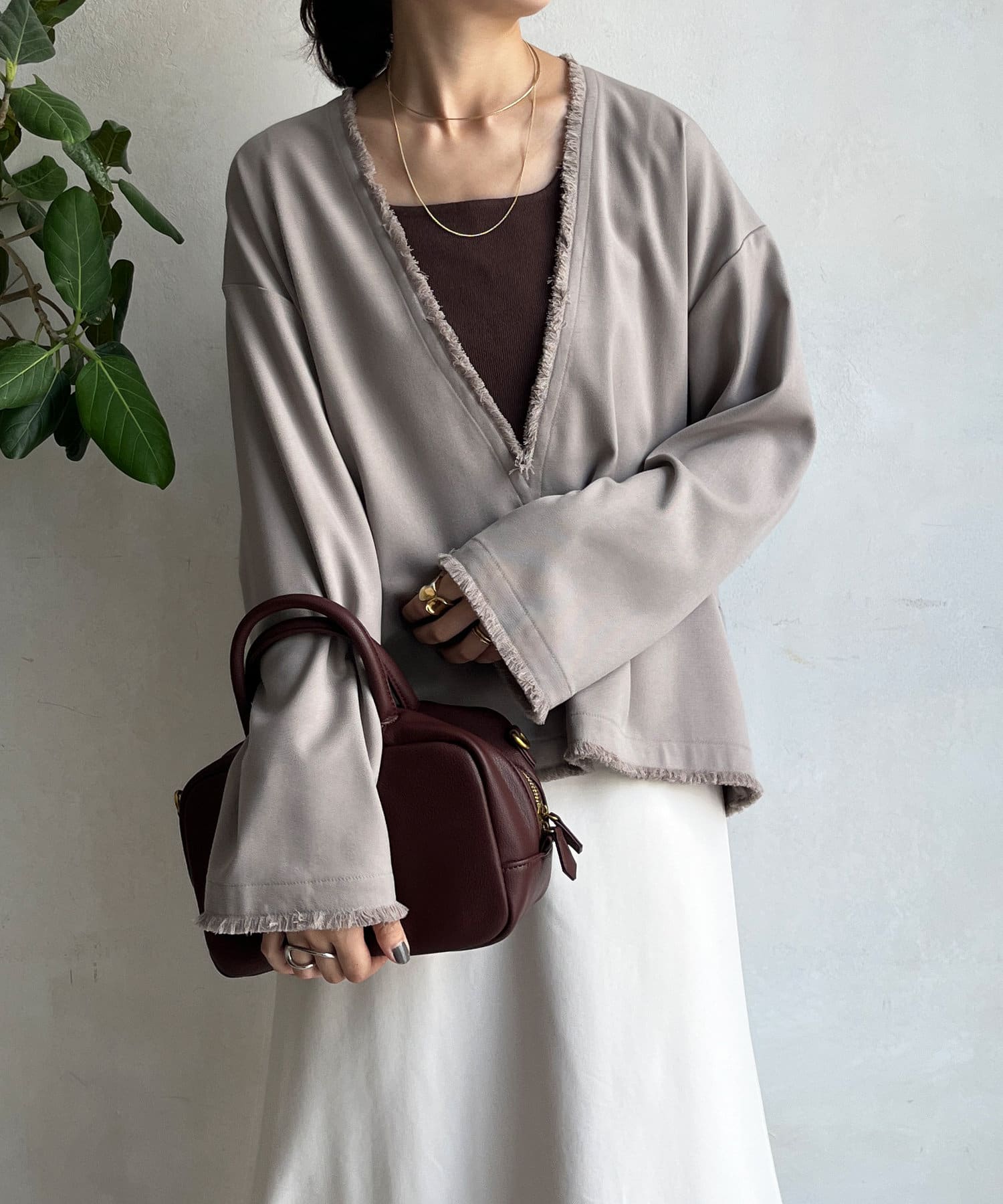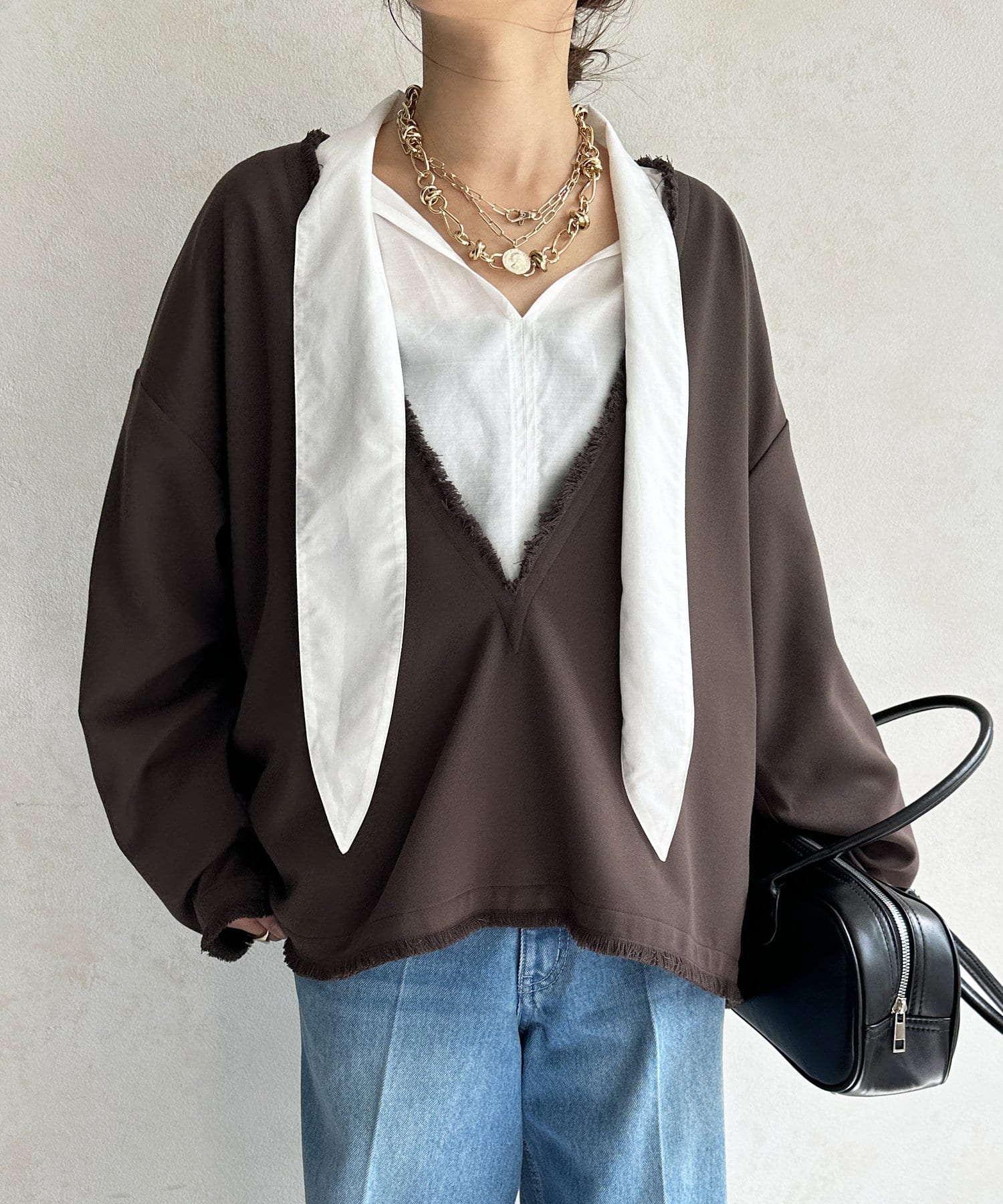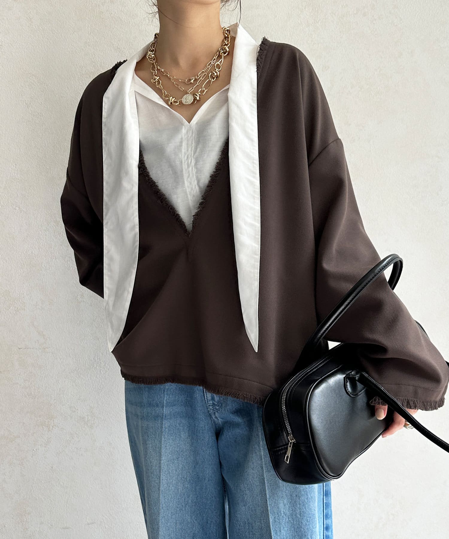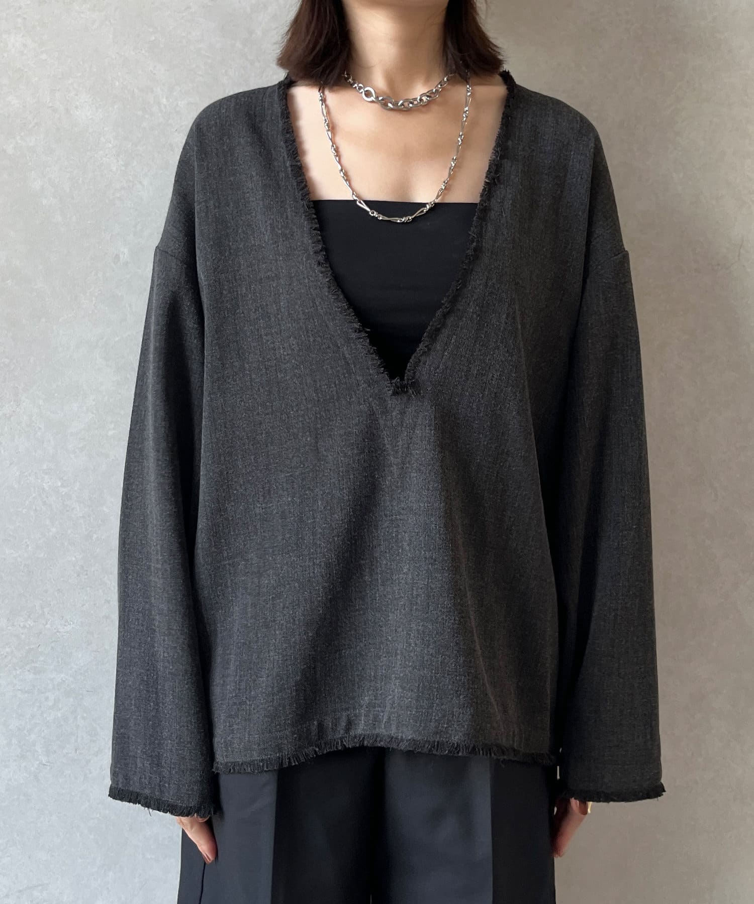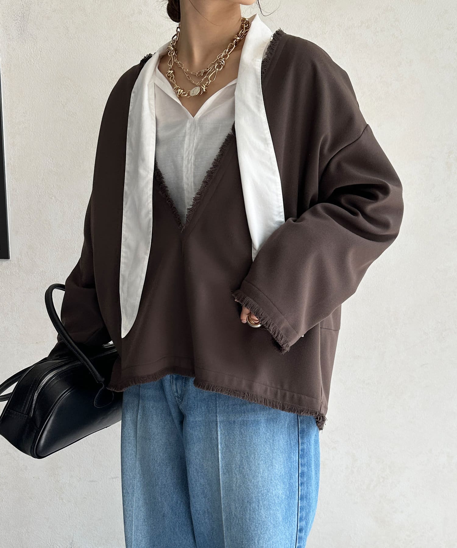 インナー次第で印象を変えてくれるので、レイヤードスタイルも楽しんでいただけます。