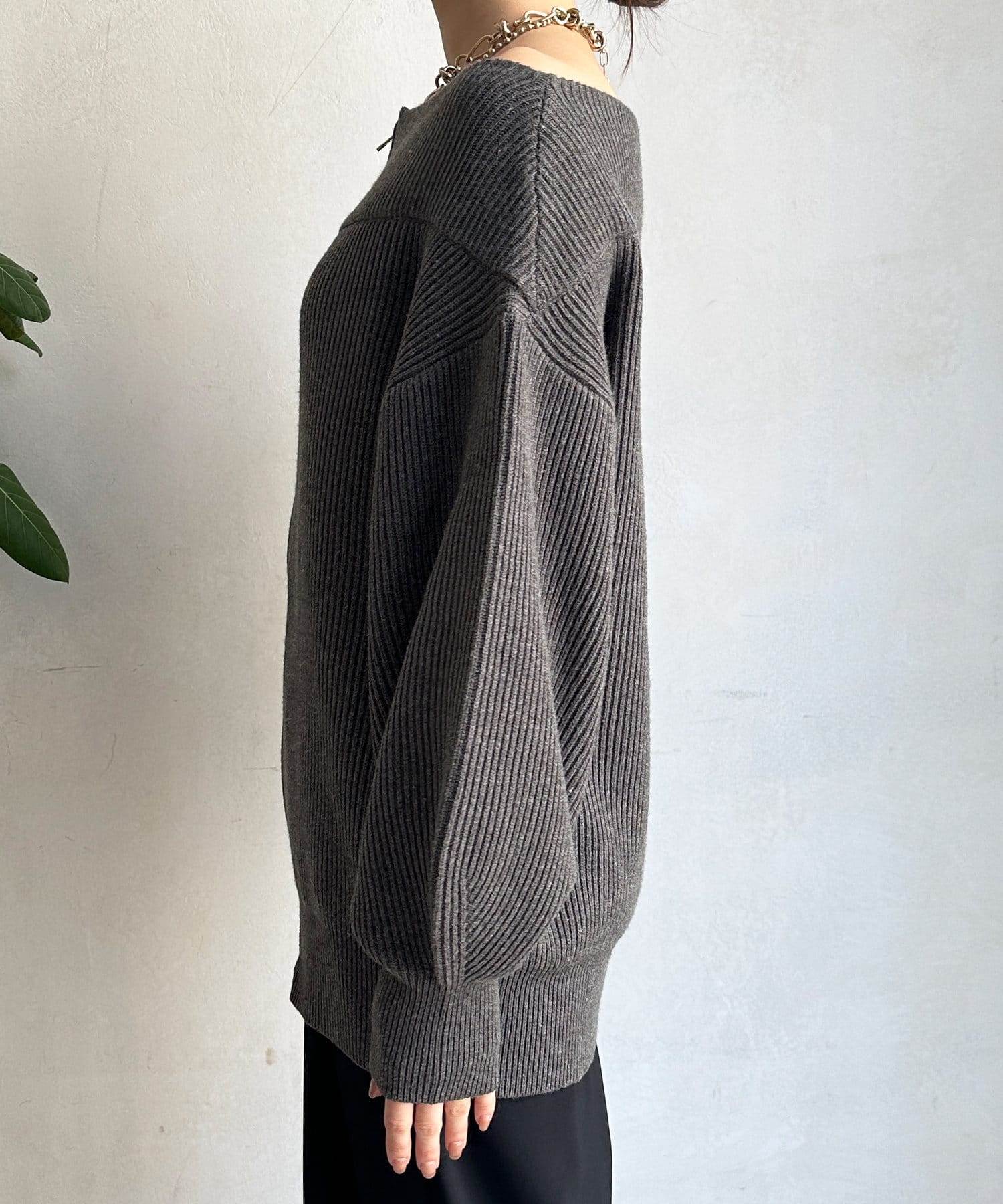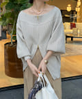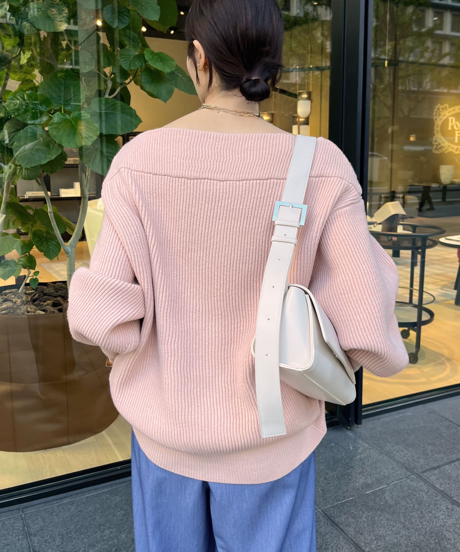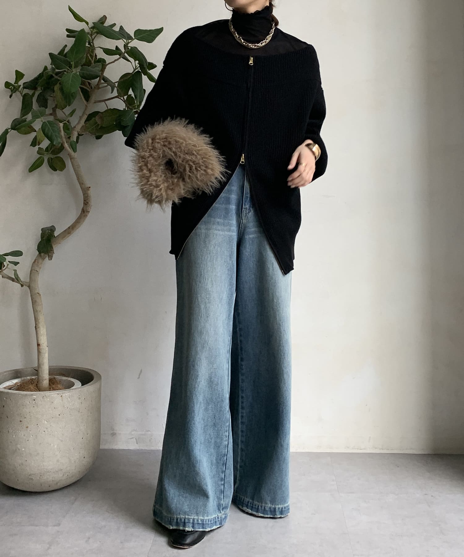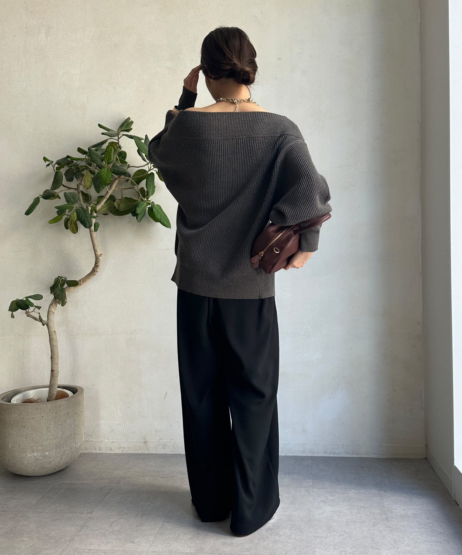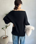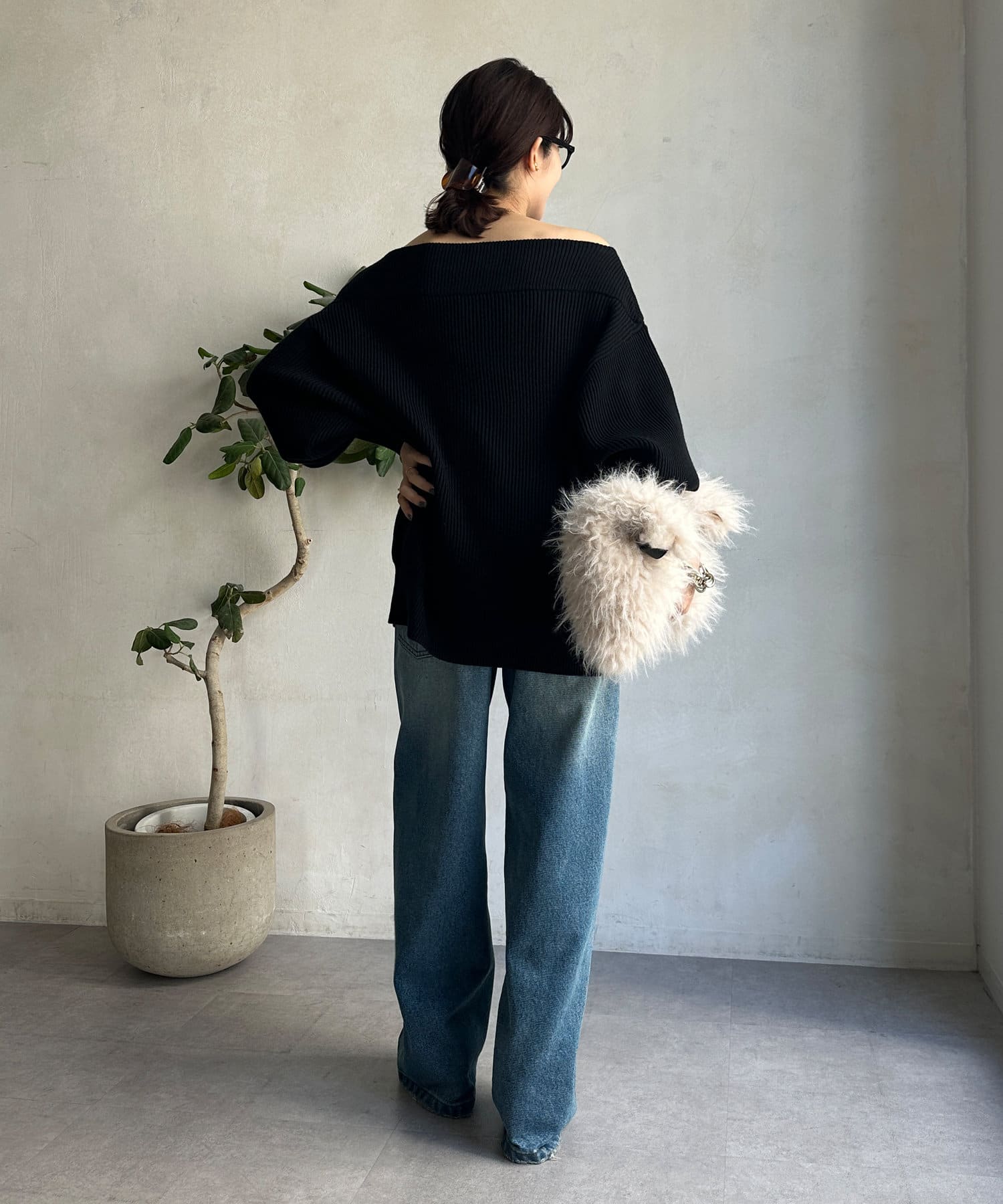 フロントにジップのデザインを施した新鮮な1着。ネックラインを広く取っているため、オフショルとして着用していただけます。