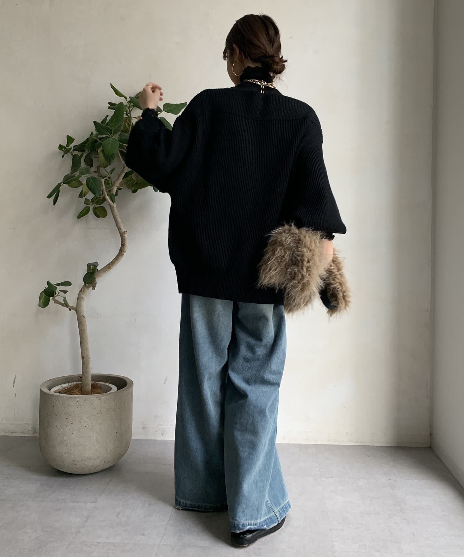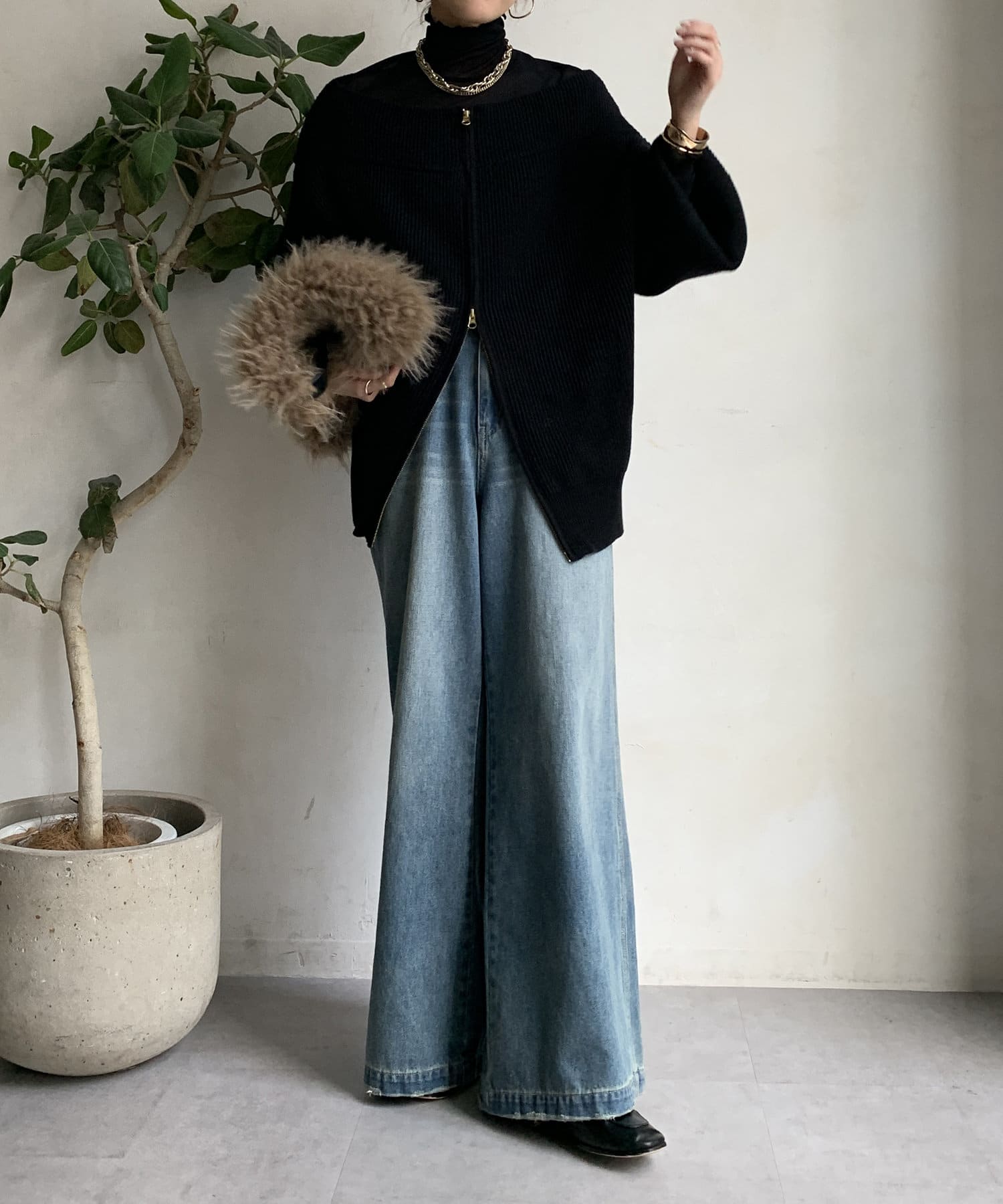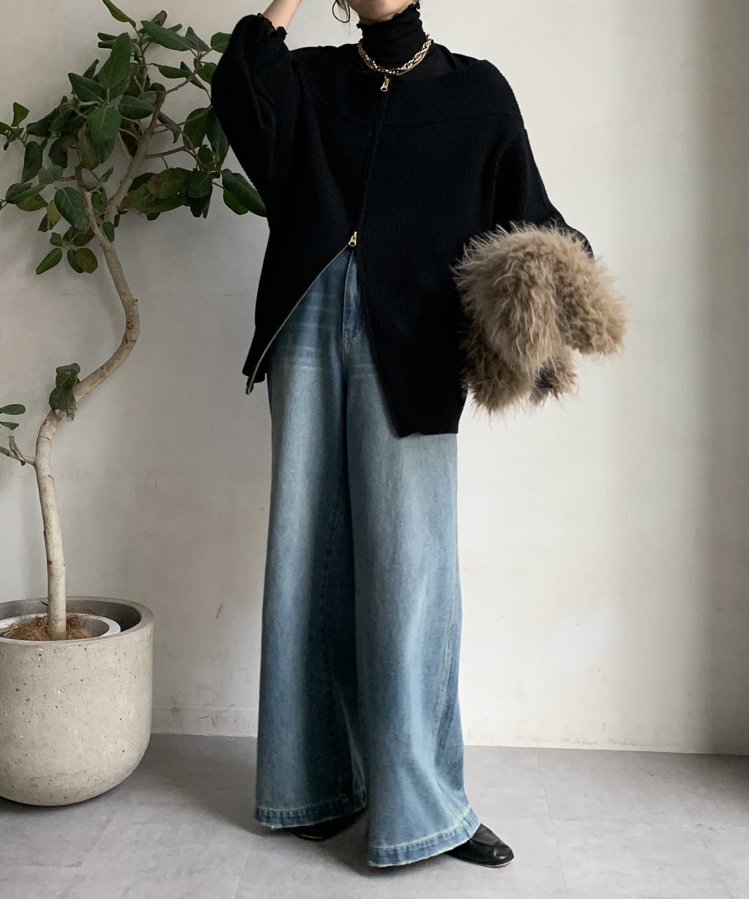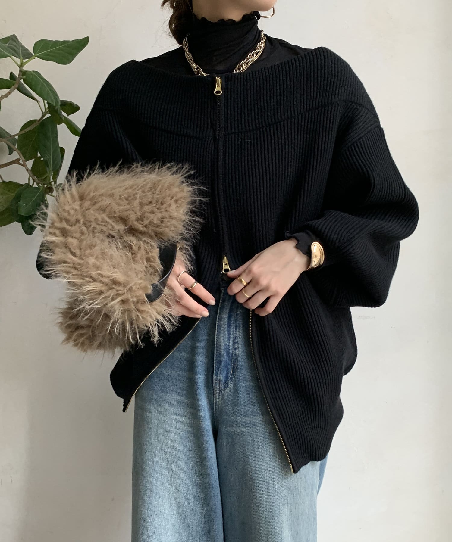 【前後2WAY仕様 / チクチクしないニット】フロントジップニット