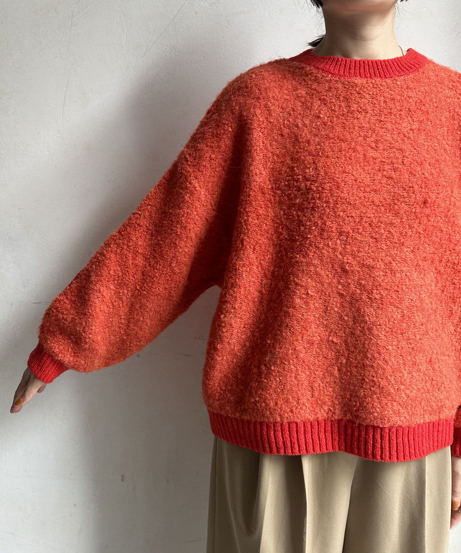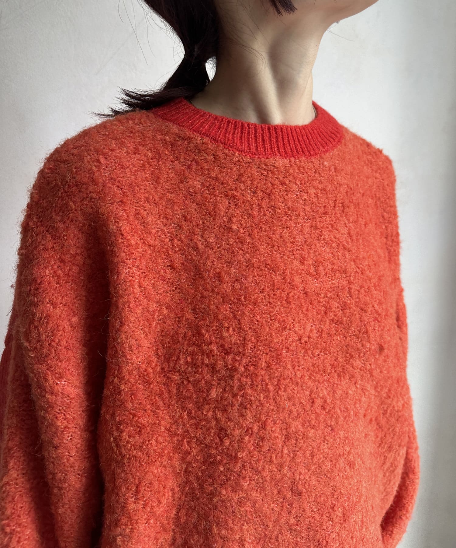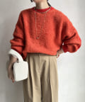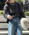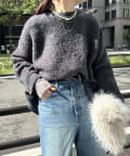ループのような表面感が可愛いリングヤーンをポイント使いしたクルーニット!