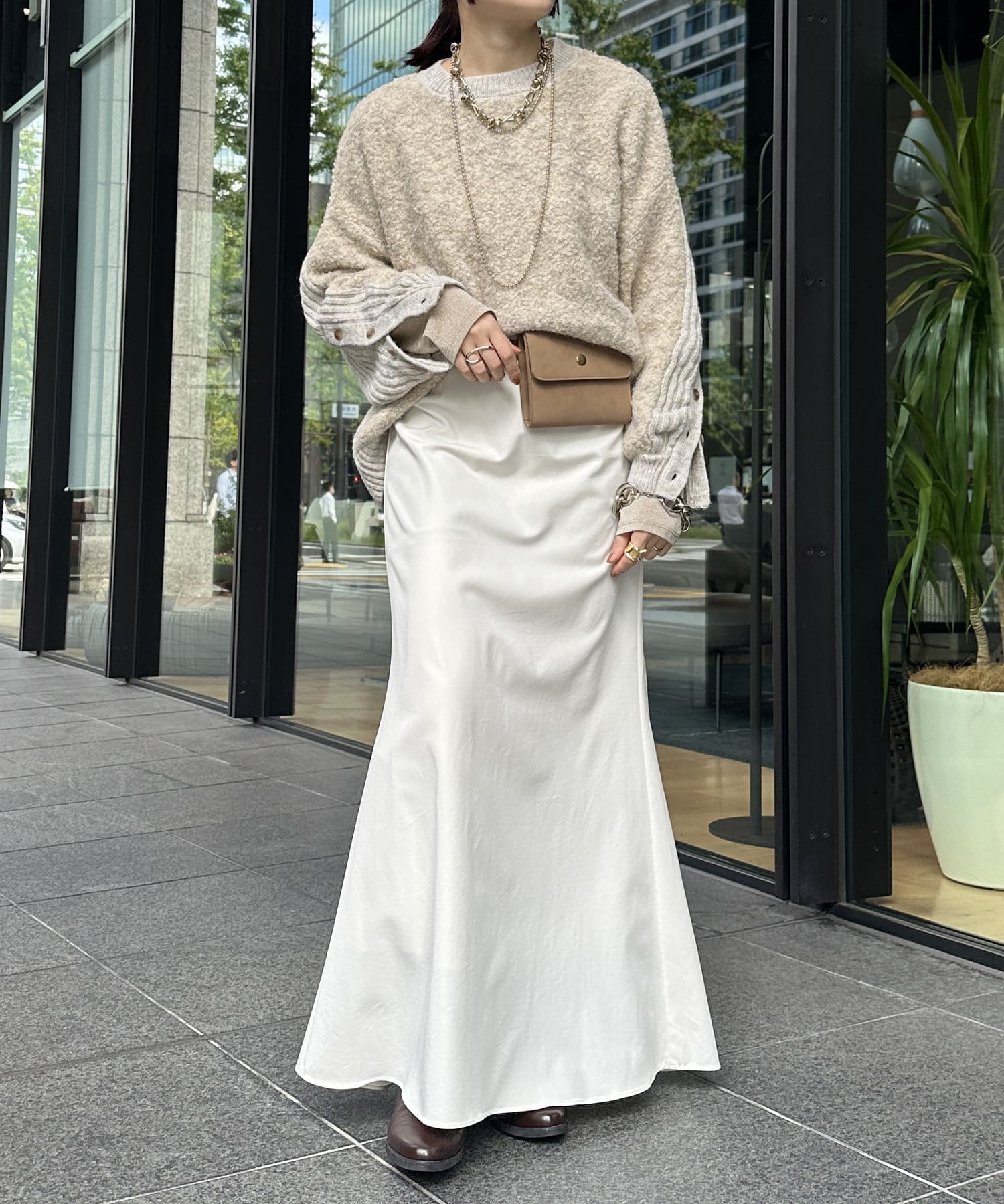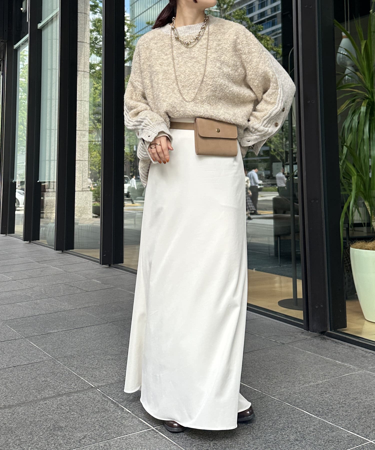 ルーズ過ぎずタイト過ぎない程よいシルエット感がパンツやスカートにマッチしますよ◎