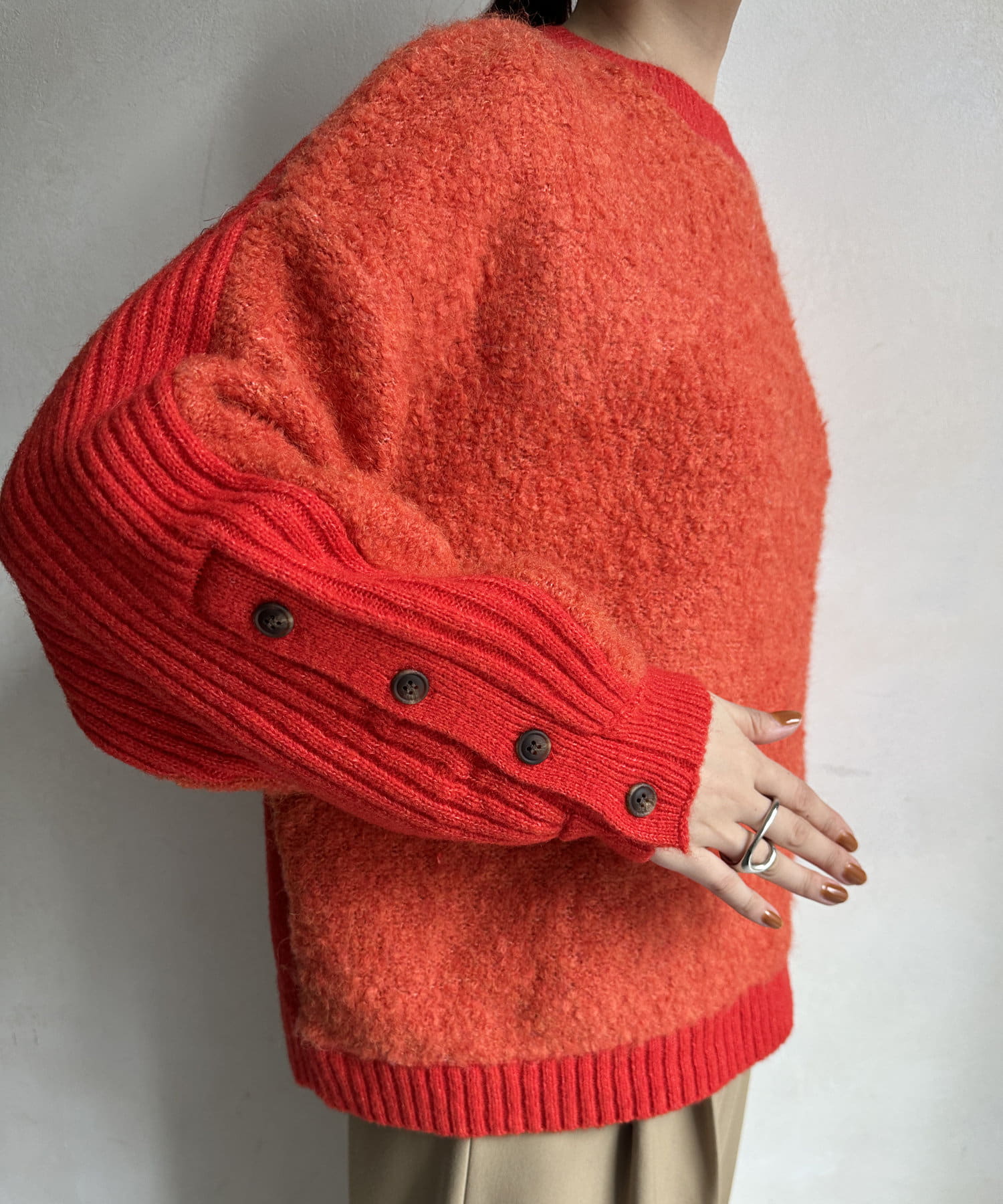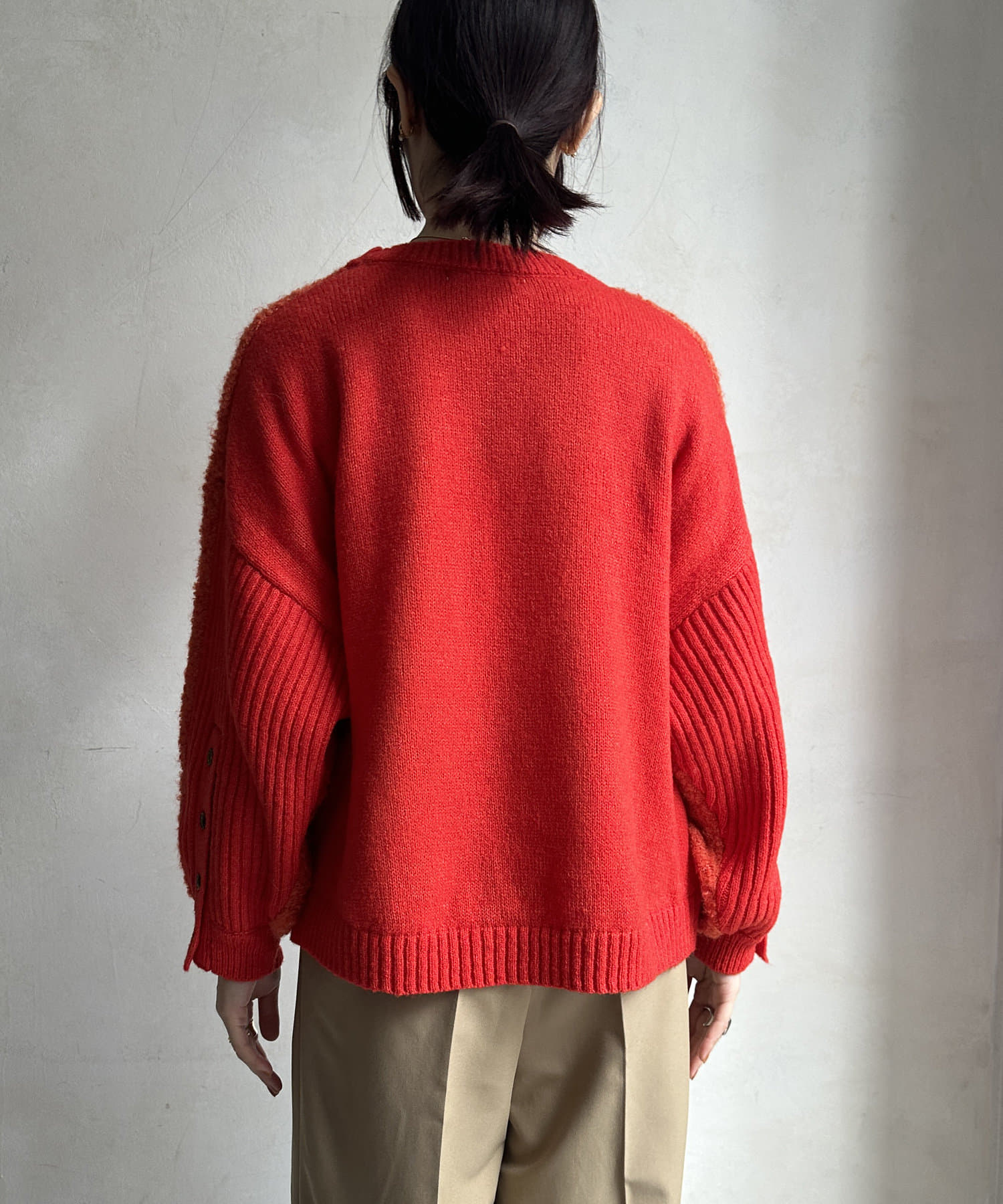 袖先をテレコニットで切り替えているデザイン性のあるアイテム!