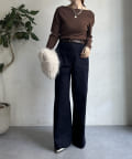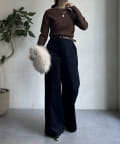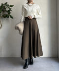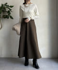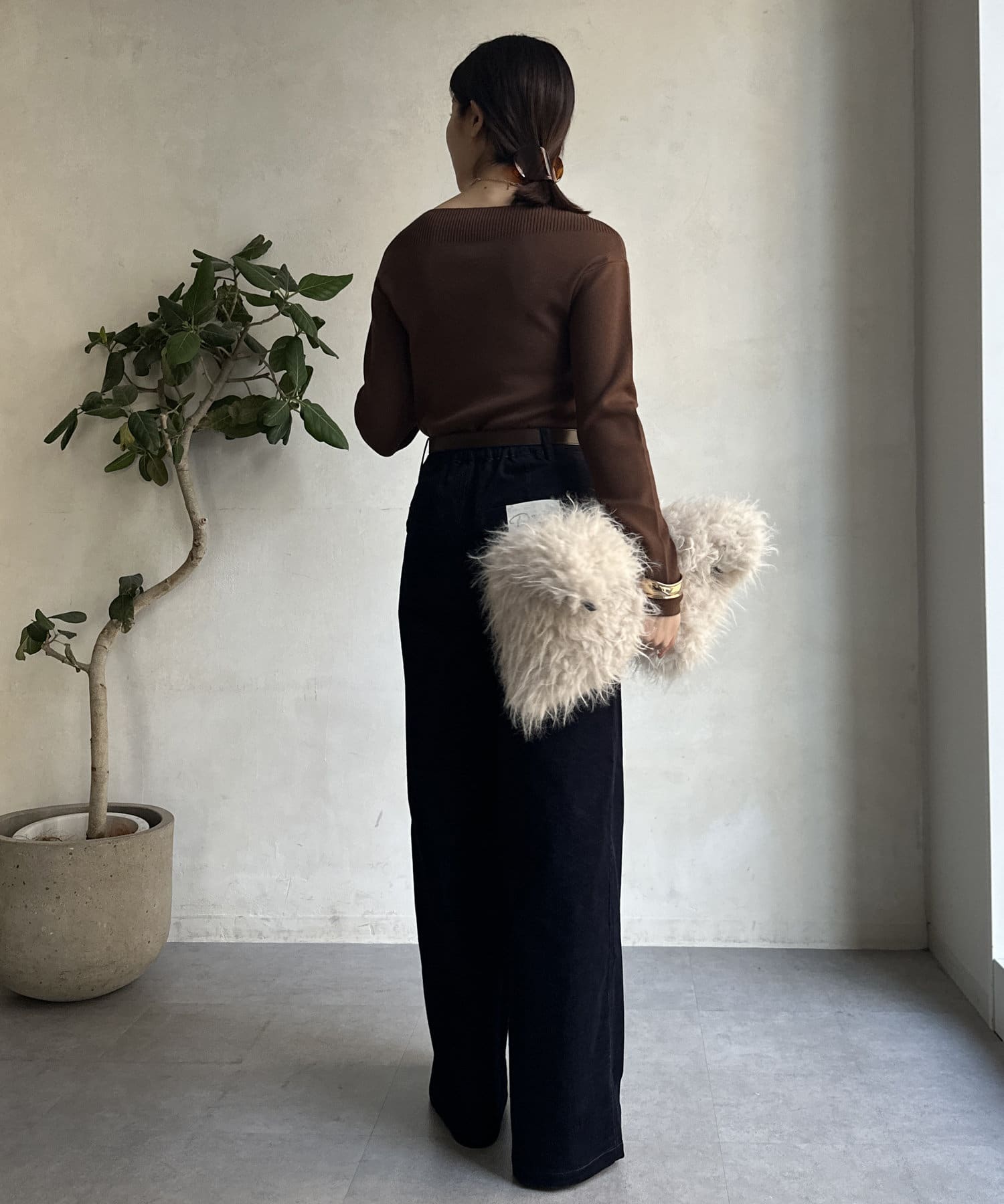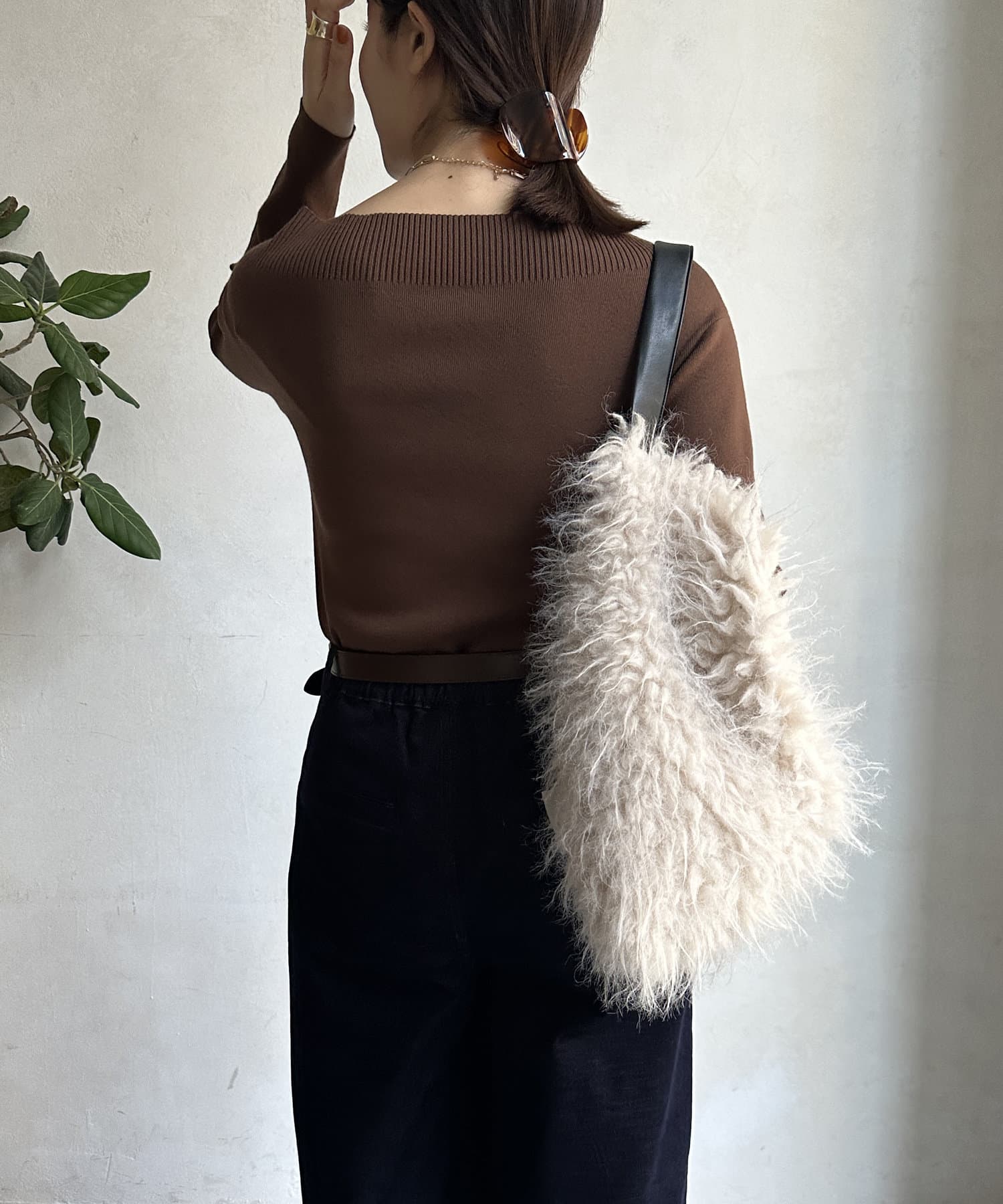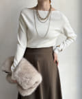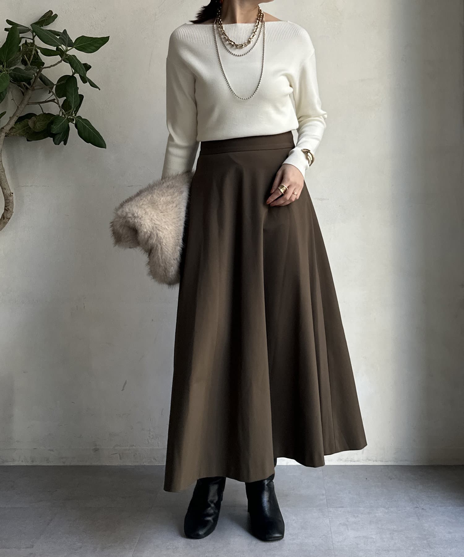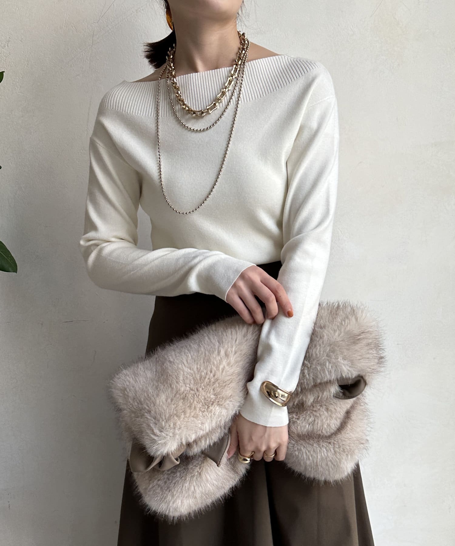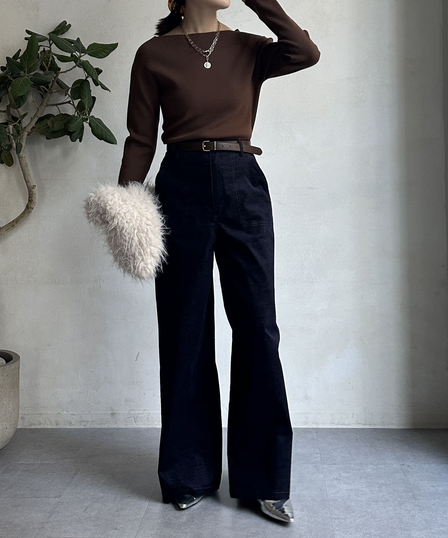 首元は横に開くボートネックデザインで、お顔周りをすっきりと見せてくれます。