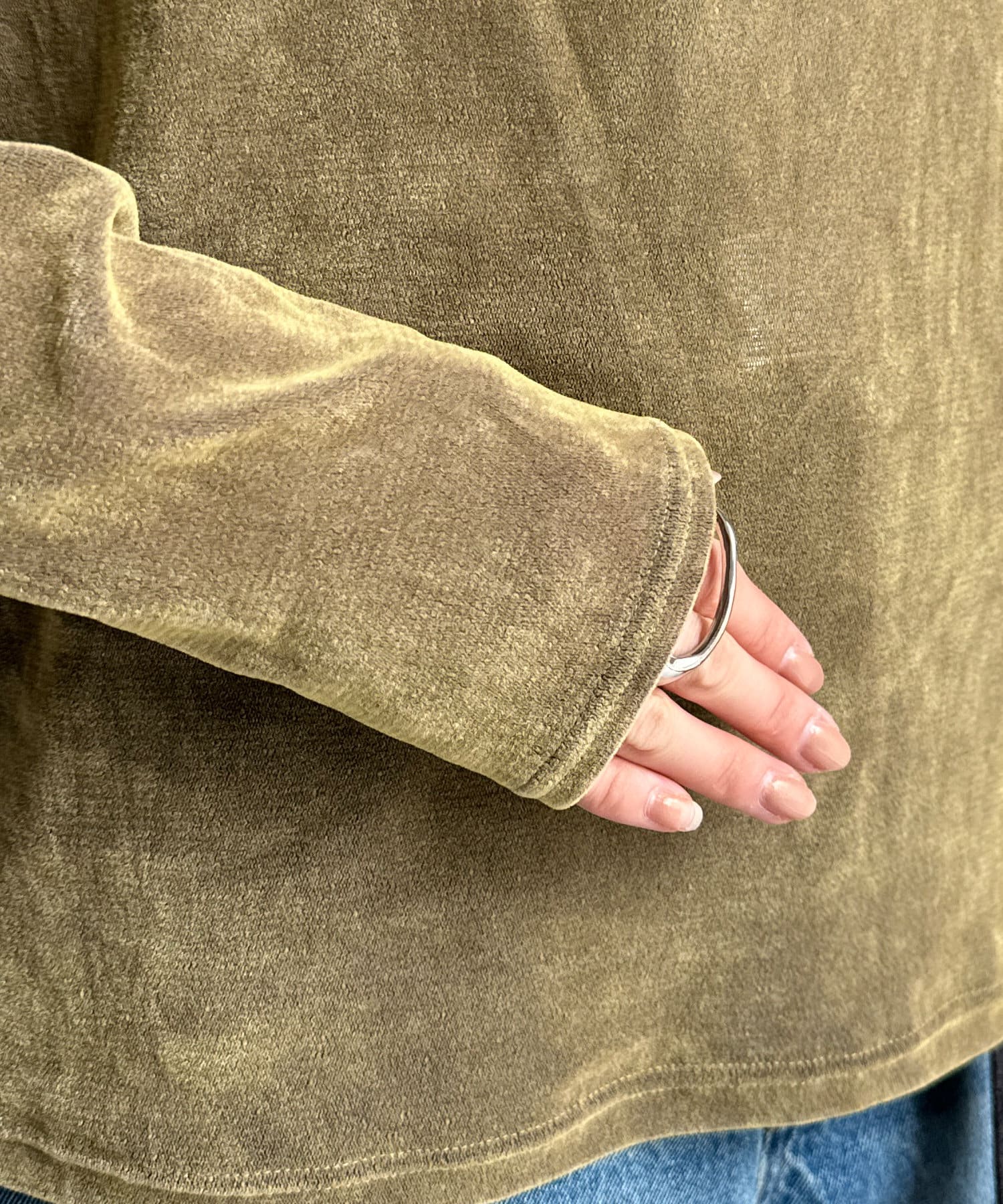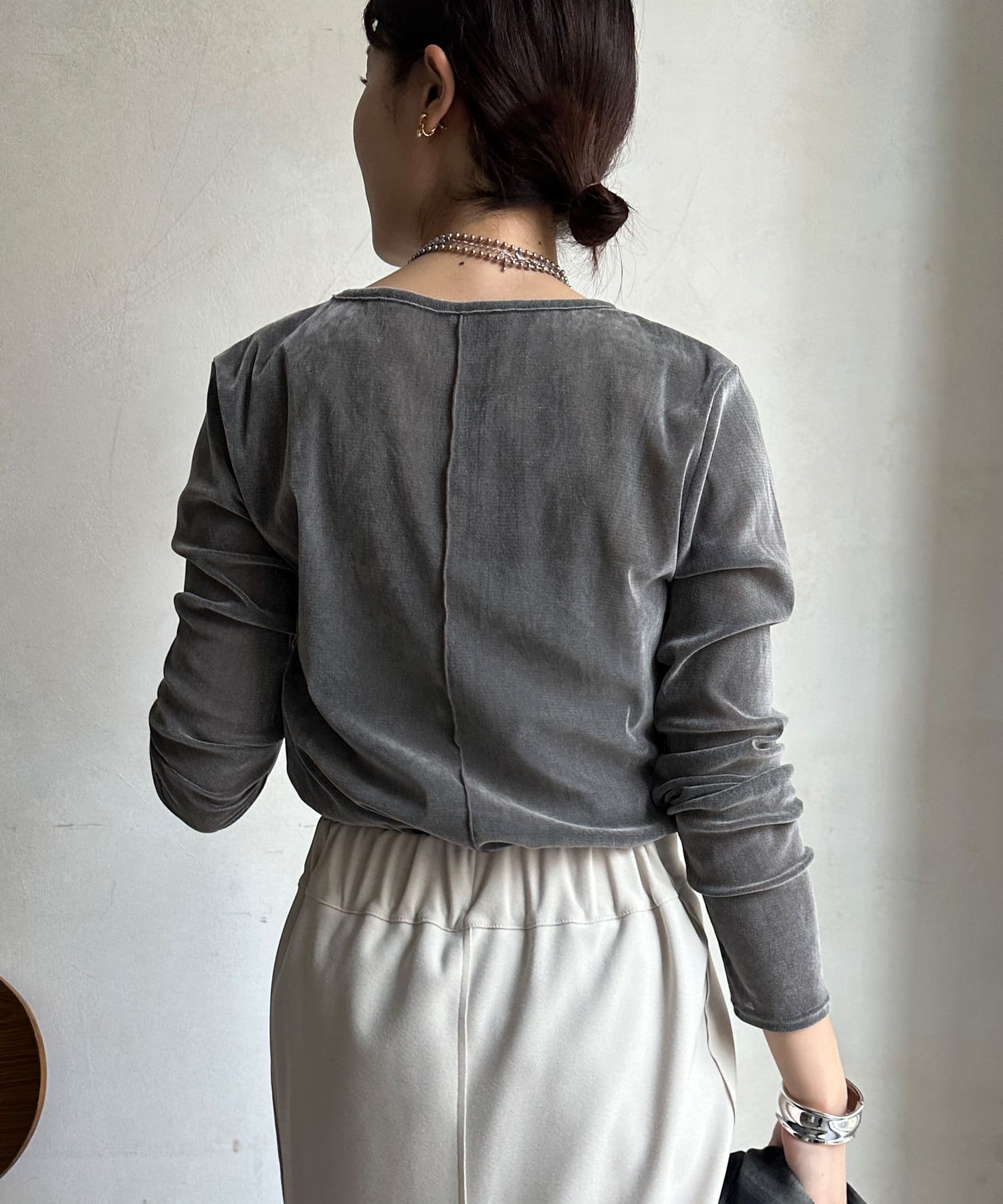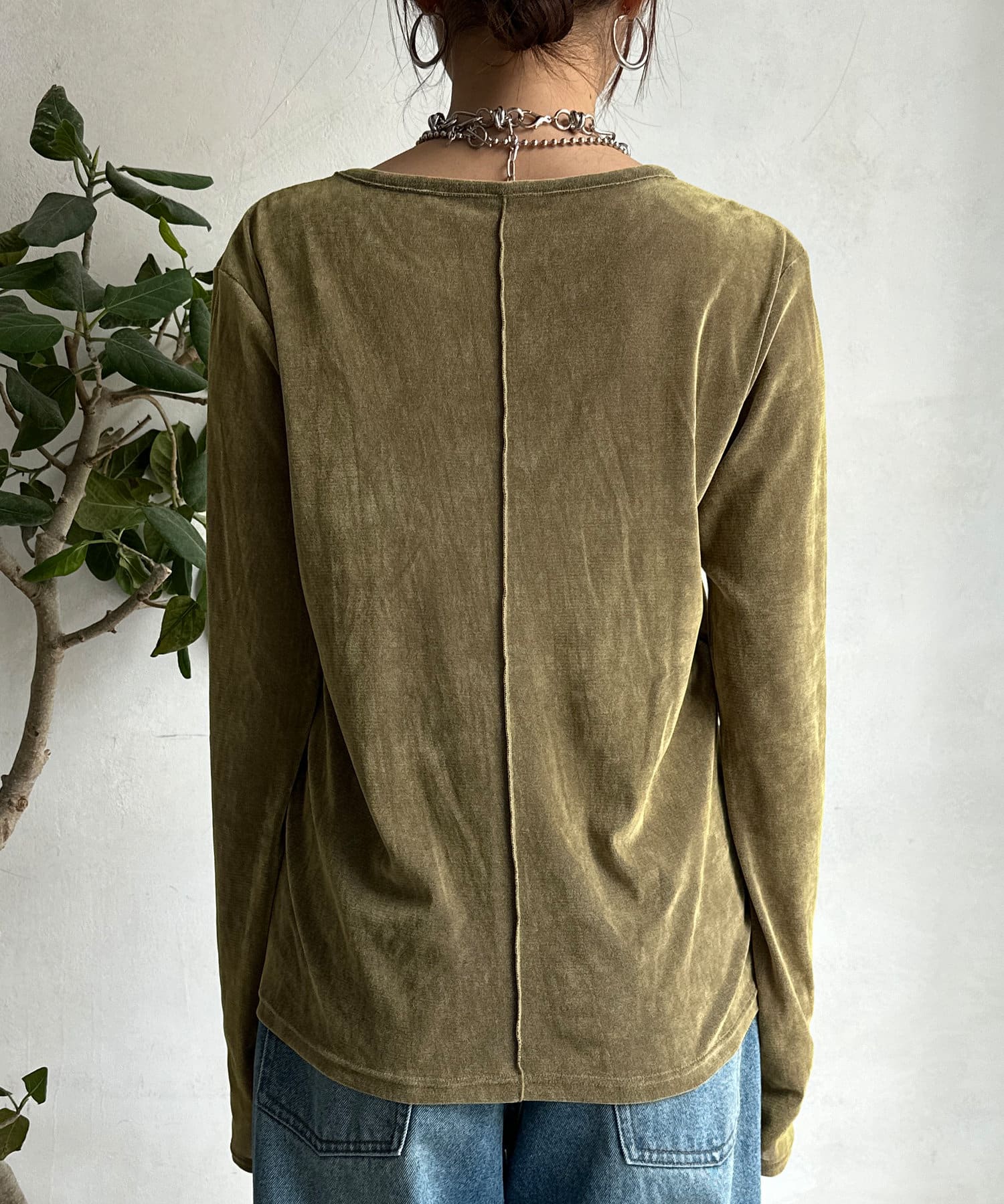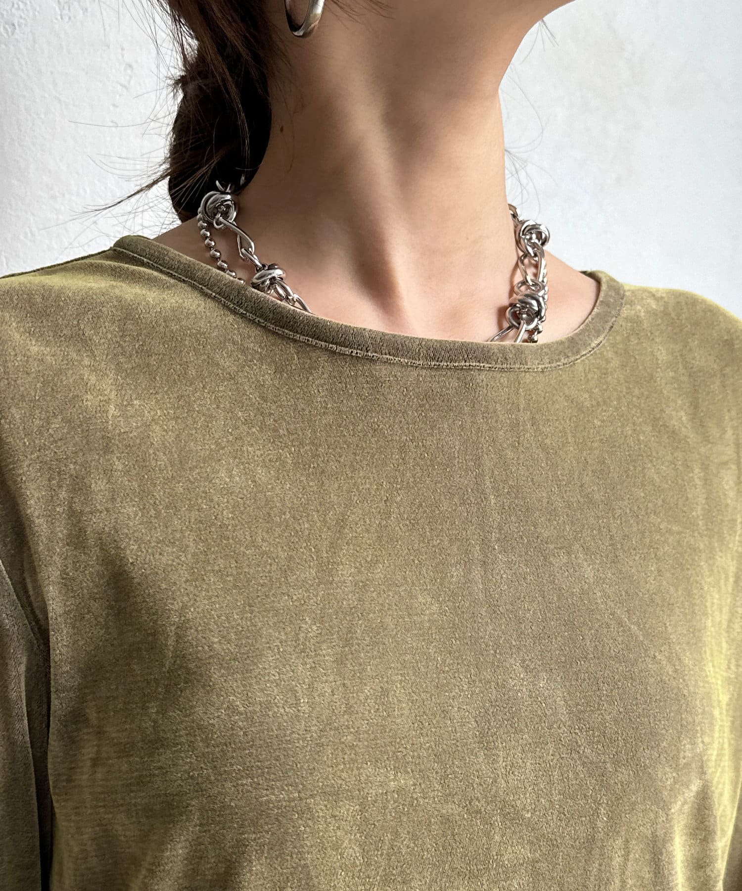 やや表面感のあるシアー素材を使用したロンTEE。