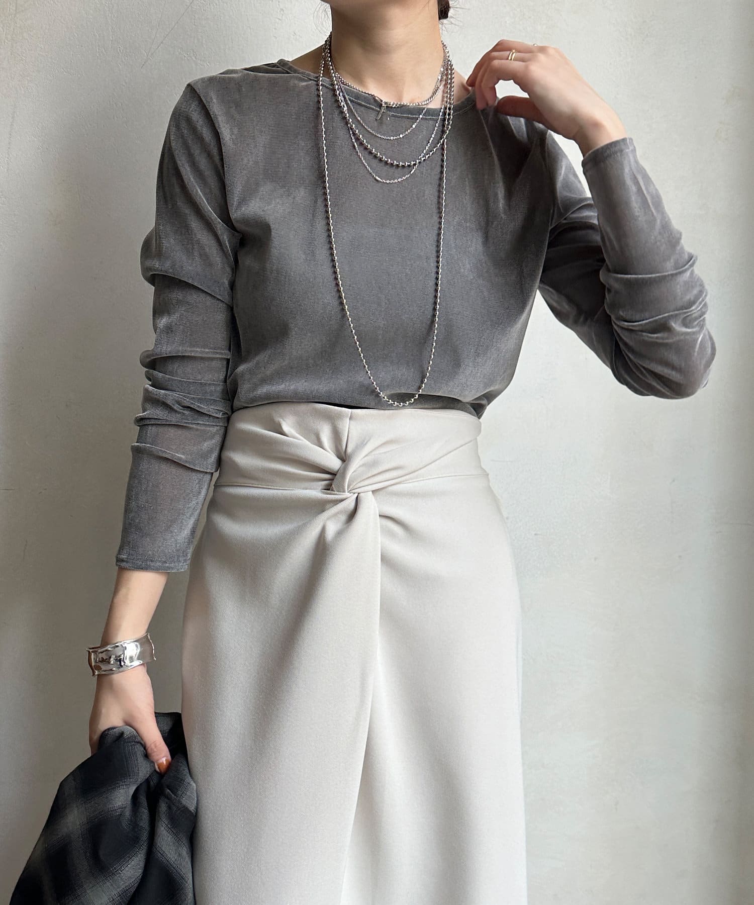 シンプルながらも着映えしてくれるトレンドの素材感で、秋冬にこそ楽しめるレイヤードスタイルにも大活躍ですよ。