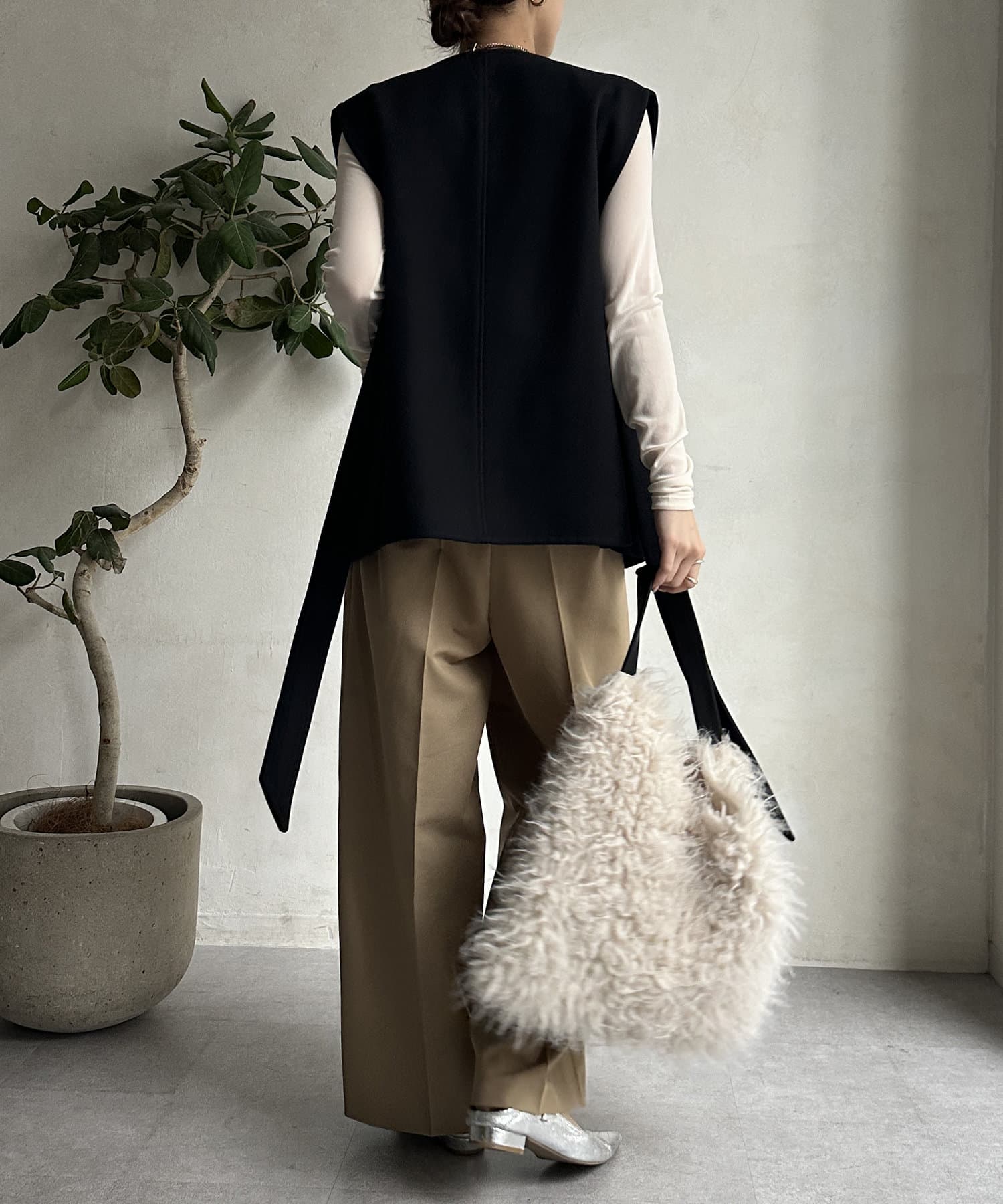 【新色追加】ウール調サイドスリットジレ