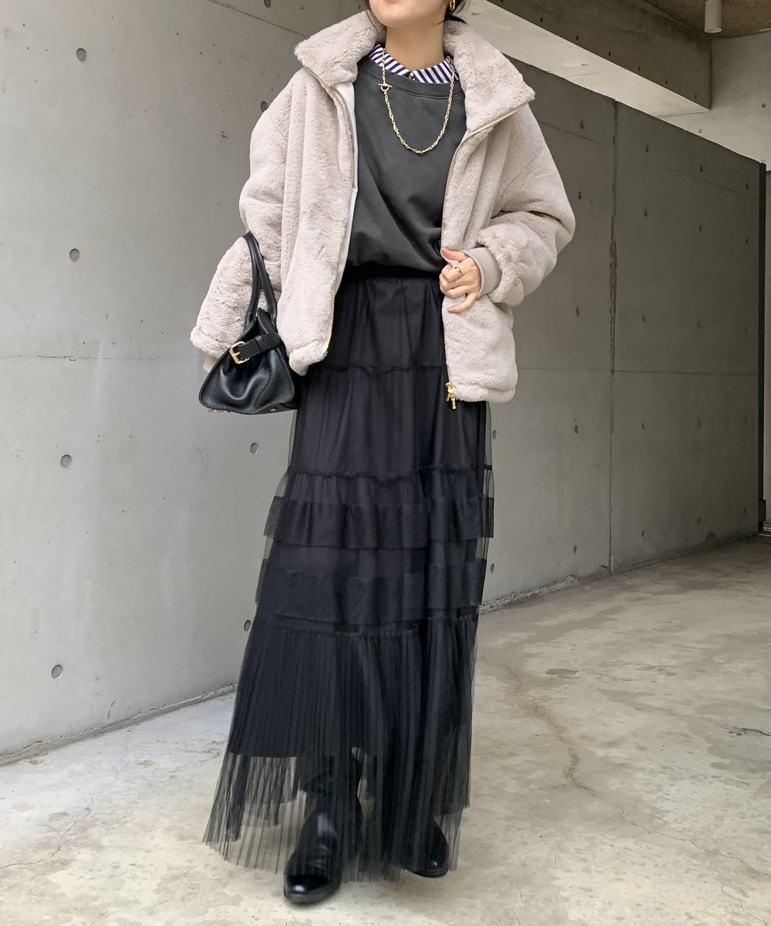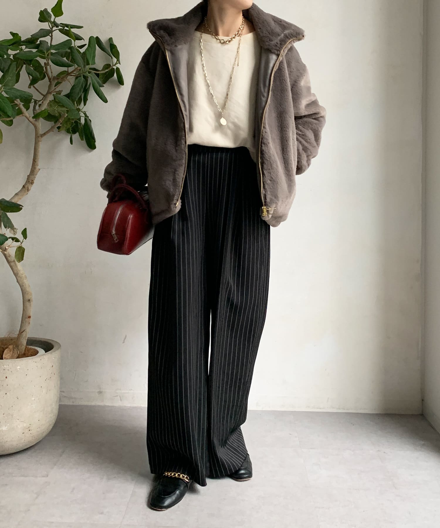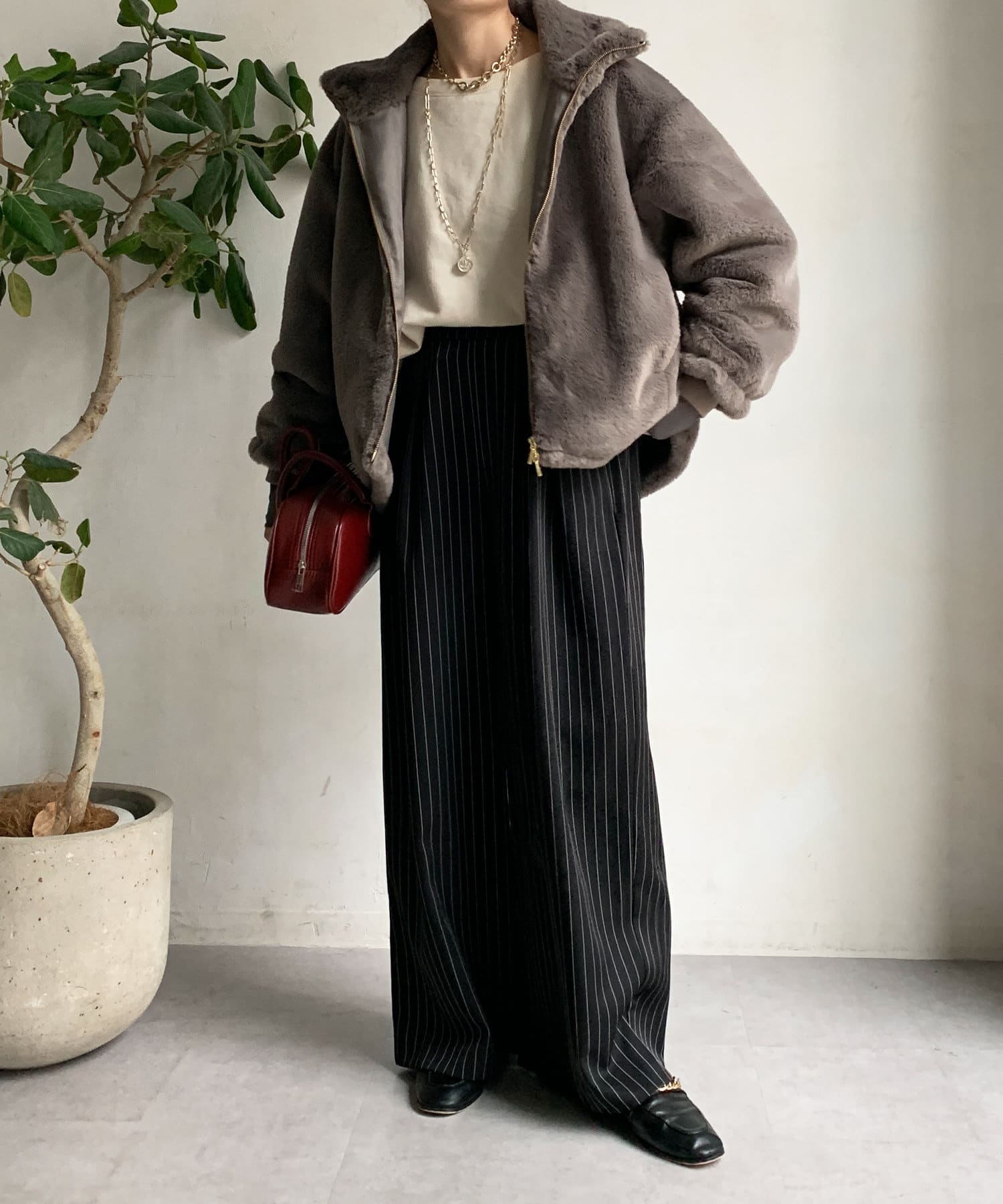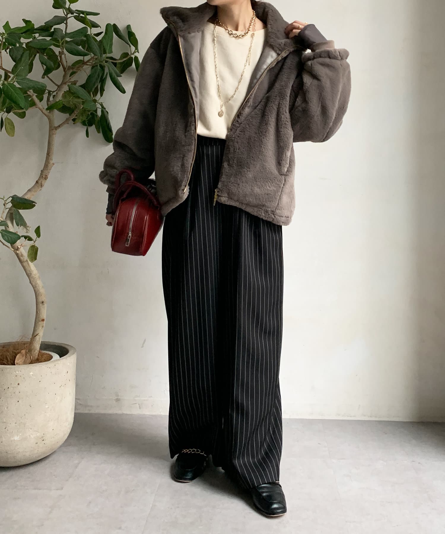 ダブルファスナーの仕様になっているため、ファスナーの止め方次第でコーデに抜け感をプラスしてくれますよ。