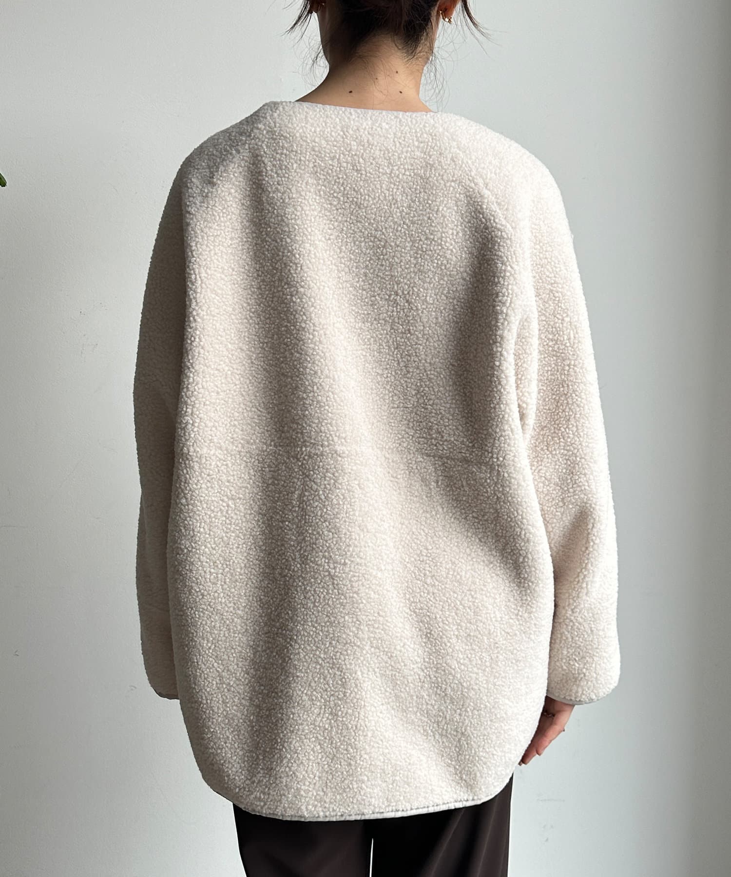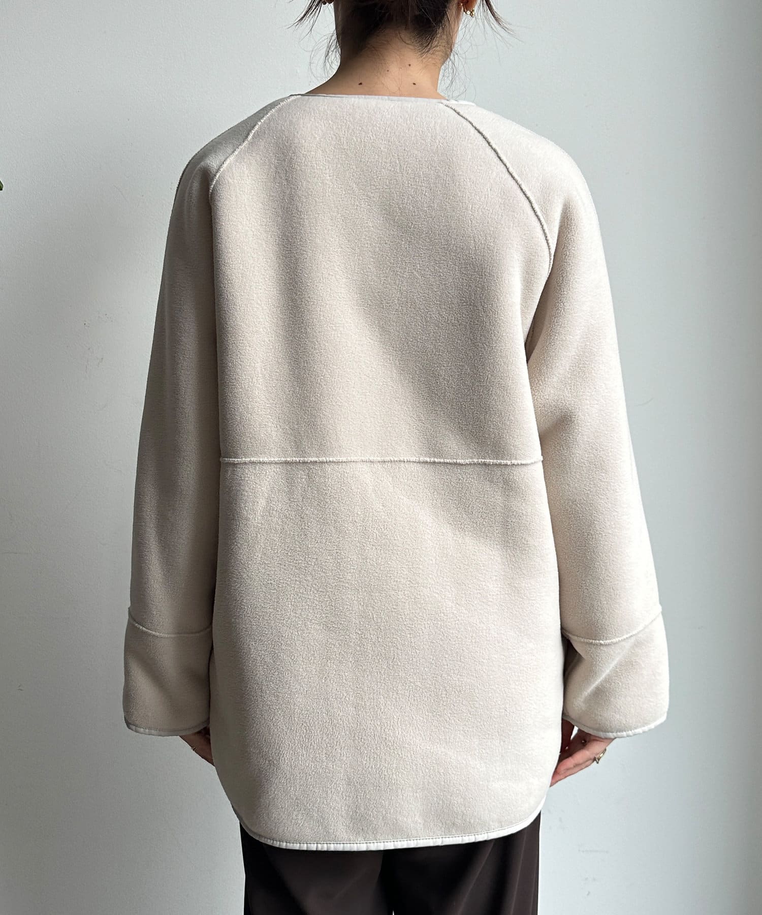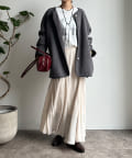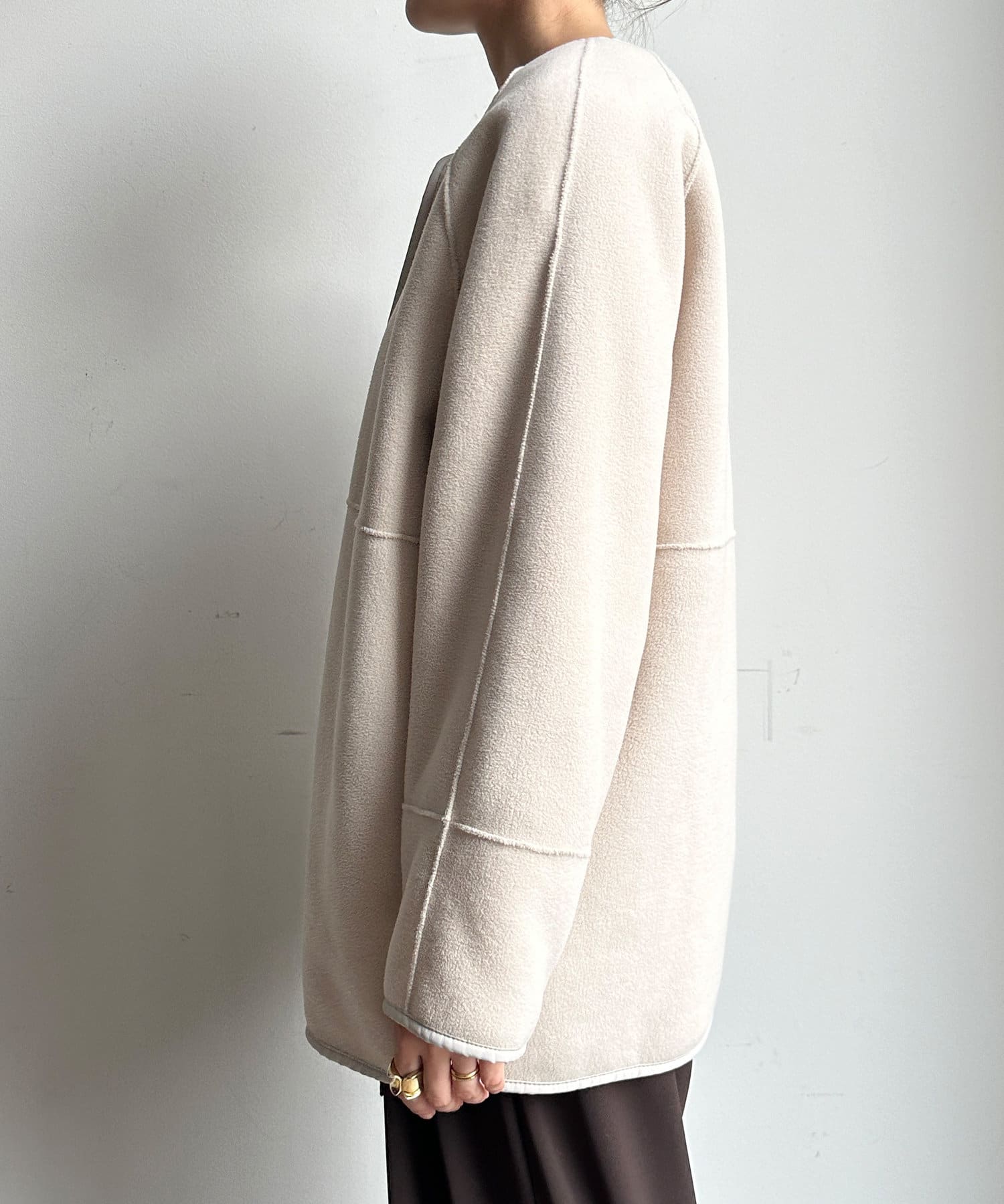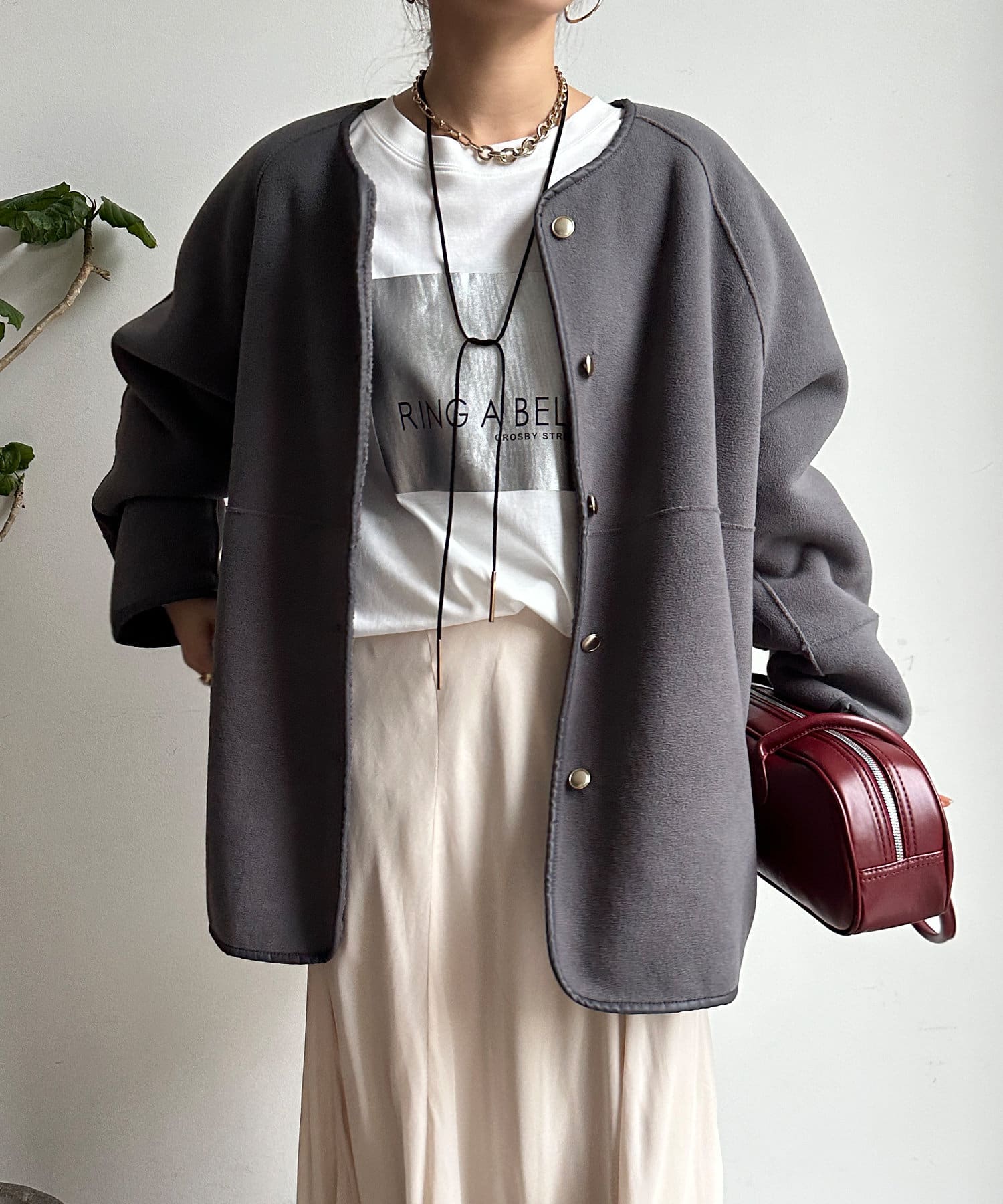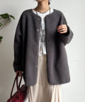 ノーカラーのすっきりとしたデザインのため、気軽に羽織っていただけます。