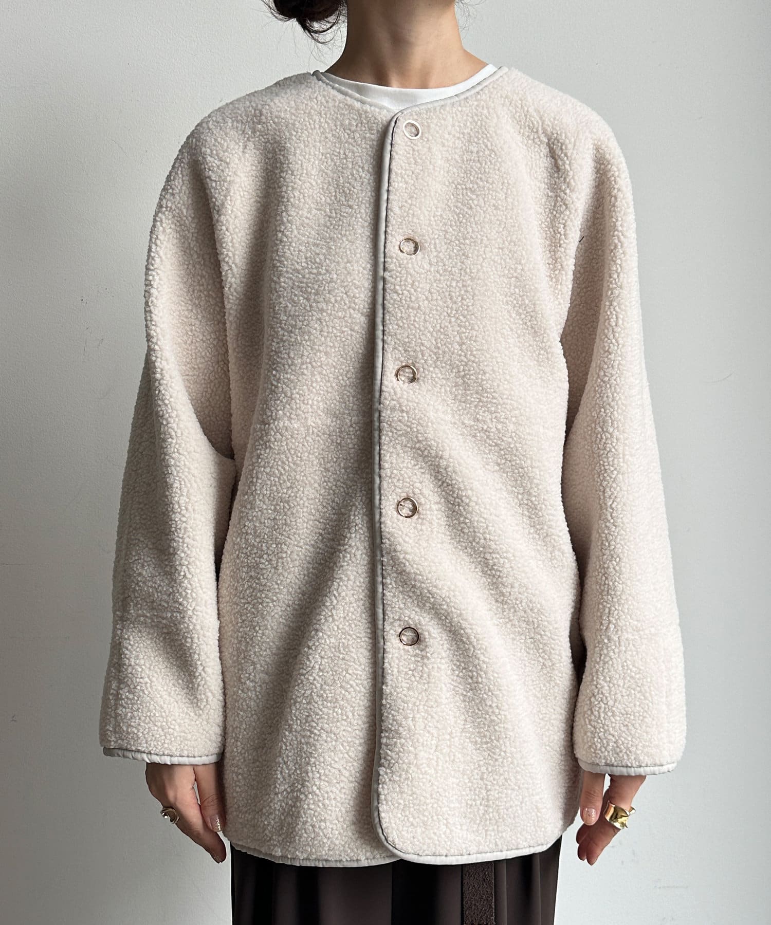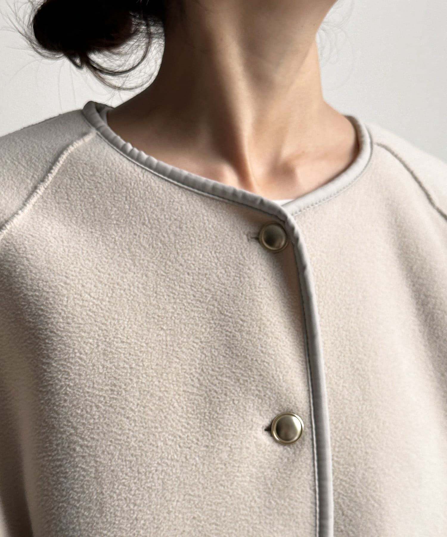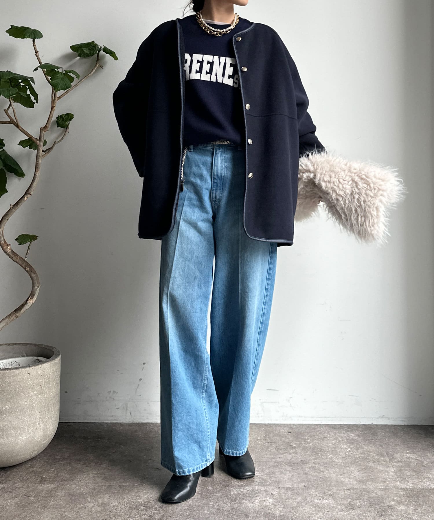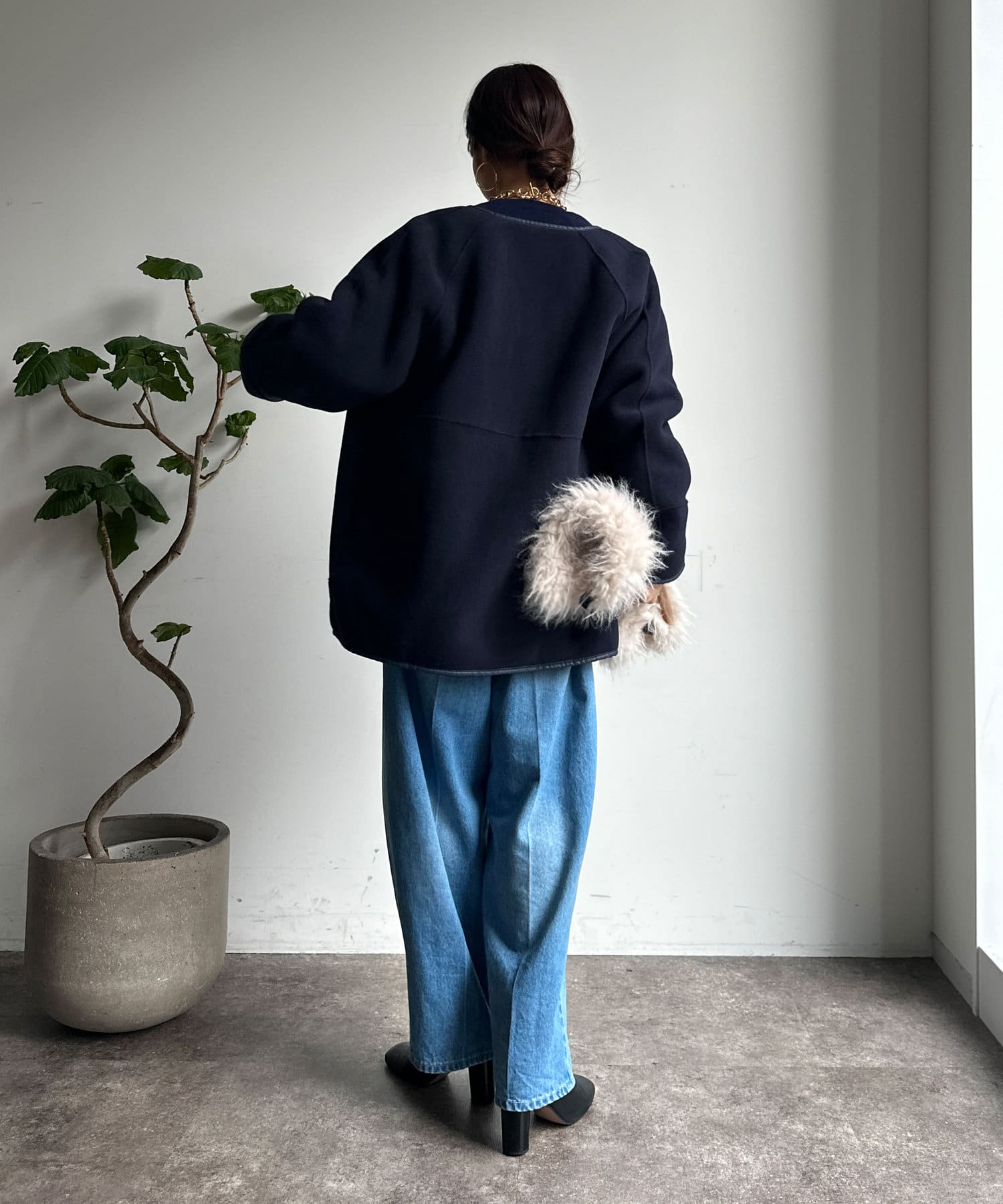 ノーカラーのすっきりとしたデザインのため、気軽に羽織っていただけます。