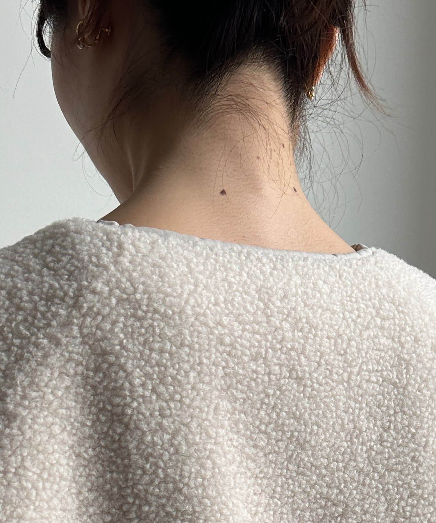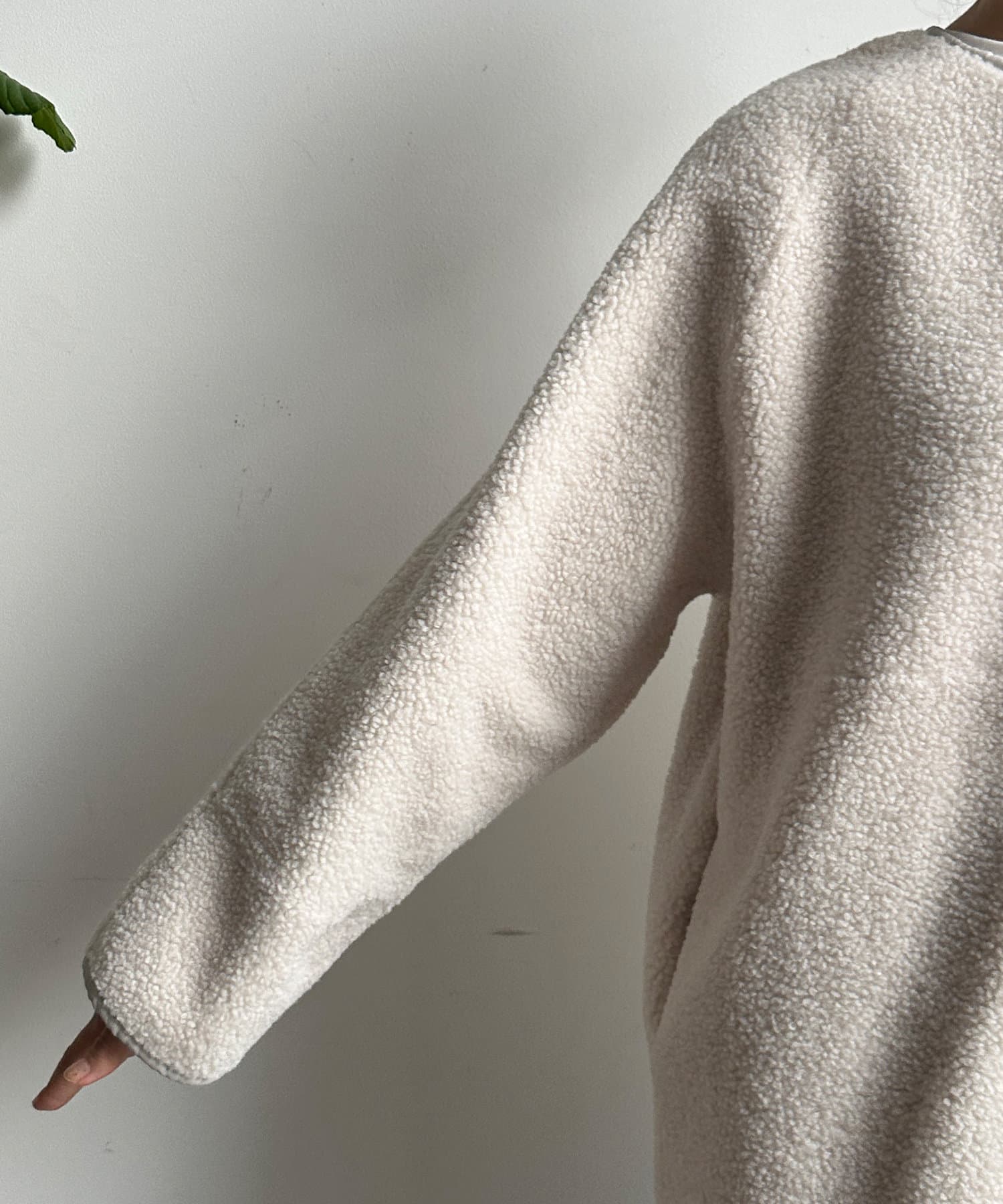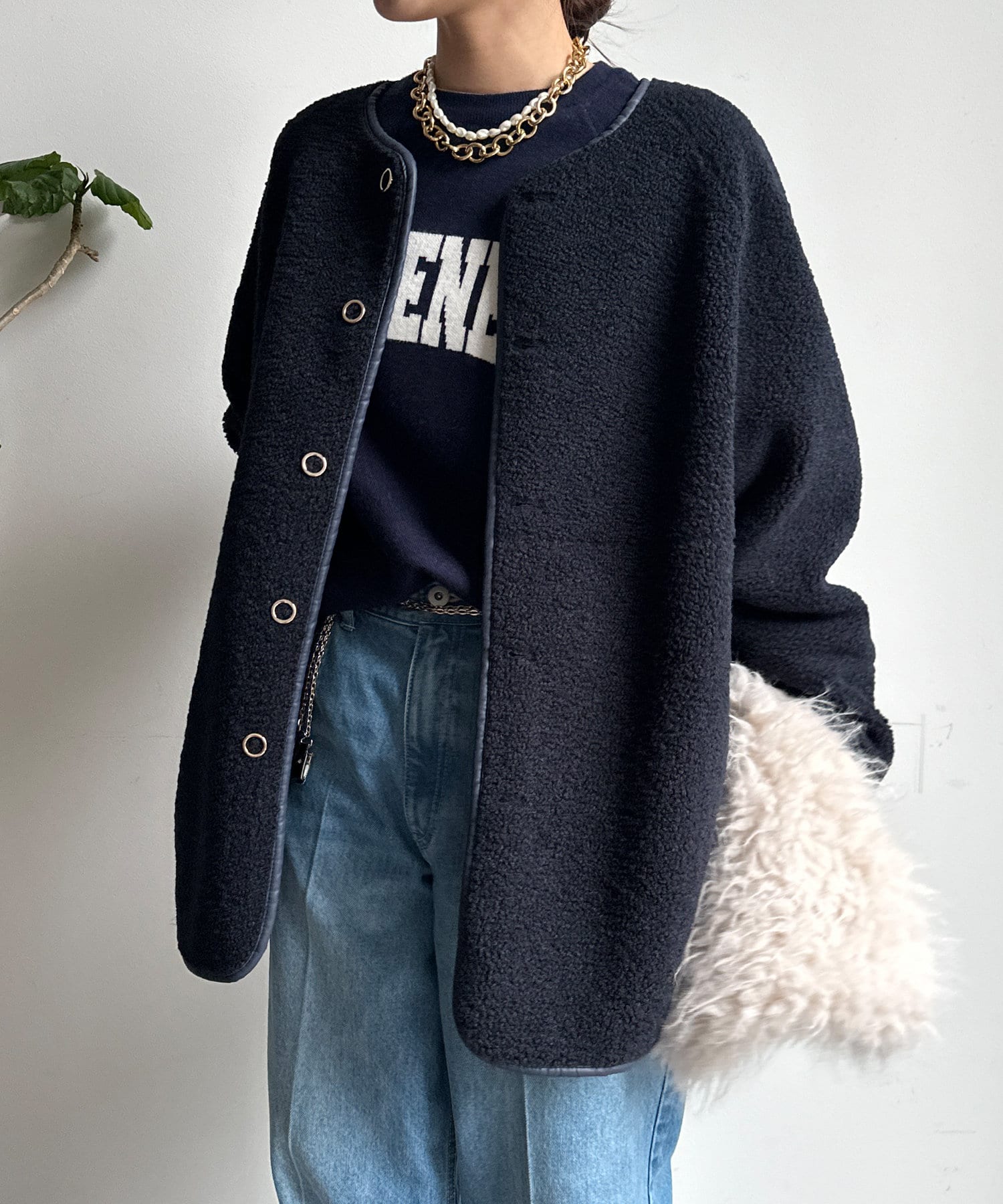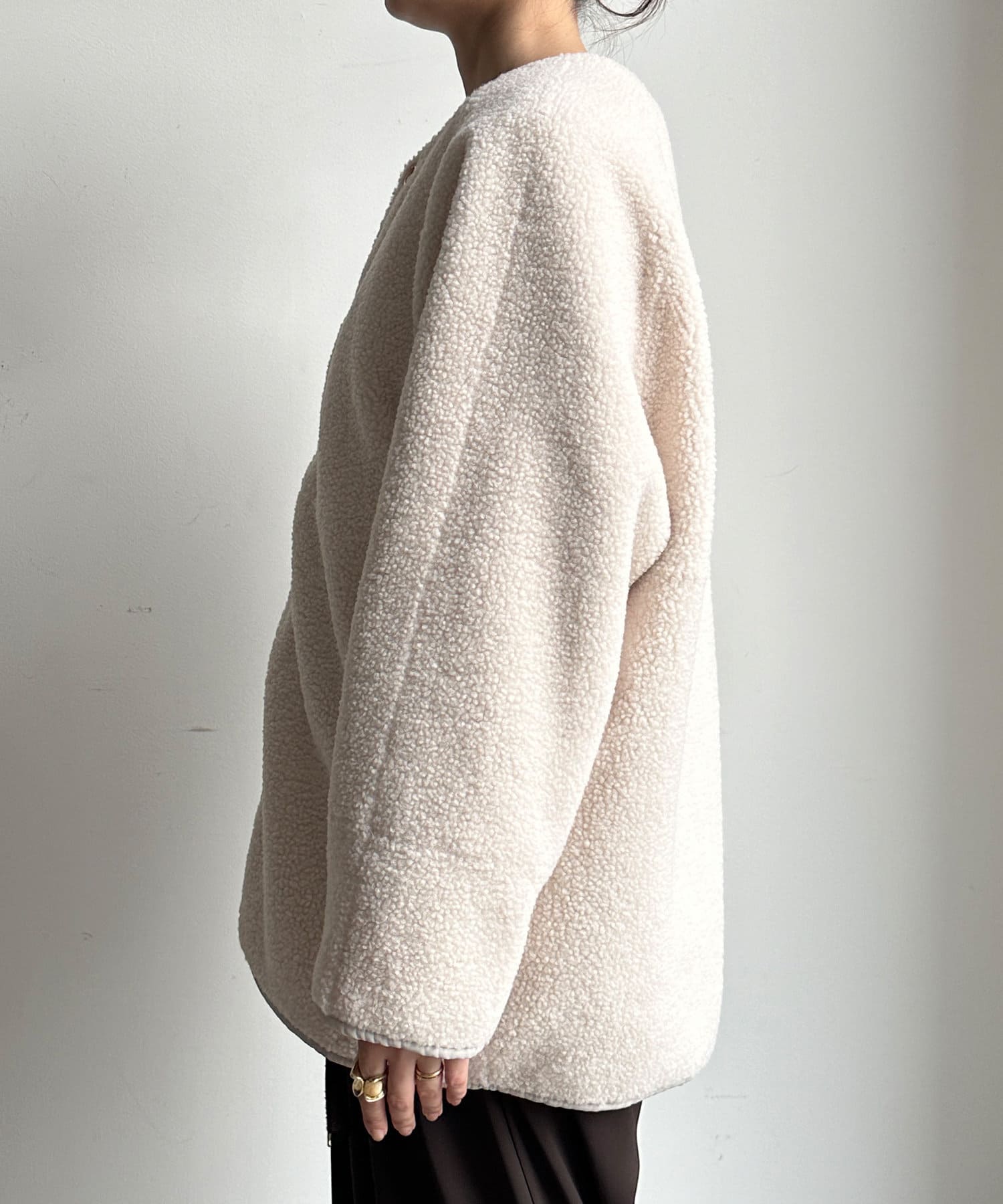 ノーカラーのすっきりとしたデザインのため、気軽に羽織っていただけます。