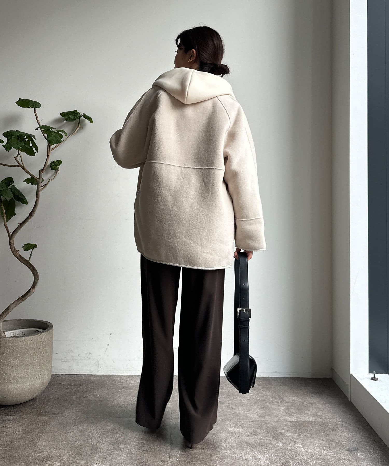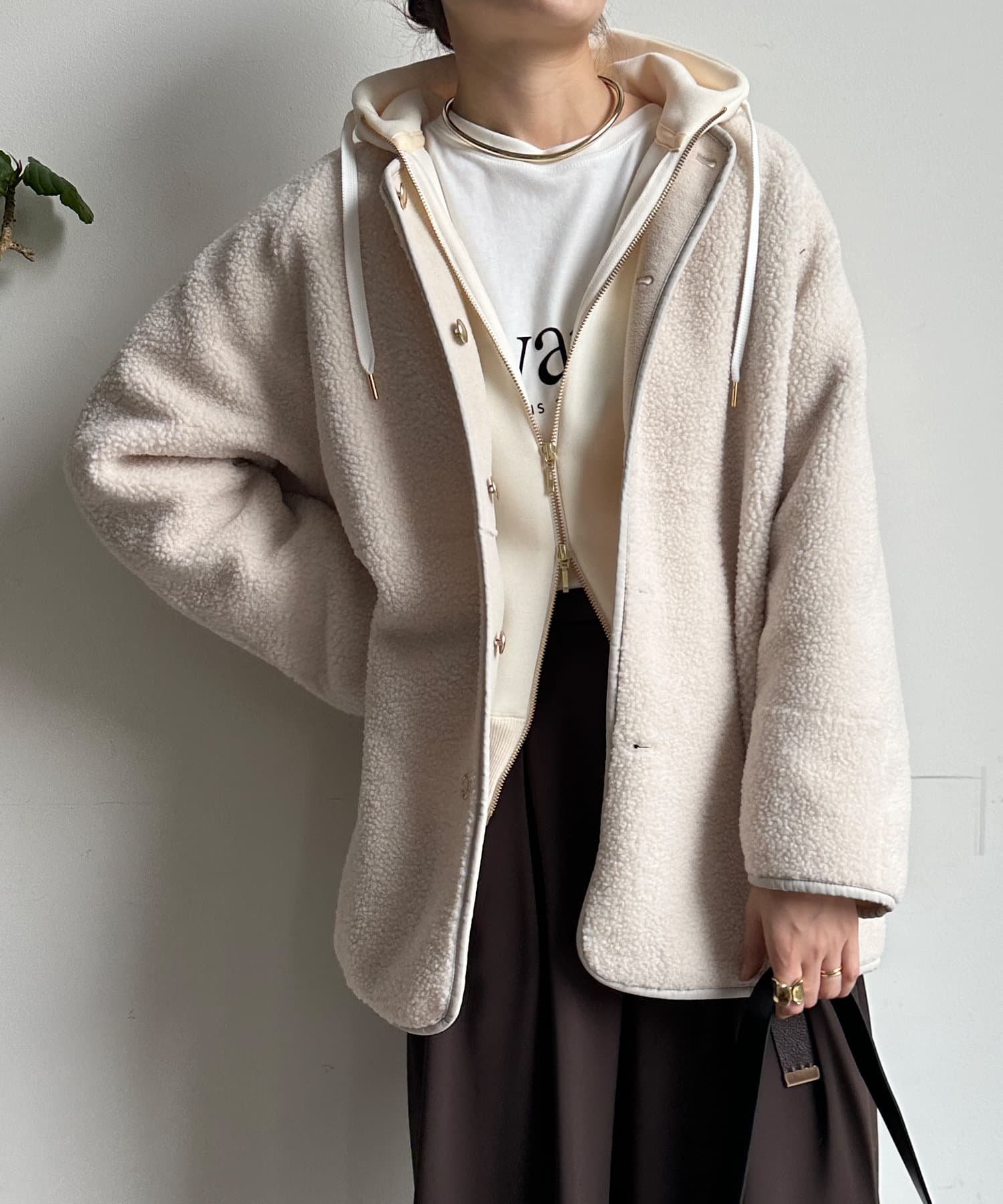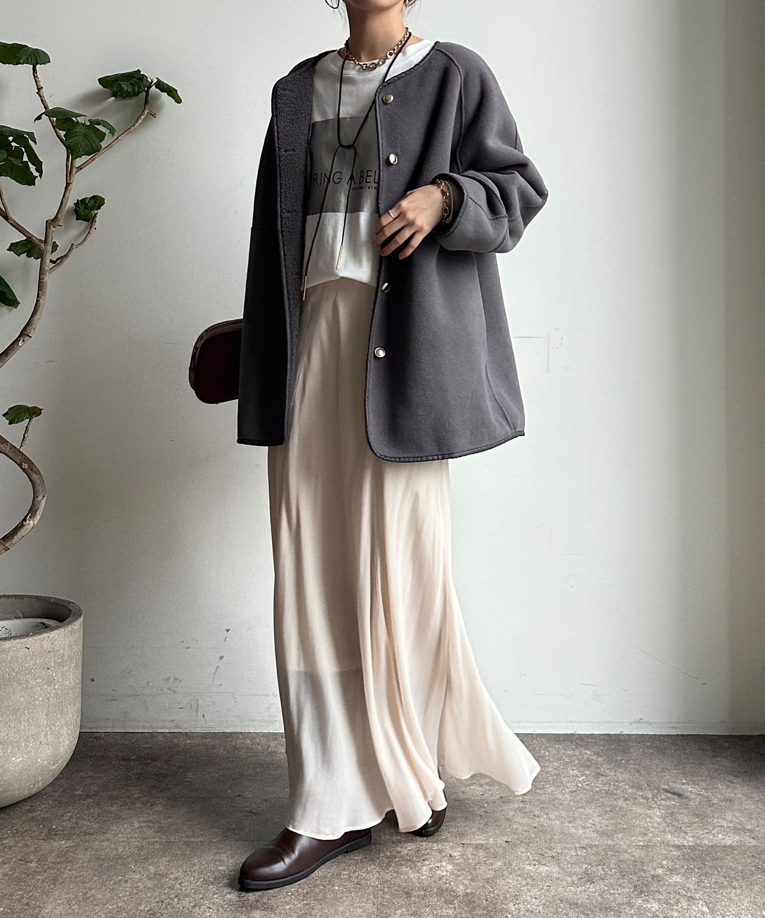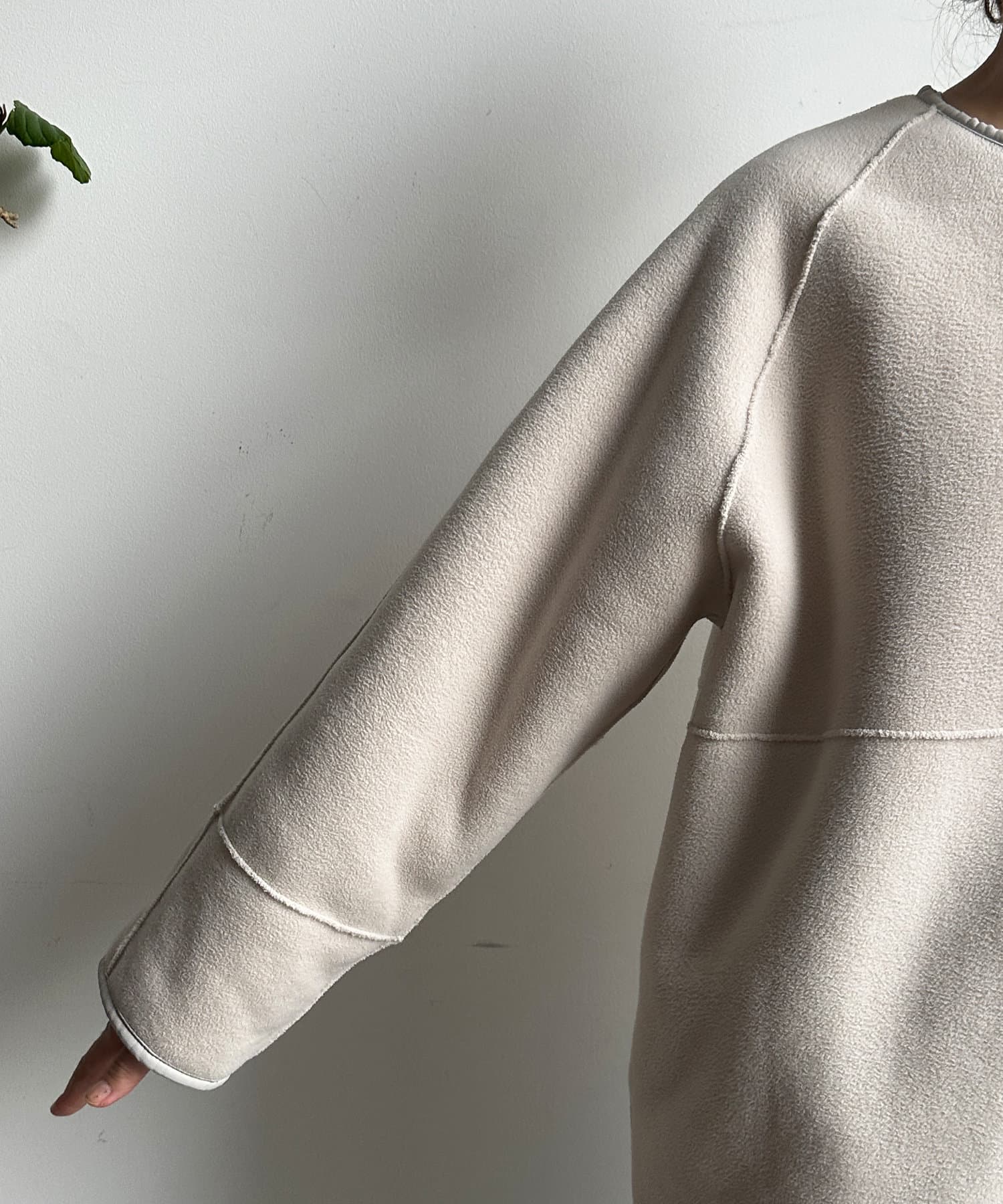 表裏どちらでも着られるリバーシブルのデザインで着回しを楽しめる1着。
