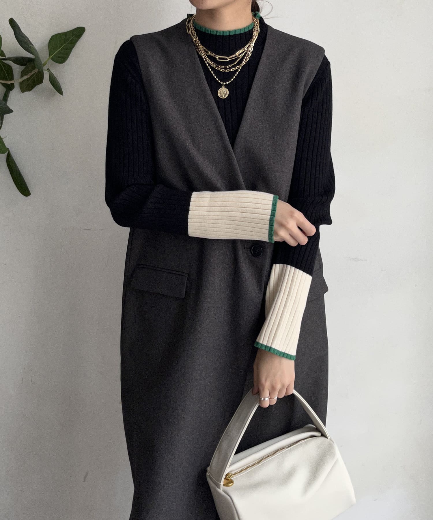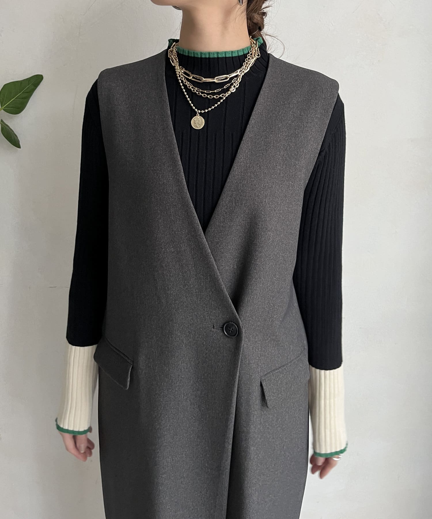 フロントが重なりあったデザインと、ボタンがアクセントになりメリハリを!