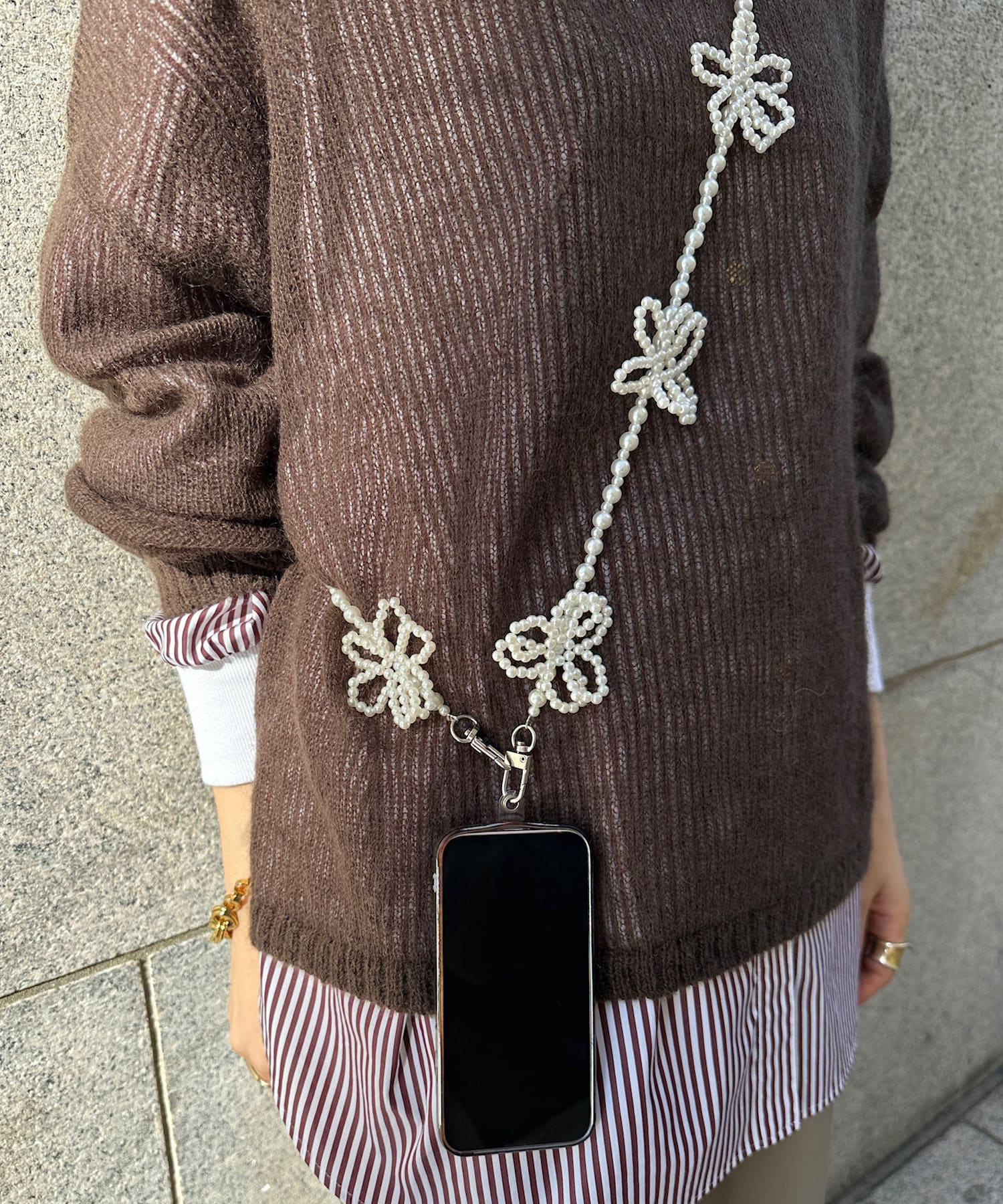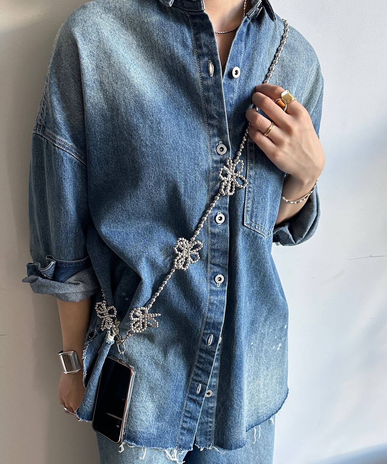 コーディネートのアクセントに映えるスマホショルダー